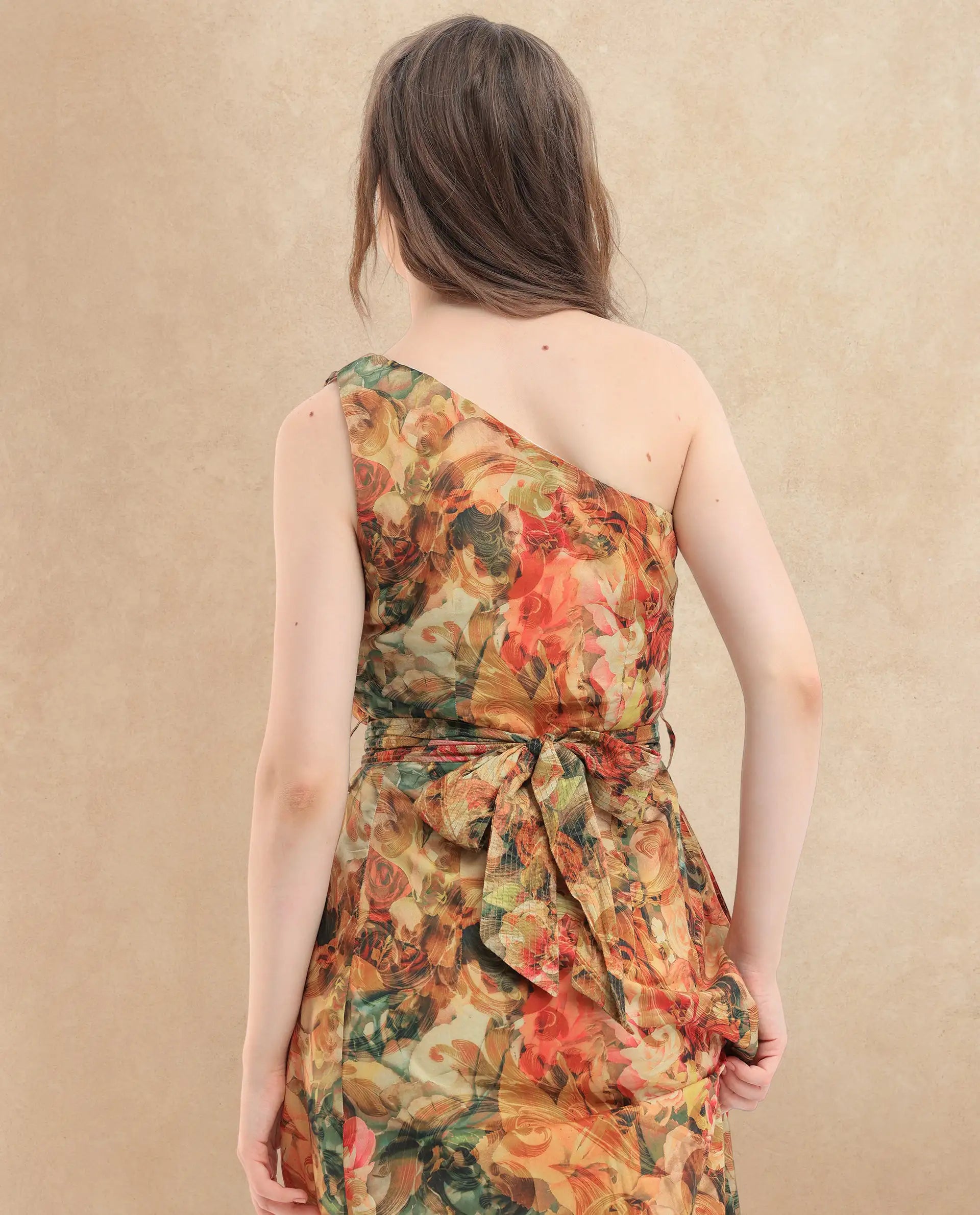ONE-SHOULDER MIDI DRESS WITH SELF-DESIGN BELT