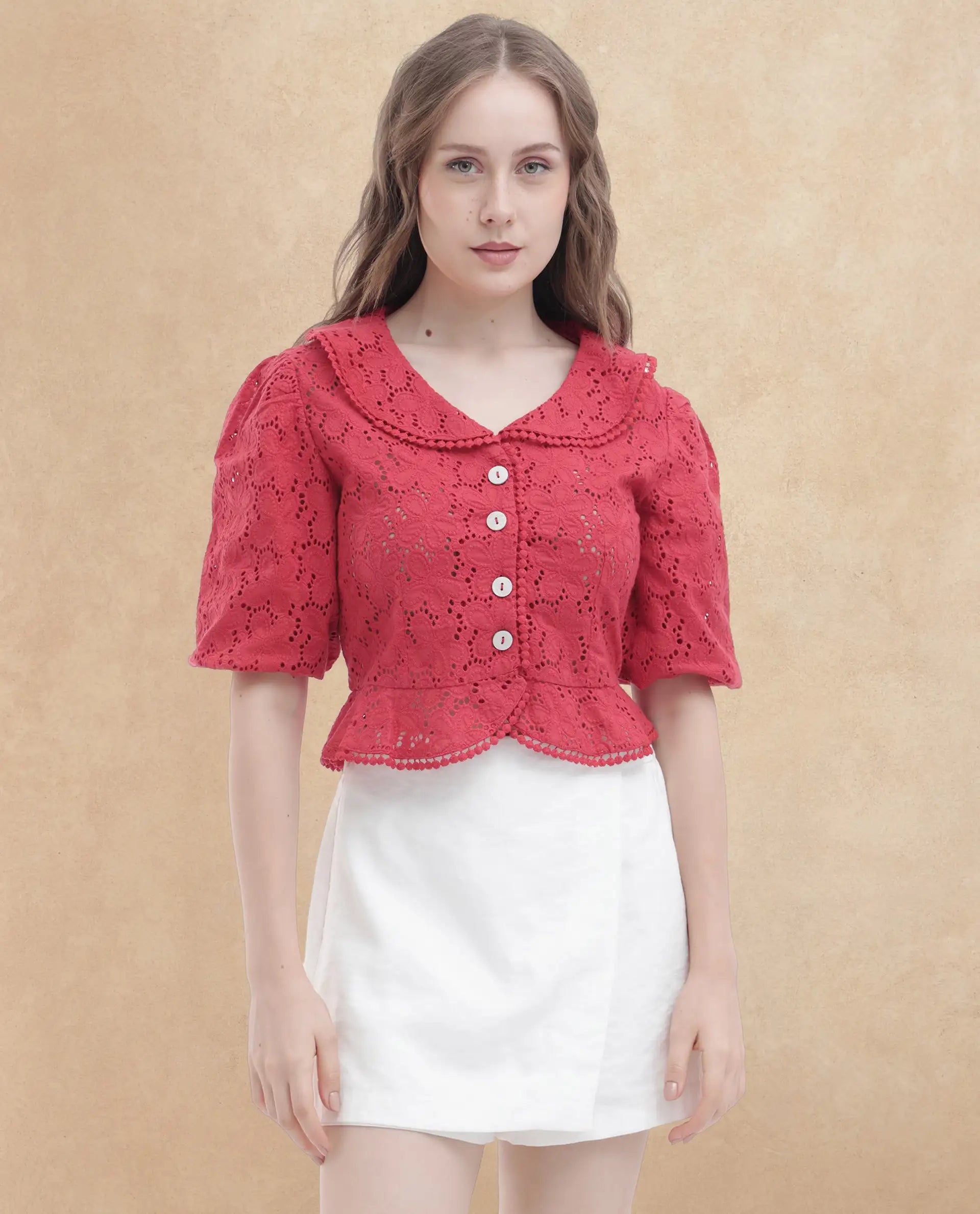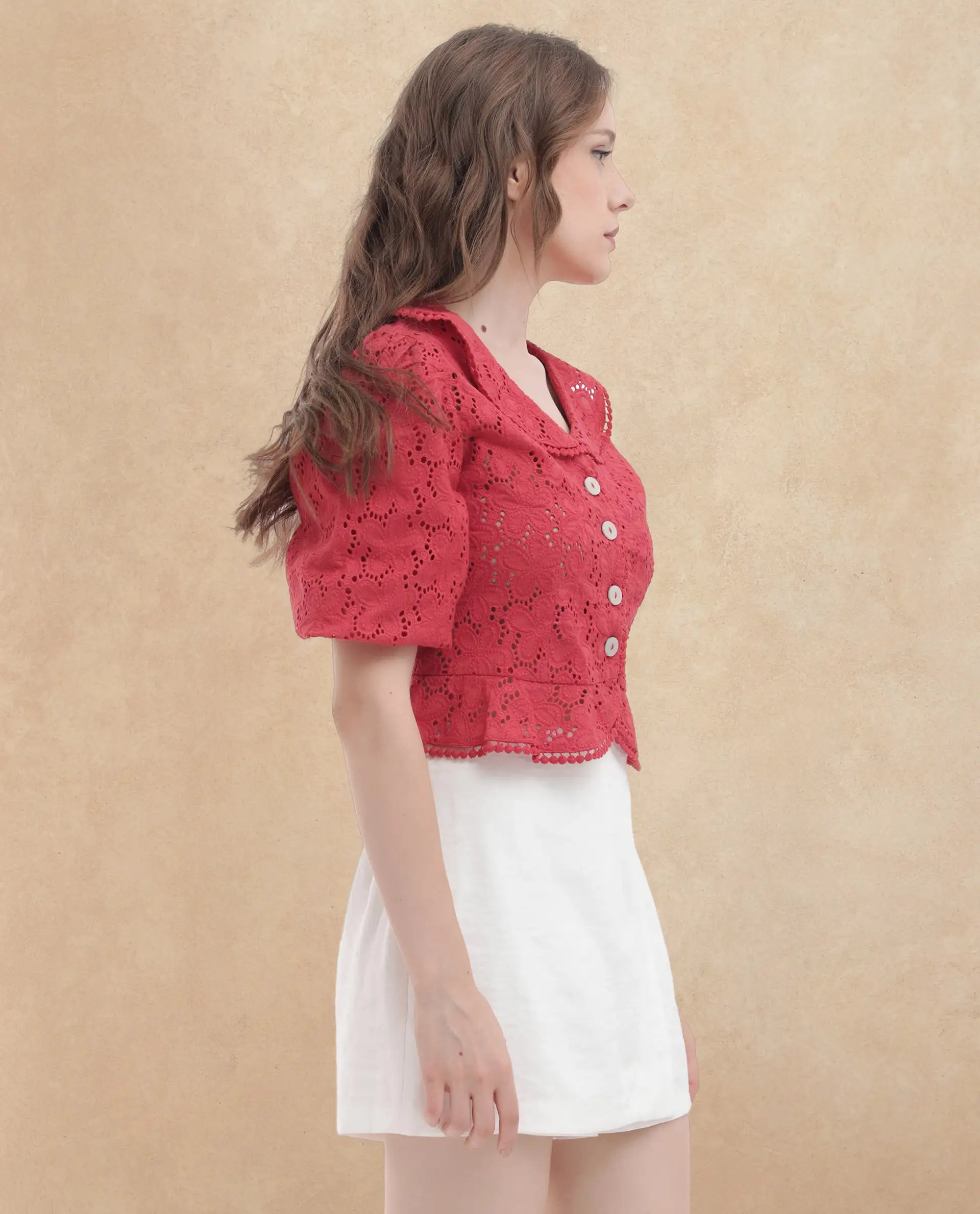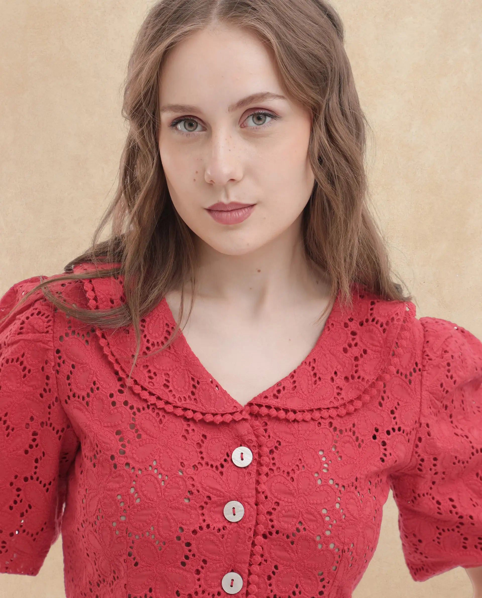 BOHO SCHIFFLI CROP BUTTON-DOWN TOP