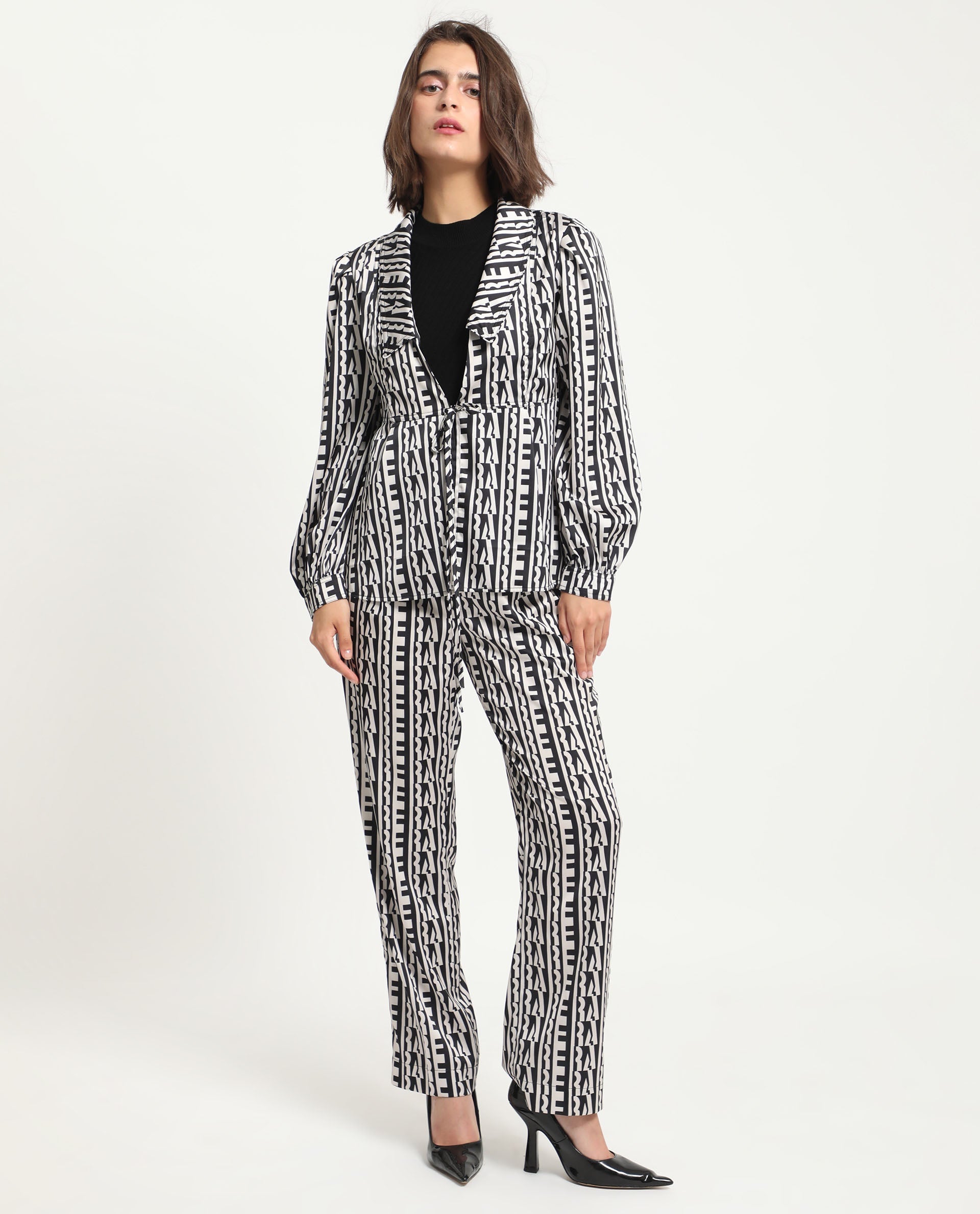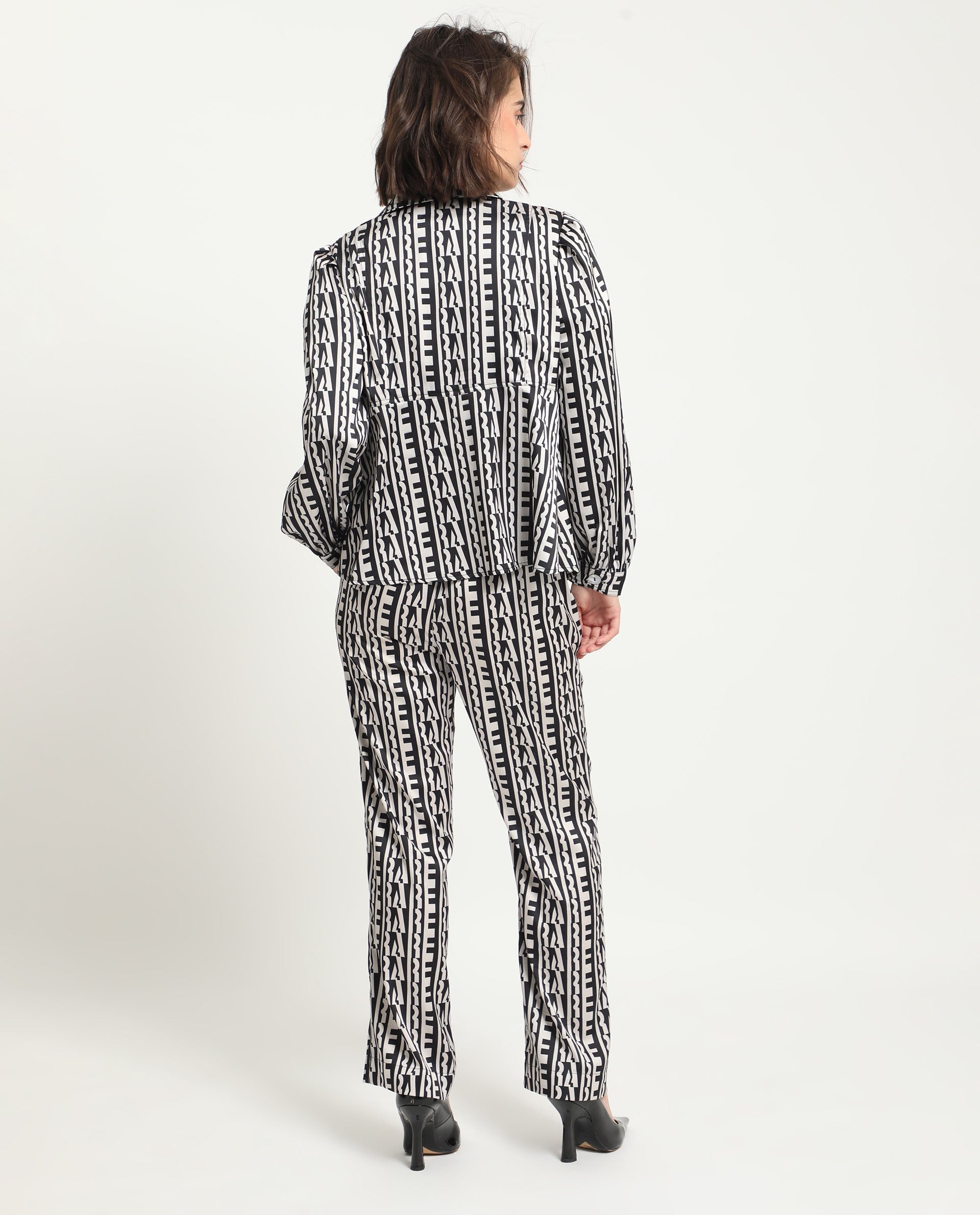 GEOMETRIC CHIC COLLARED CASUAL TOP WITH MODERN PRINT