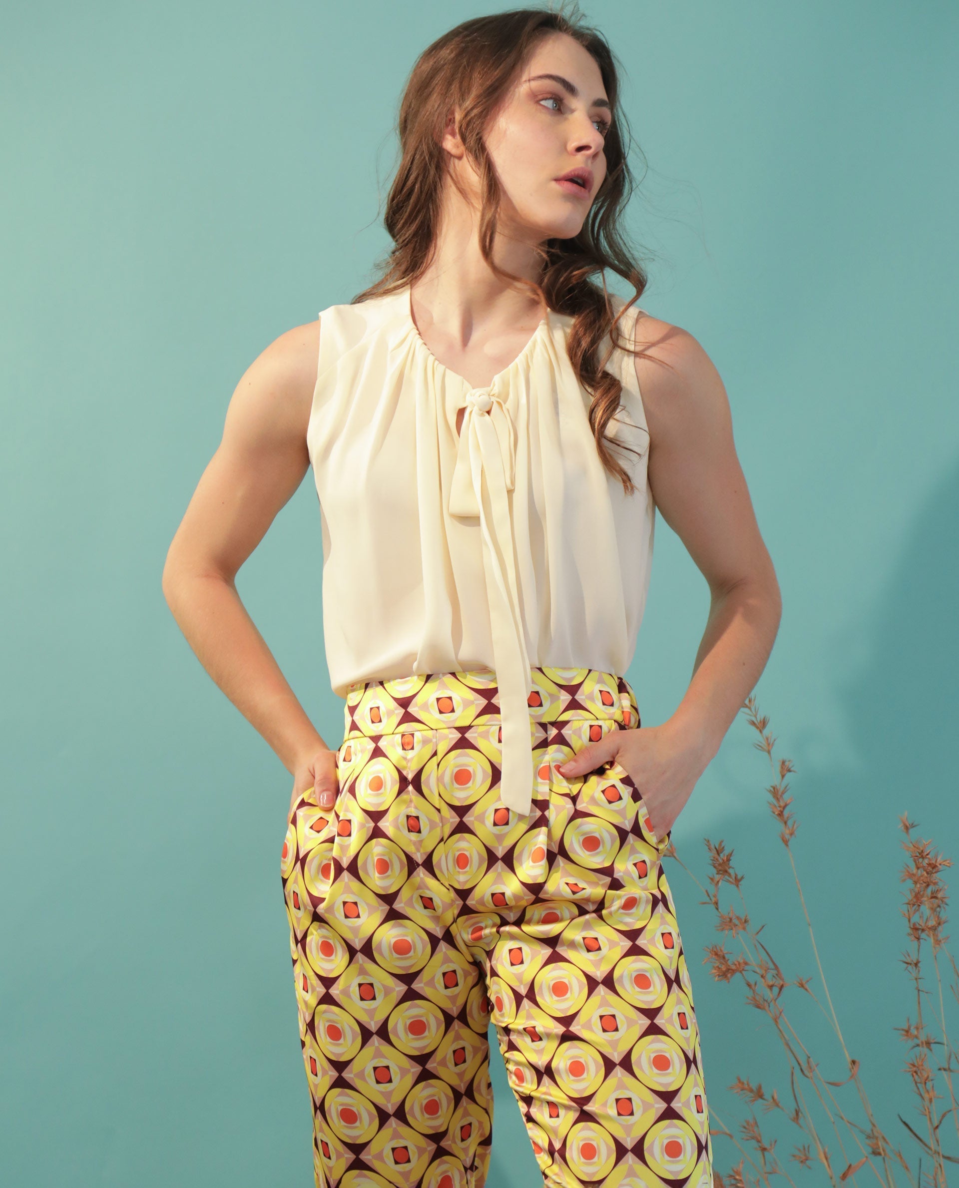 Embrace relaxed sophistication by pairing this top with your favourite bottoms. Whether it's a casual day out or a special occasion, the sleeveless design and elegant details make it perfect for various settings.