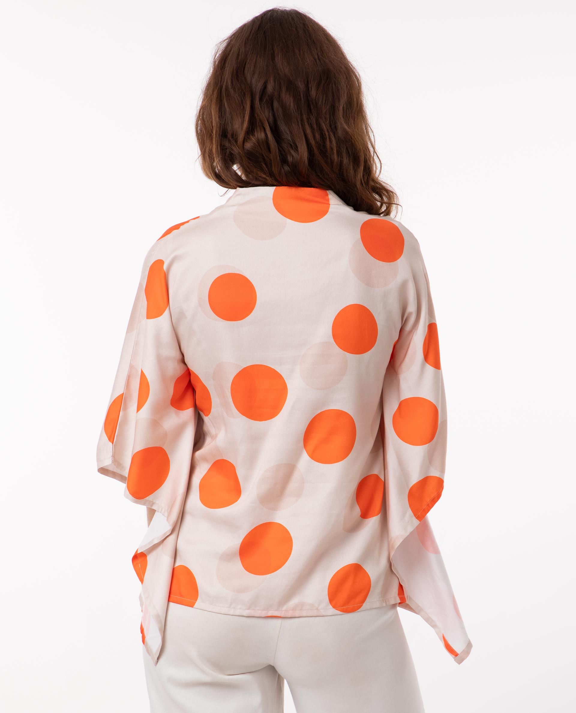 TWO-TONE POLKA PRINT FLARED KIMONO SLEEVE TOP