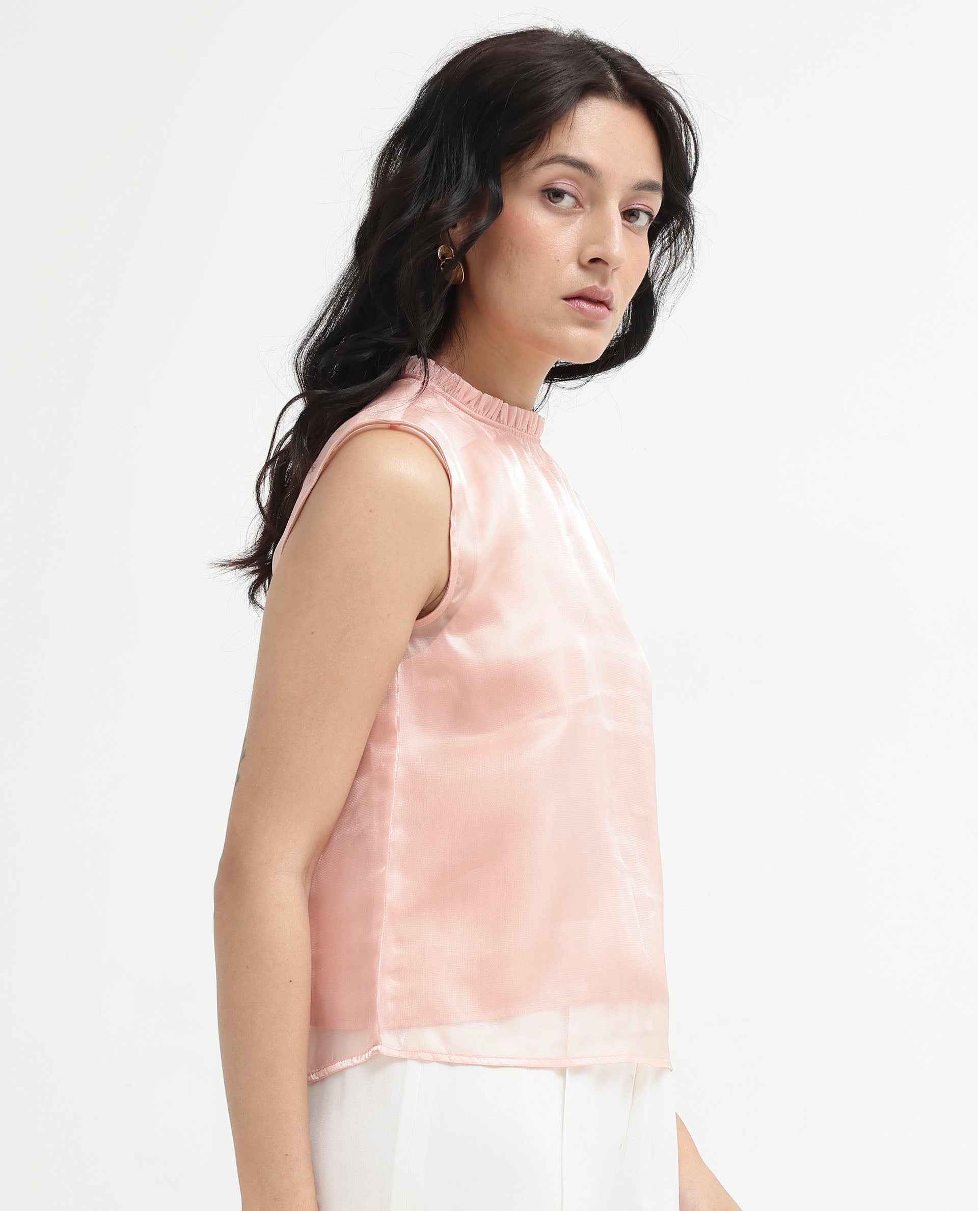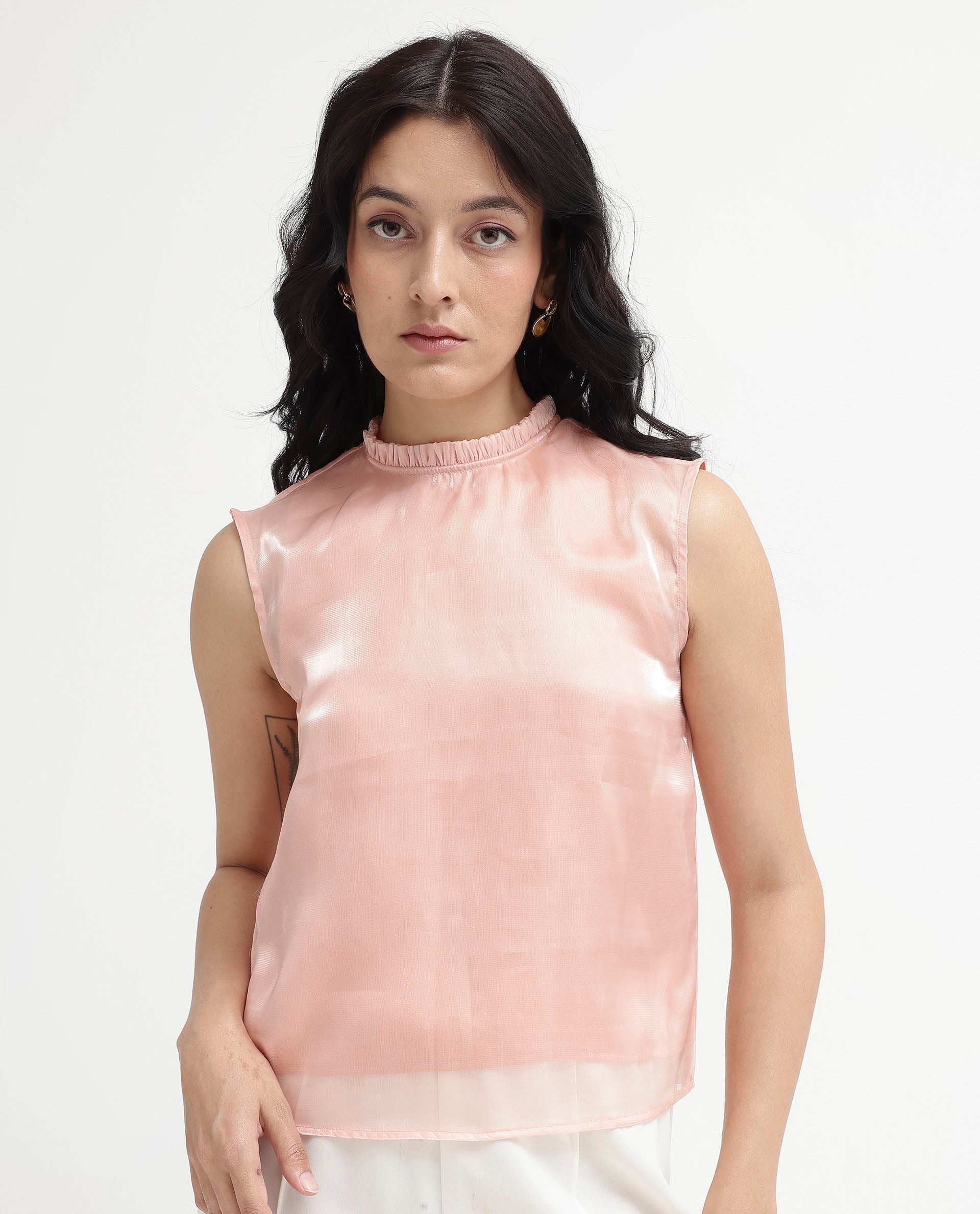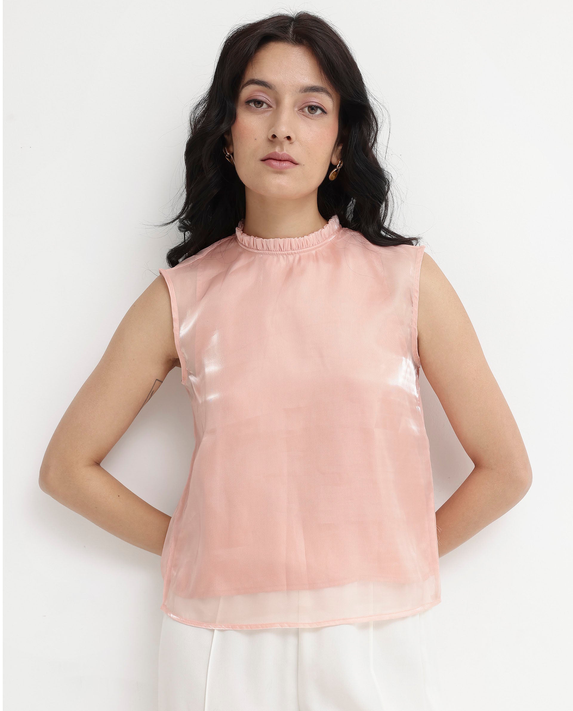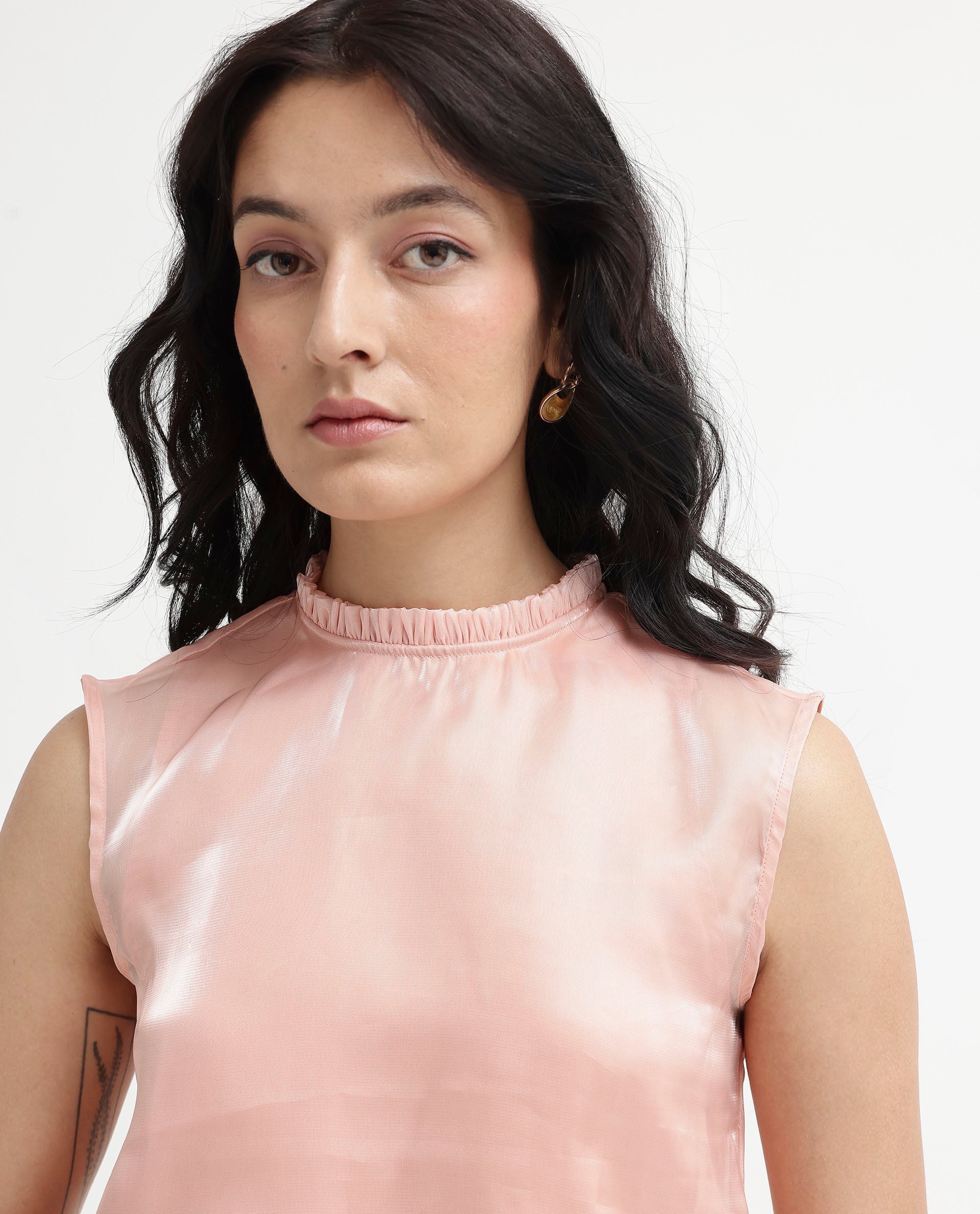 1. Effortlessly chic sleeveless top with a charming ruffle neck design.