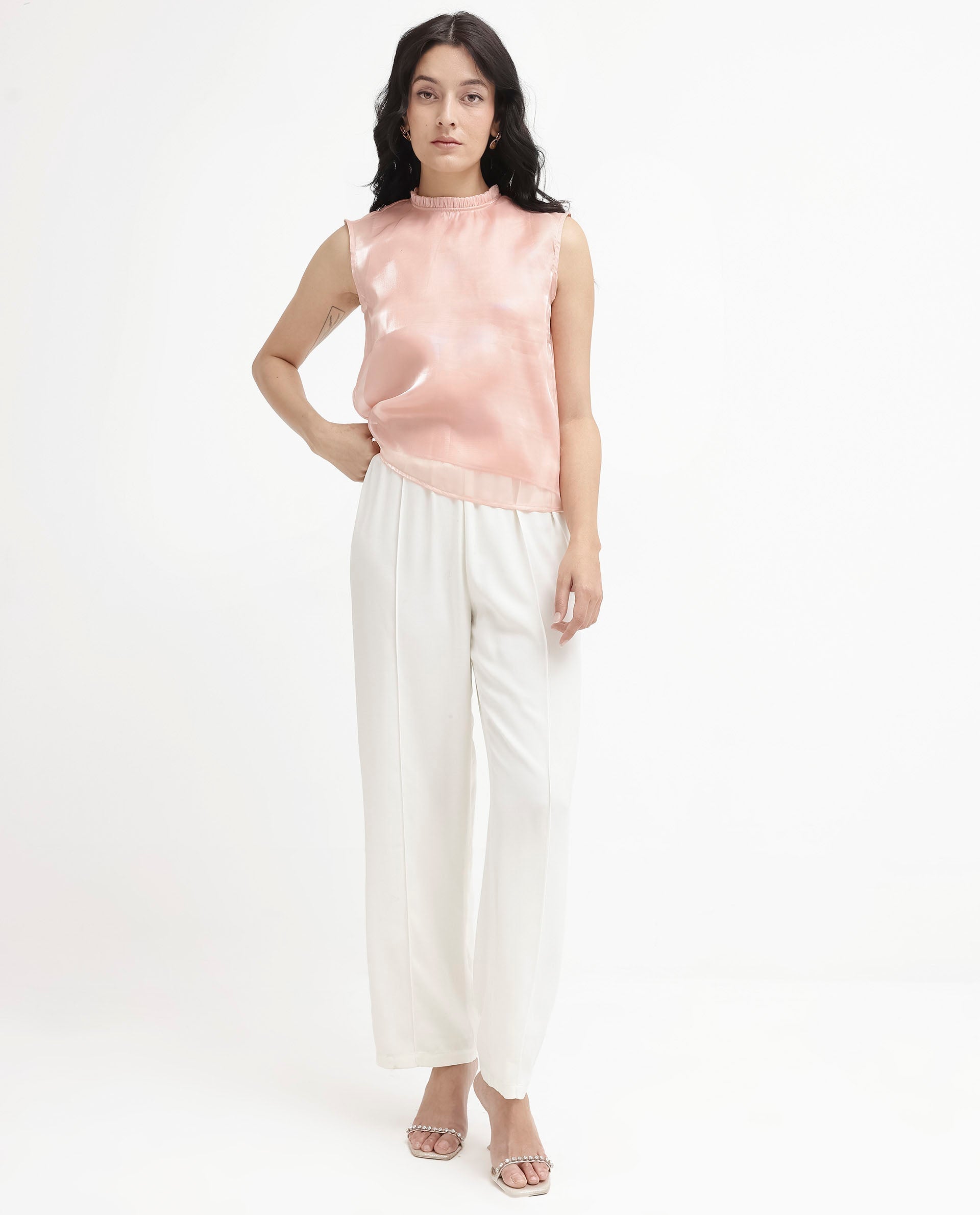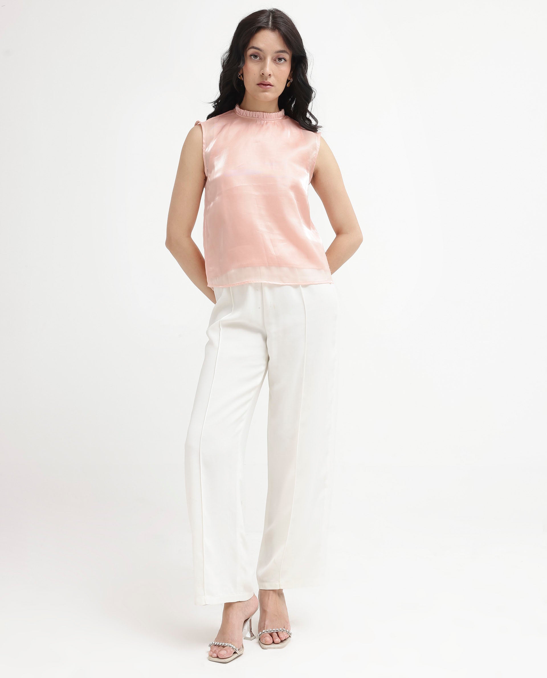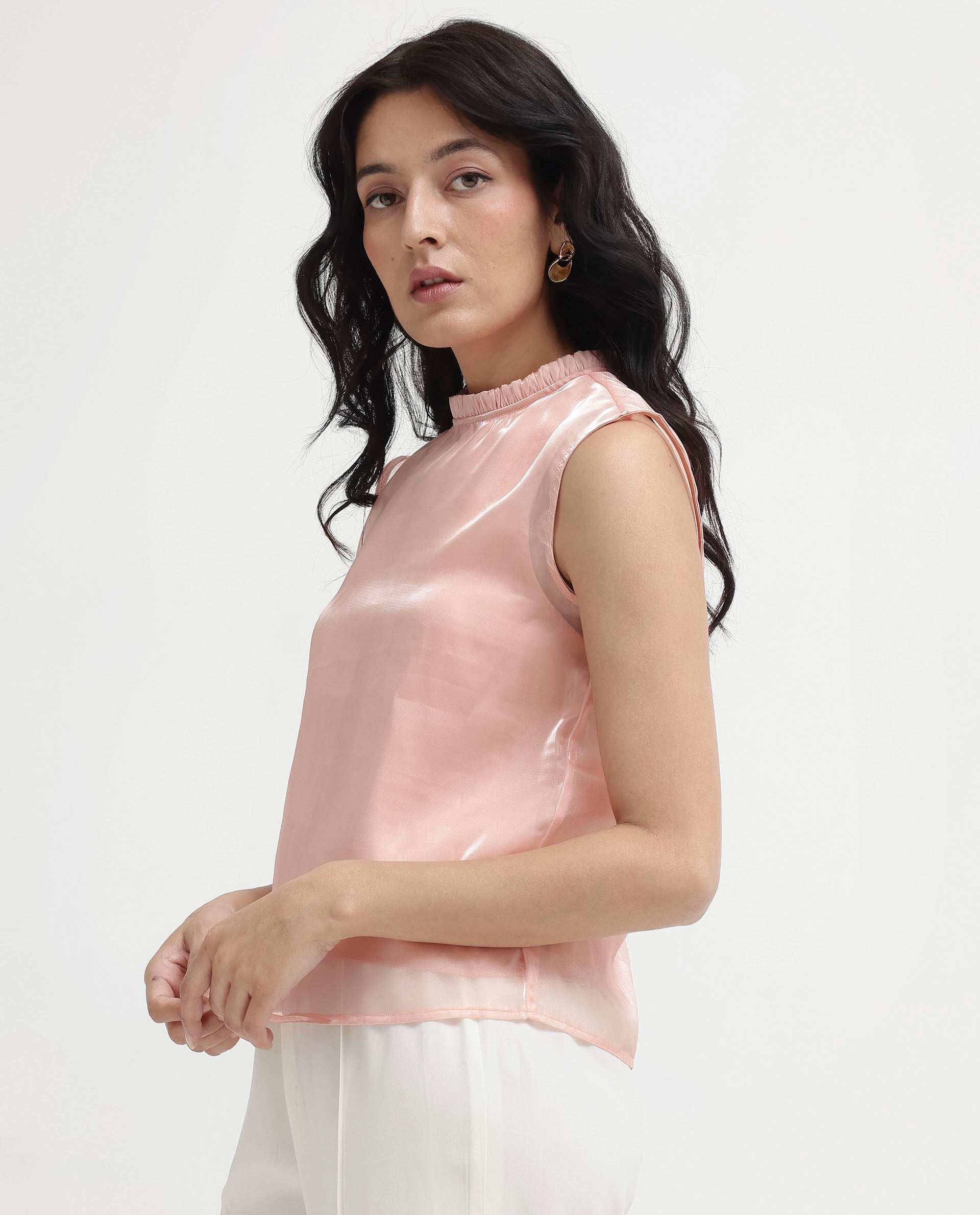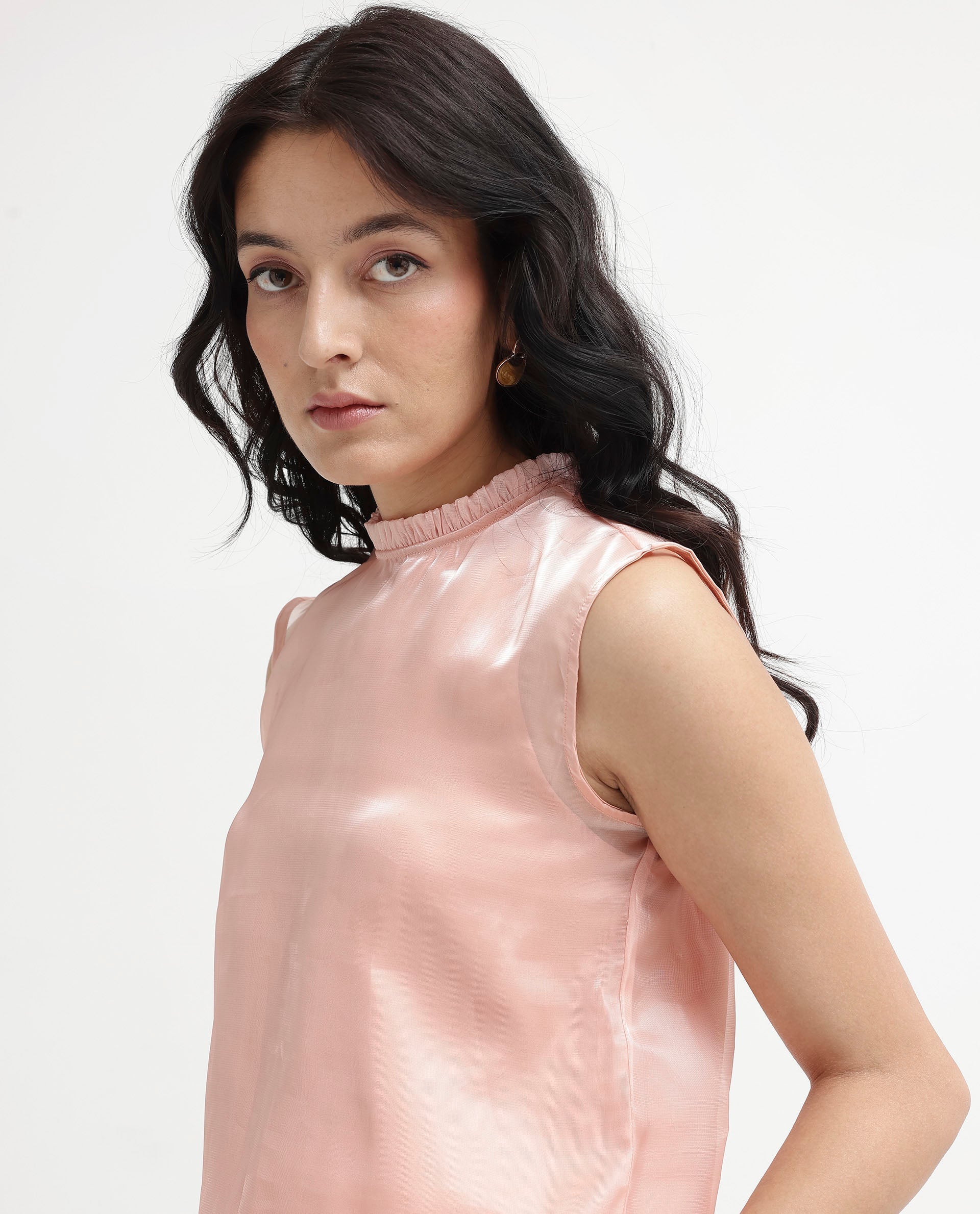 1. Effortlessly chic sleeveless top with a charming ruffle neck design.