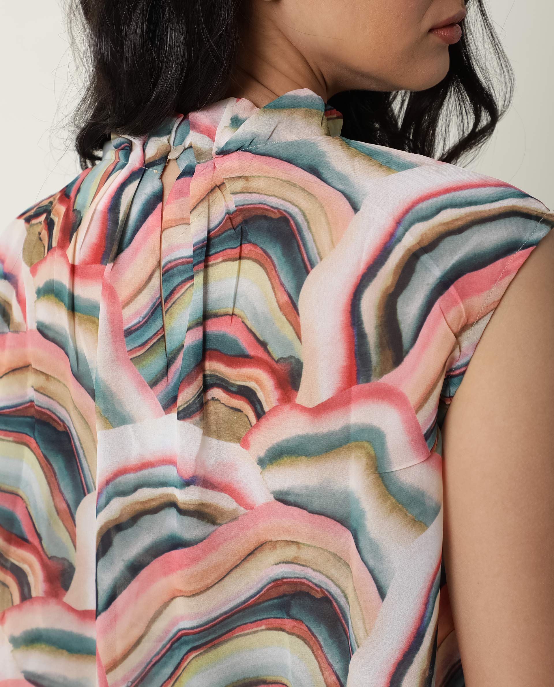 Rareism Women Colette Multi Polyester Fabric Regular Fit High Neck Sleeveless Abstract Print Top