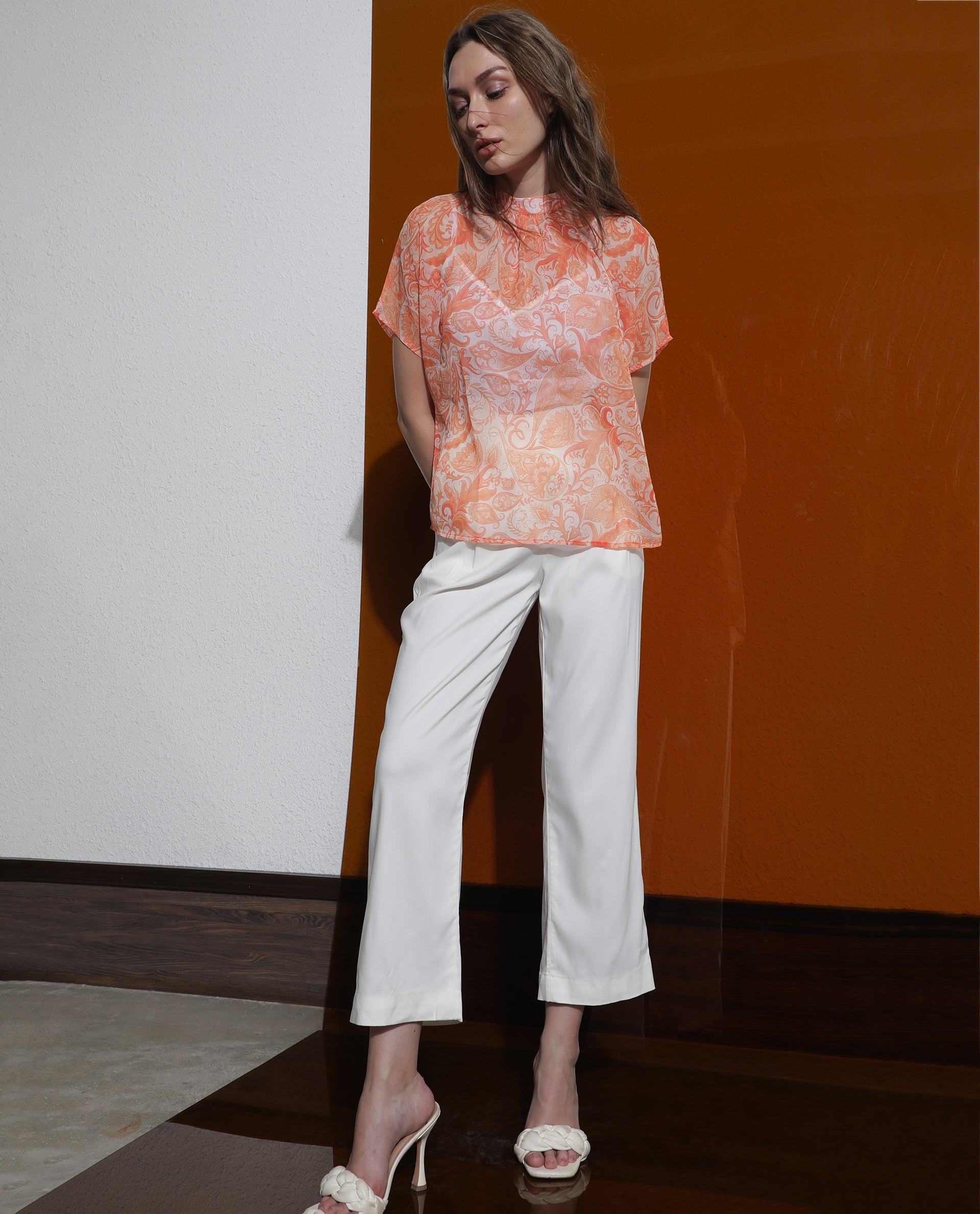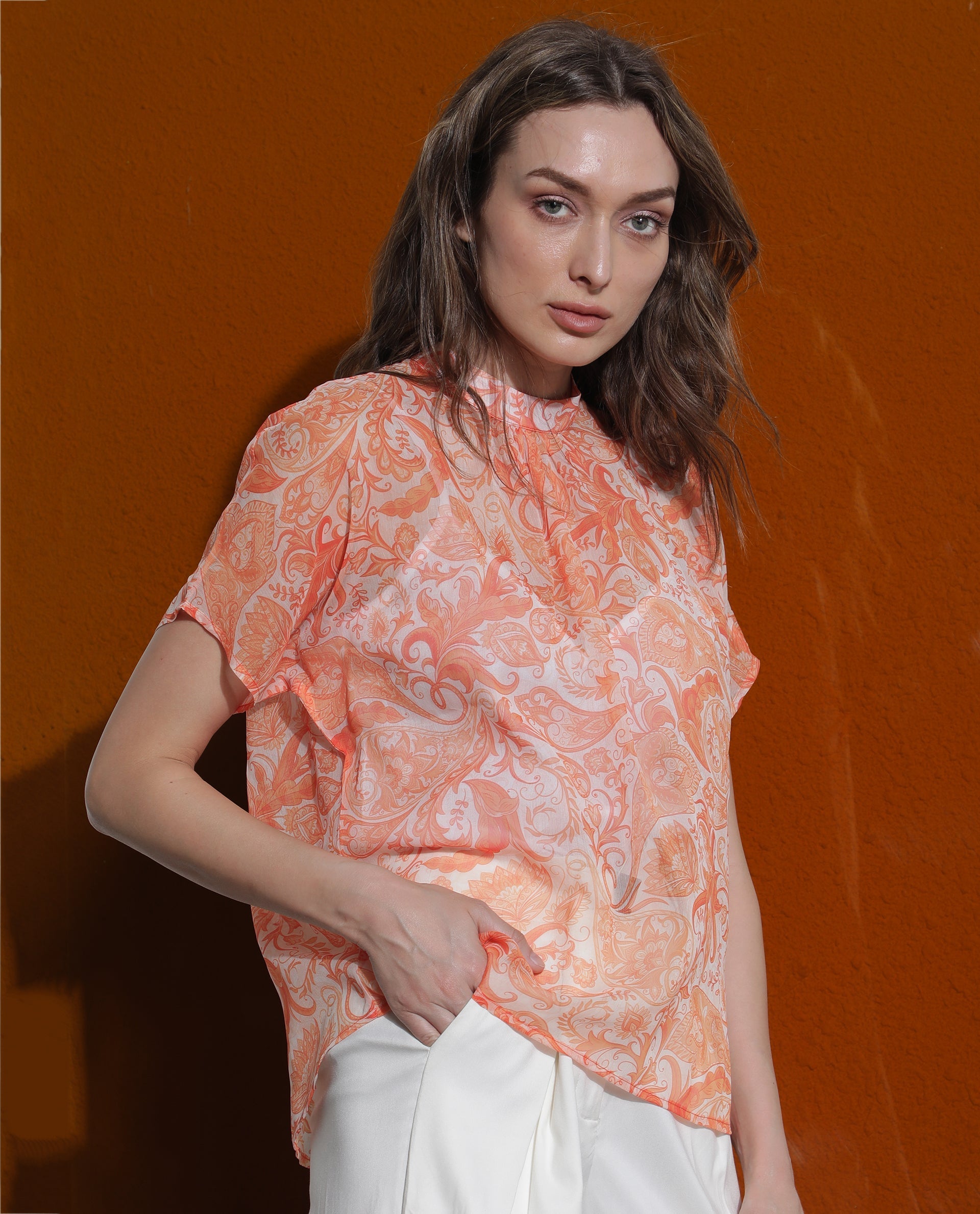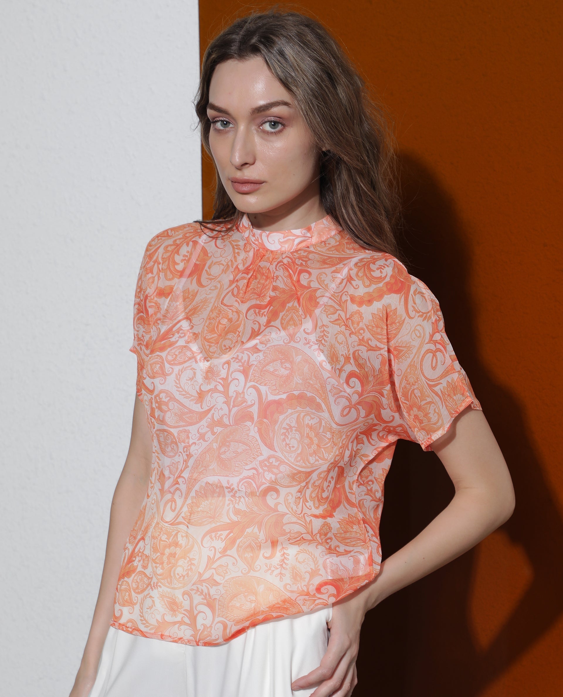 PAISLEY PRINT RELAXED FIT SHEER TOP