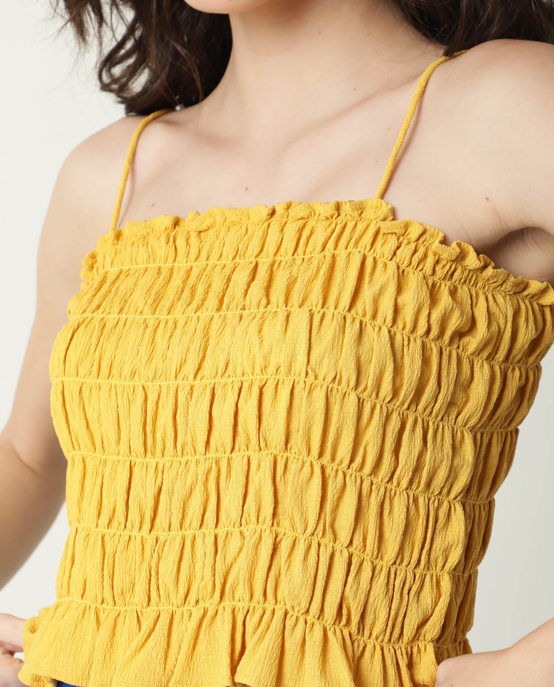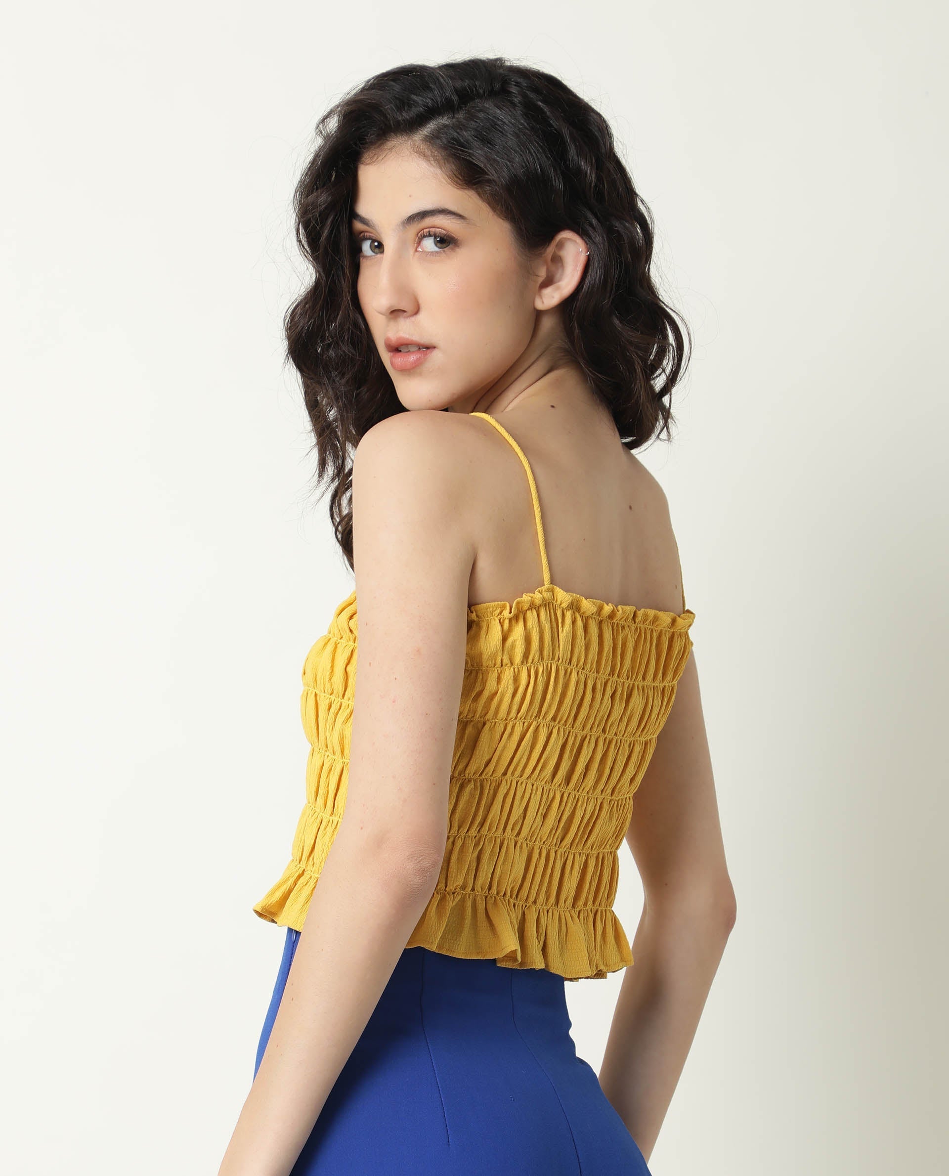 Rareism Womens Declan Yellow Top Cotton Fabric Regular Fit Sleeveless