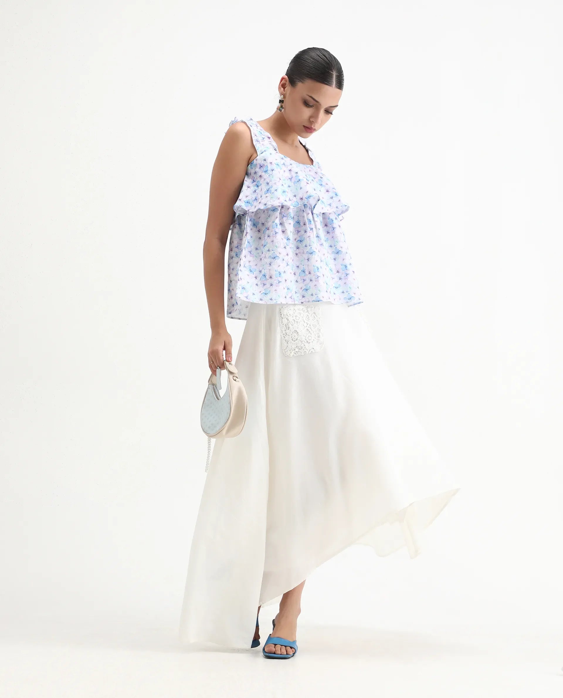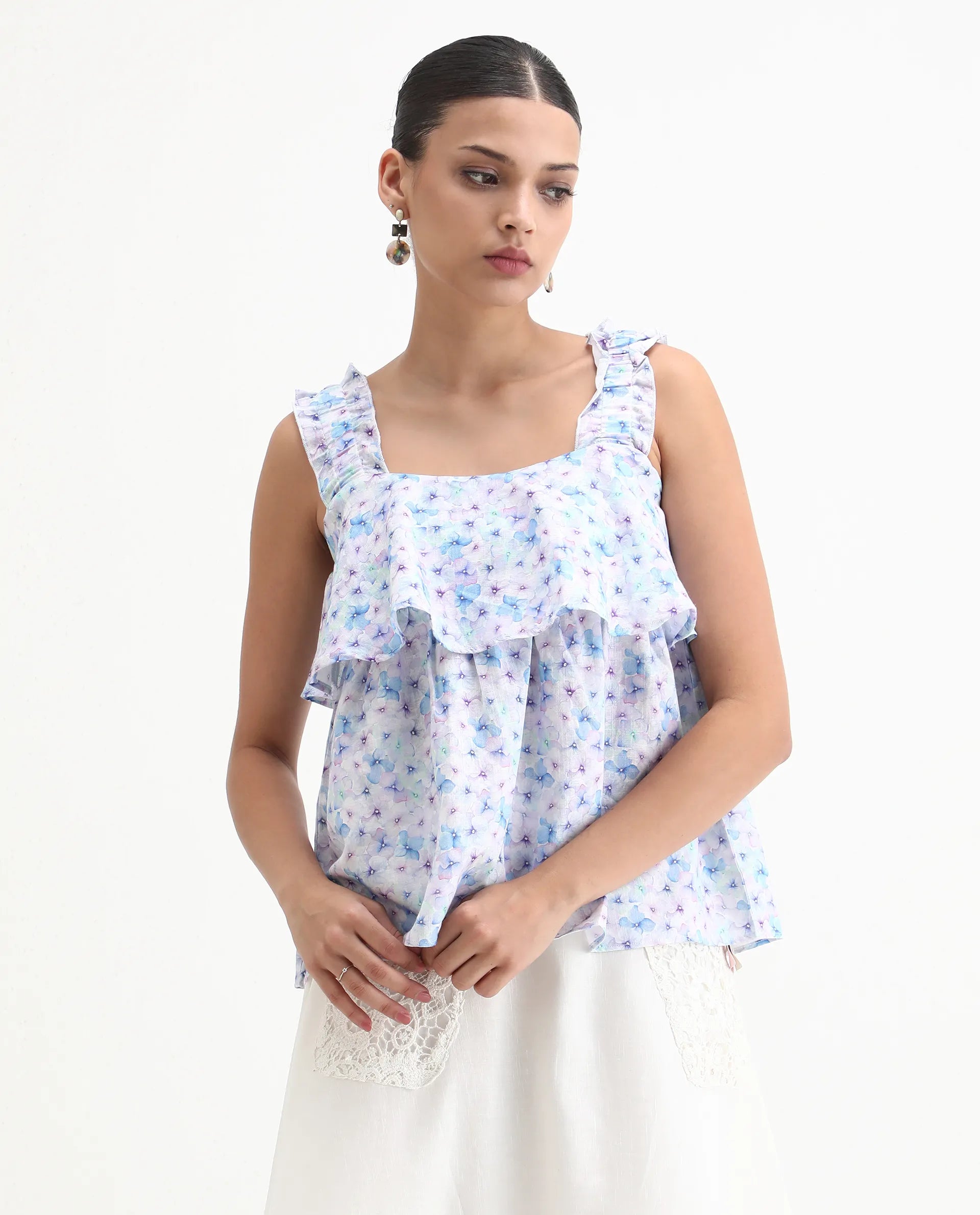 A urban style sleeveless top win pastel floral print.