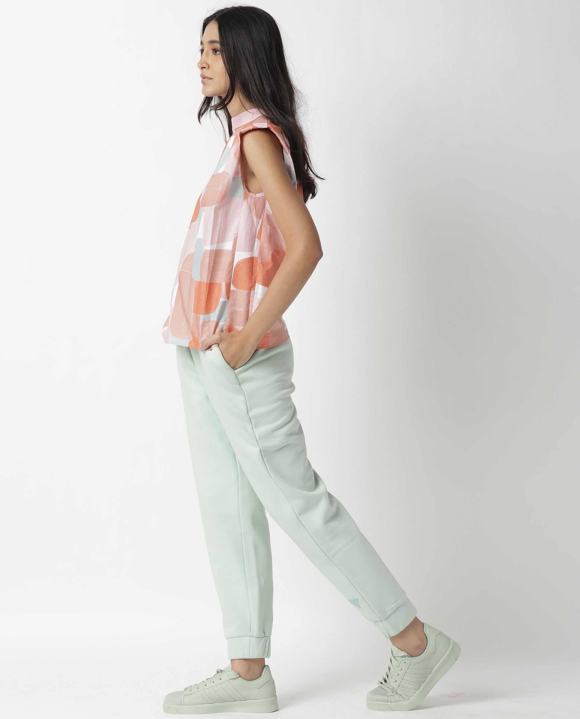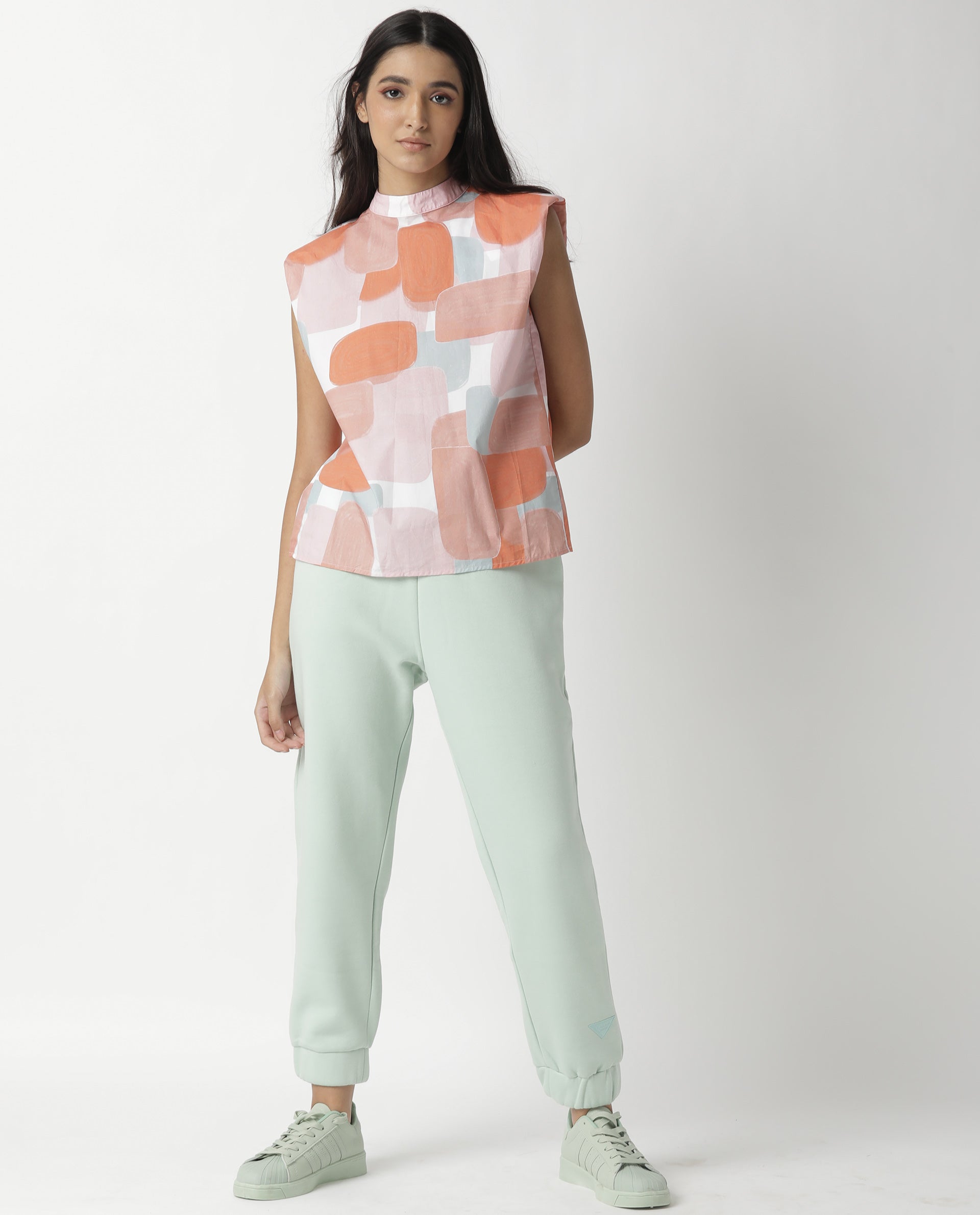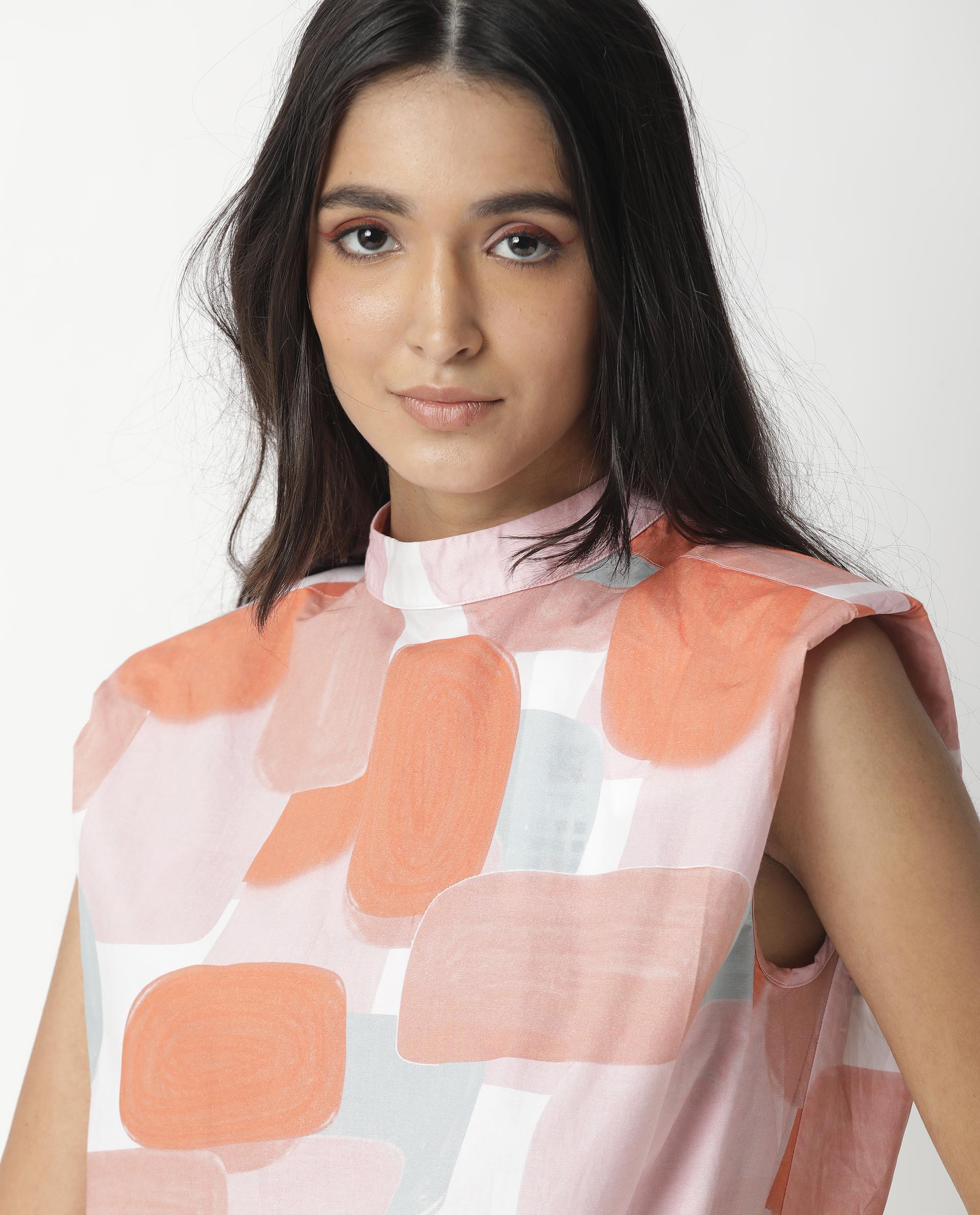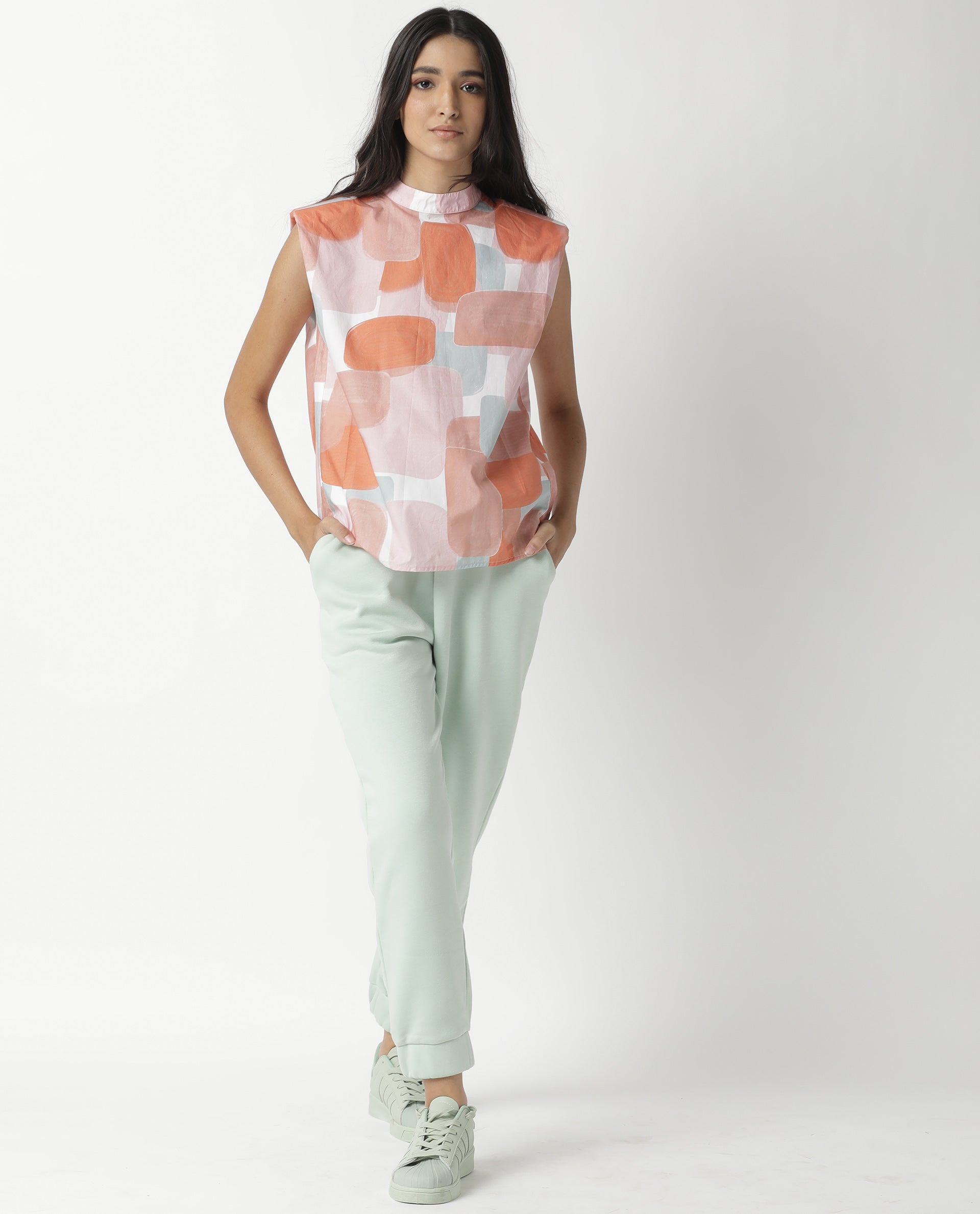Rareism Womens Diegon Peach Top Cotton Fabric Regular Fit Sleeveless High Neck
