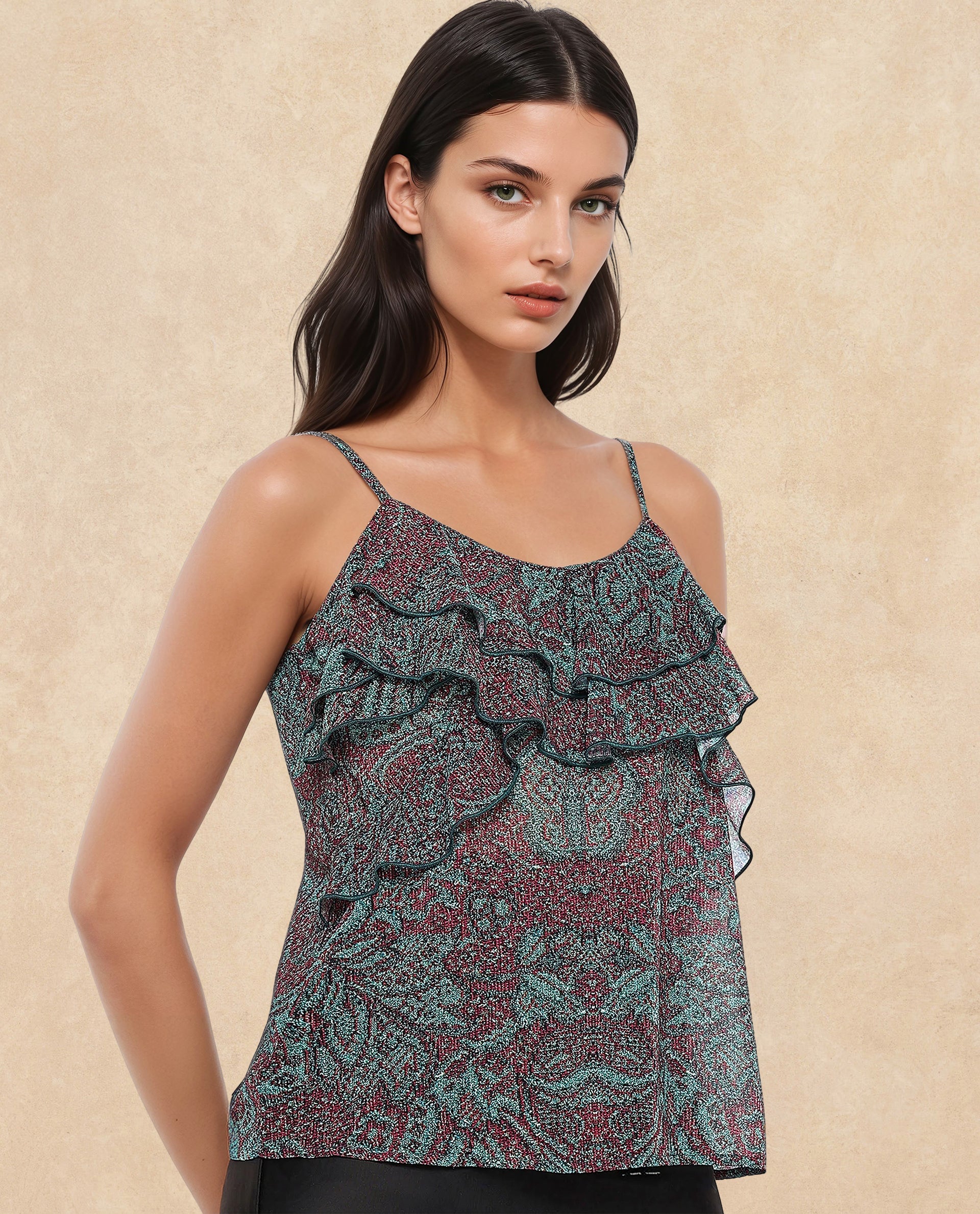Rareism Women Difi Dark Maroon Polyester Fabric Sleeveless V-Neck Abstract Print Top