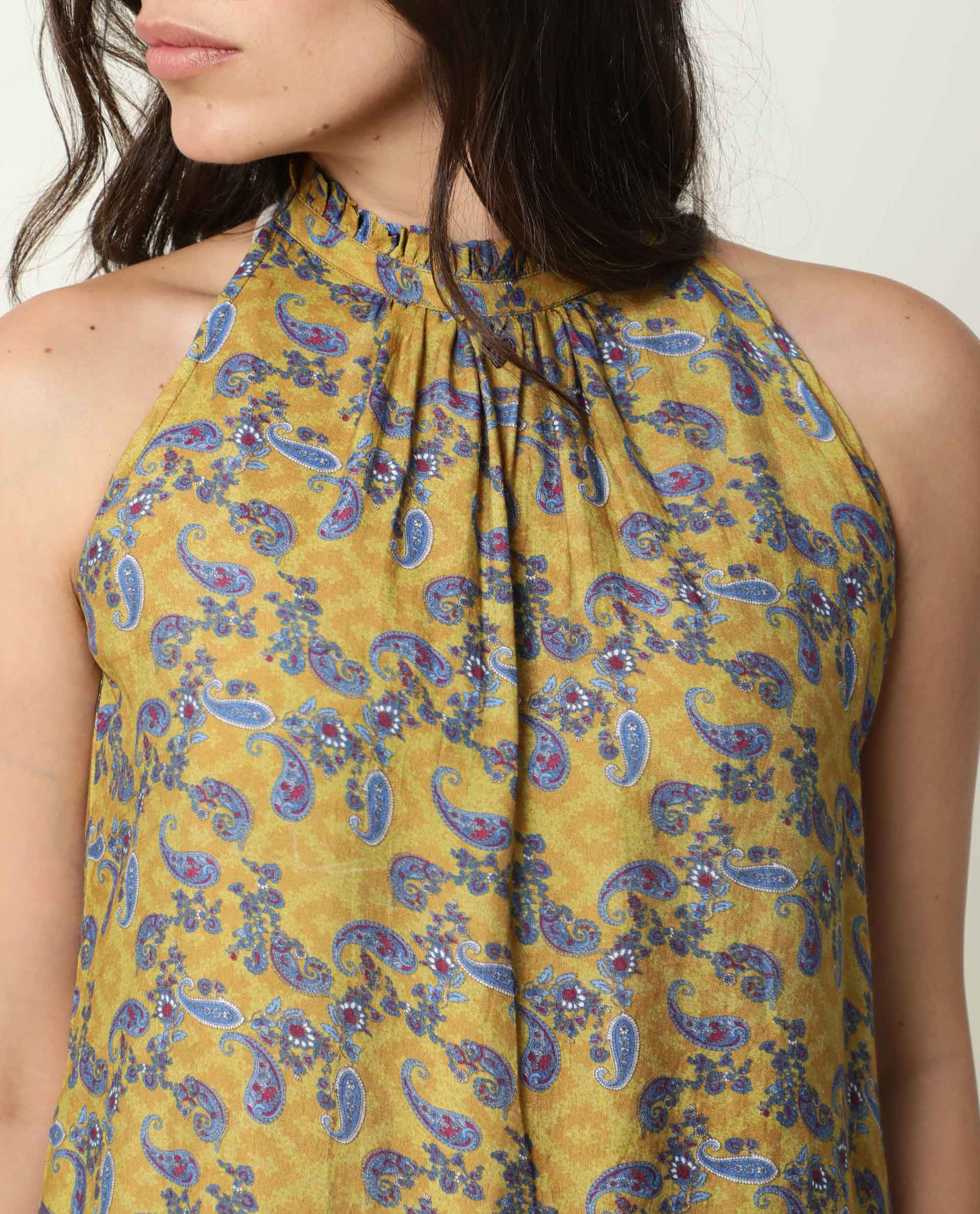 Rareism Womens Elordi Olive Top Cotton Silk Fabric Fitted Fit Sleeveless V Neck