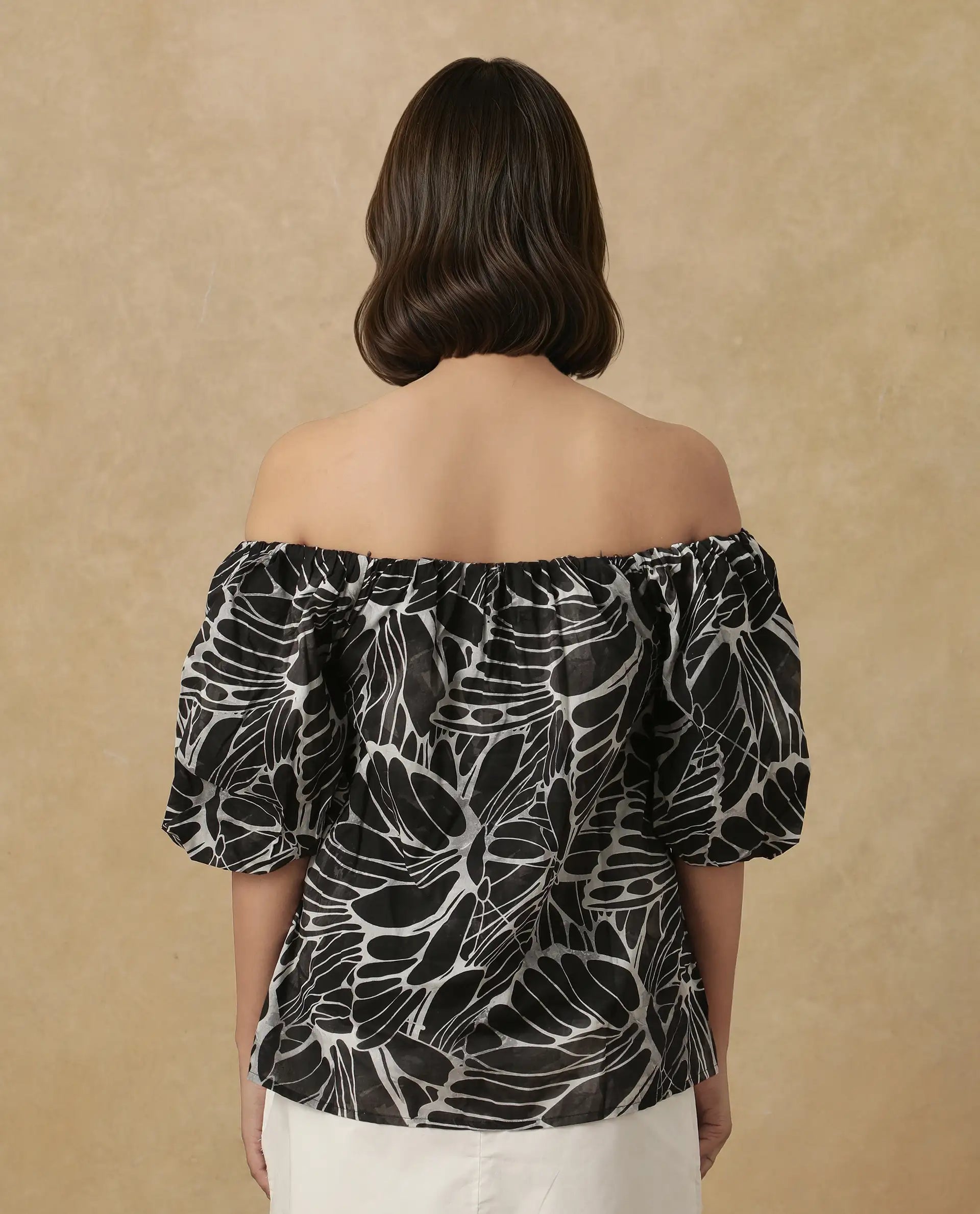 COTTON TOP WITH BALLOON SLEEVES AND OFF-SHOULDER DESIGN
