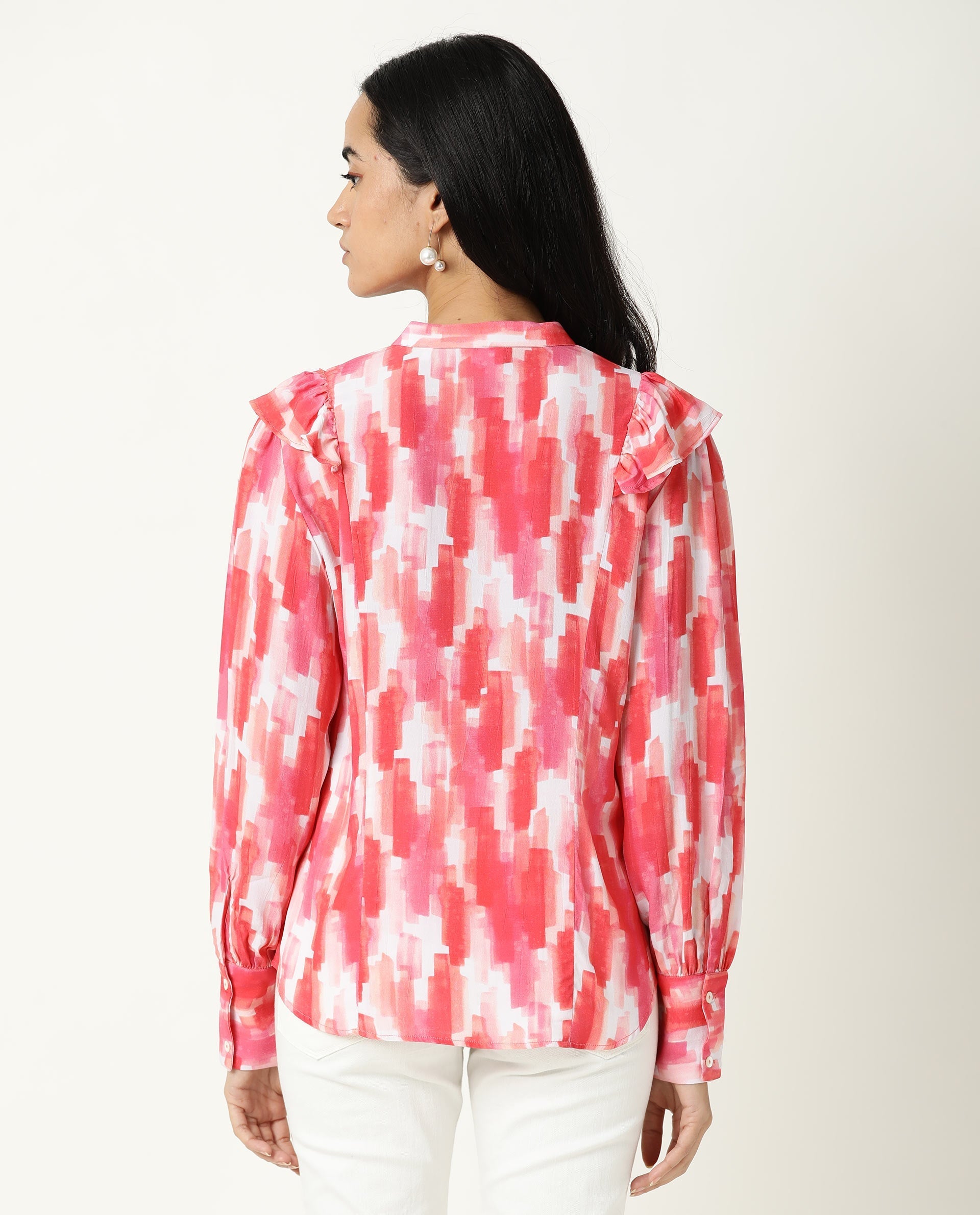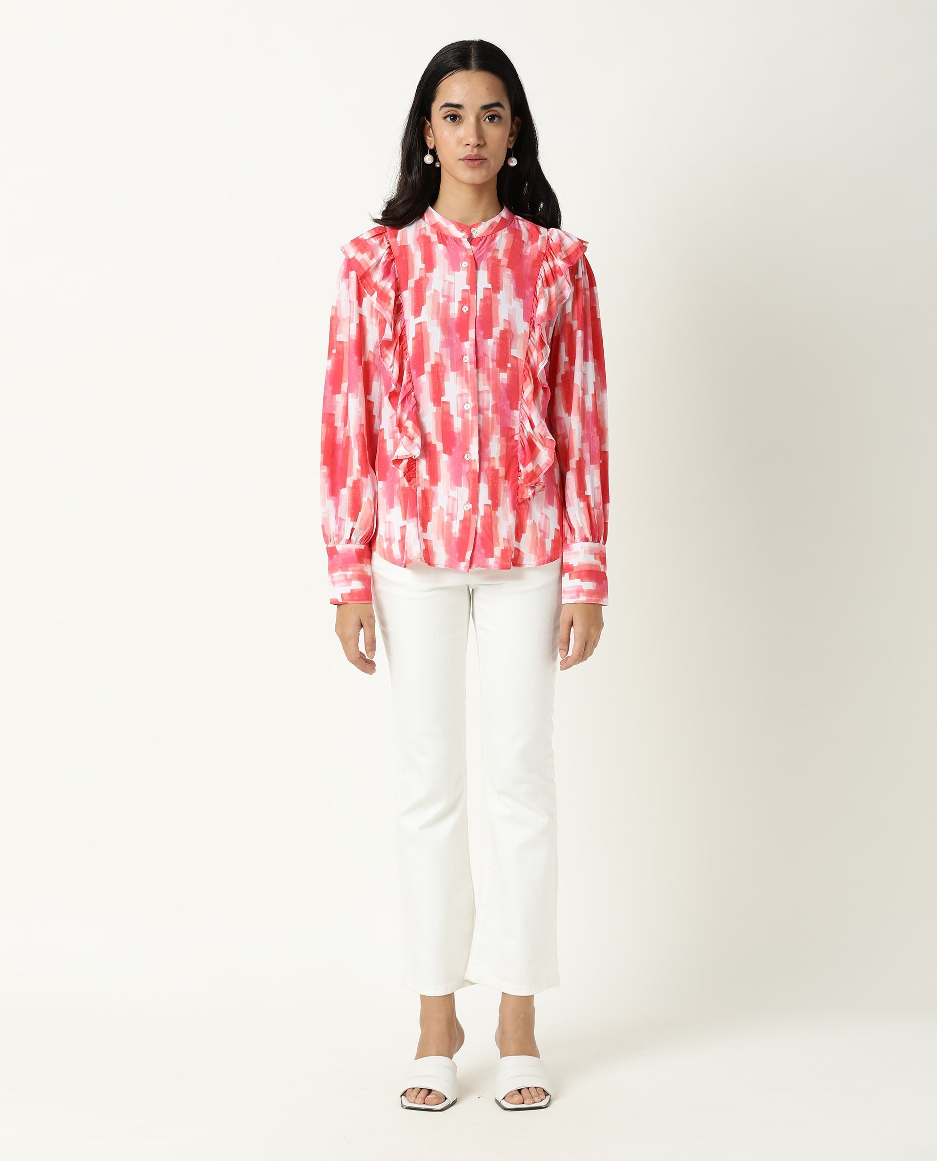 SATIN RUFFLED SHIRT WITH MANDARIN COLLAR