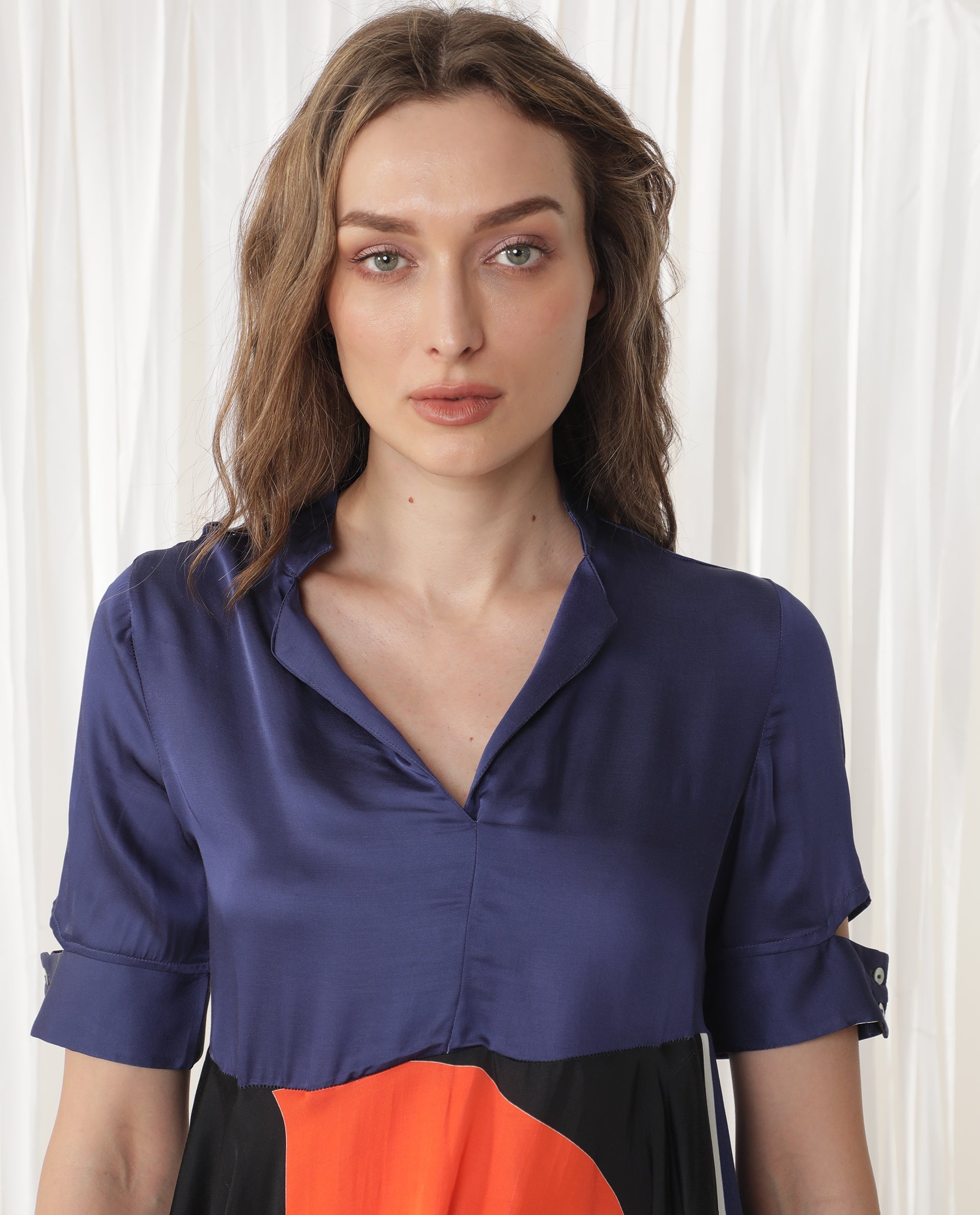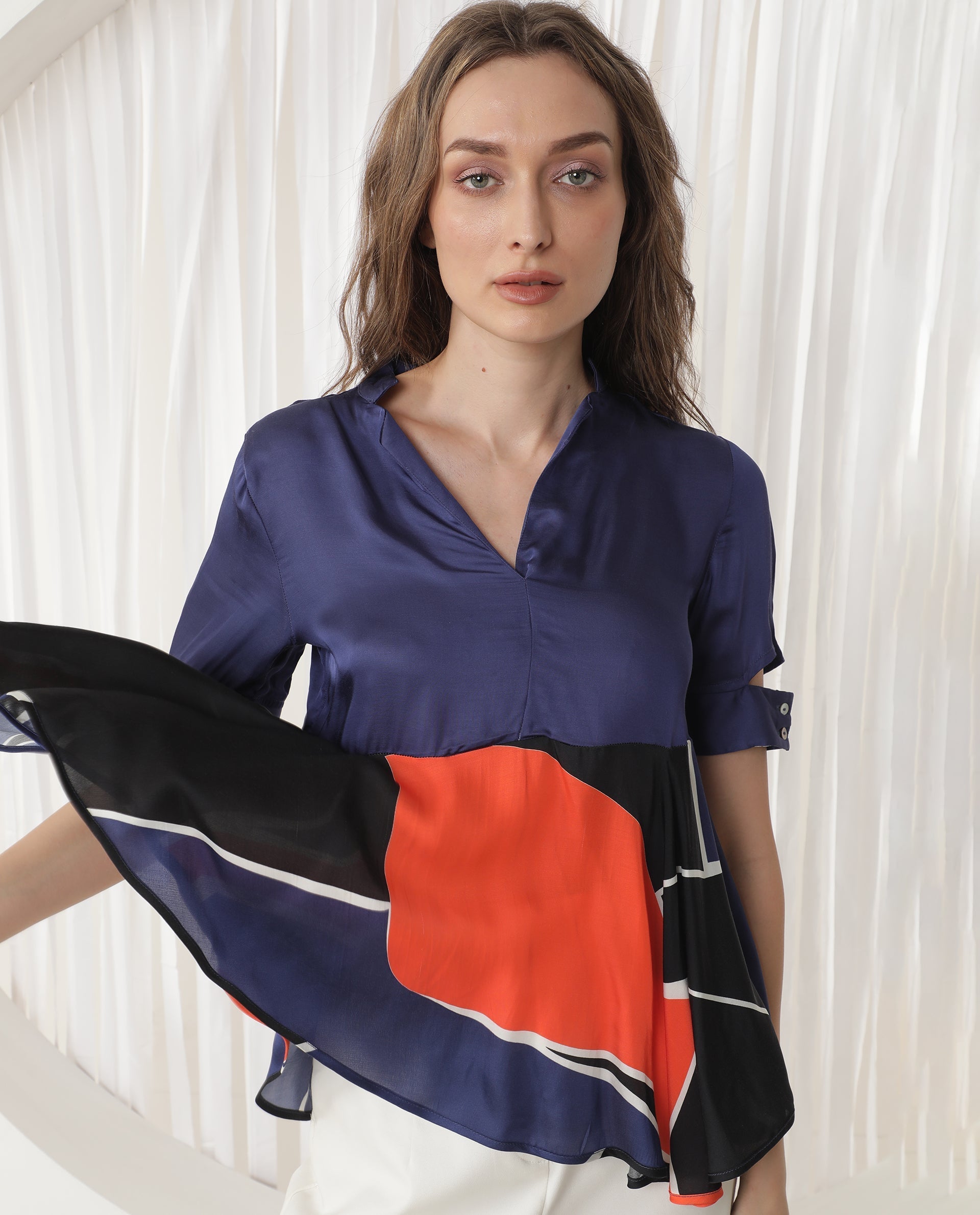 Rareism Women Havana Orange Modal Fabric Relaxed Fit Over Lap Half Sleeves Abstract Print Top