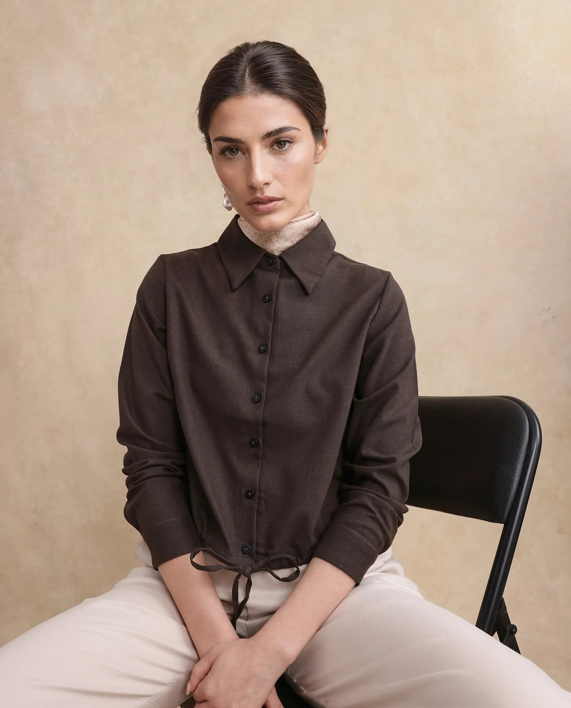 Rareism Women Hika Dark Brown Cuffed Sleeve Collared Neck Button Closure Plain Top