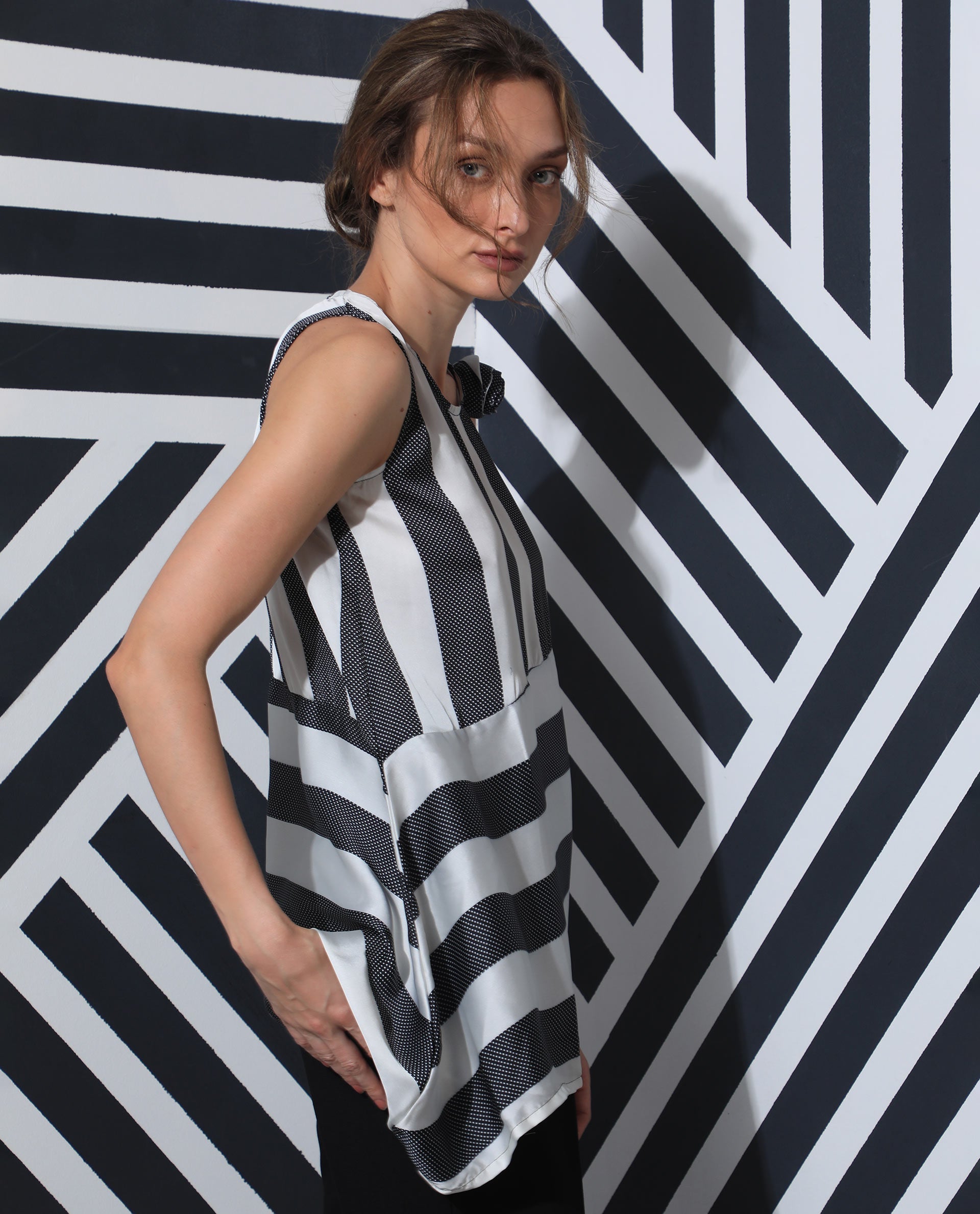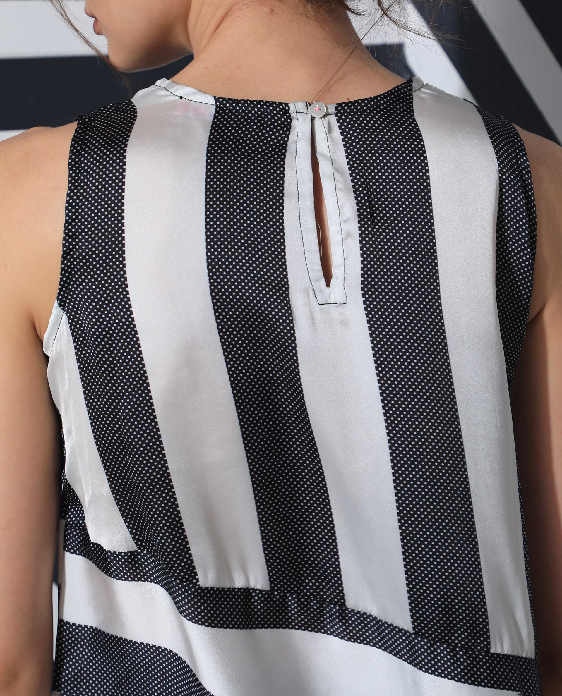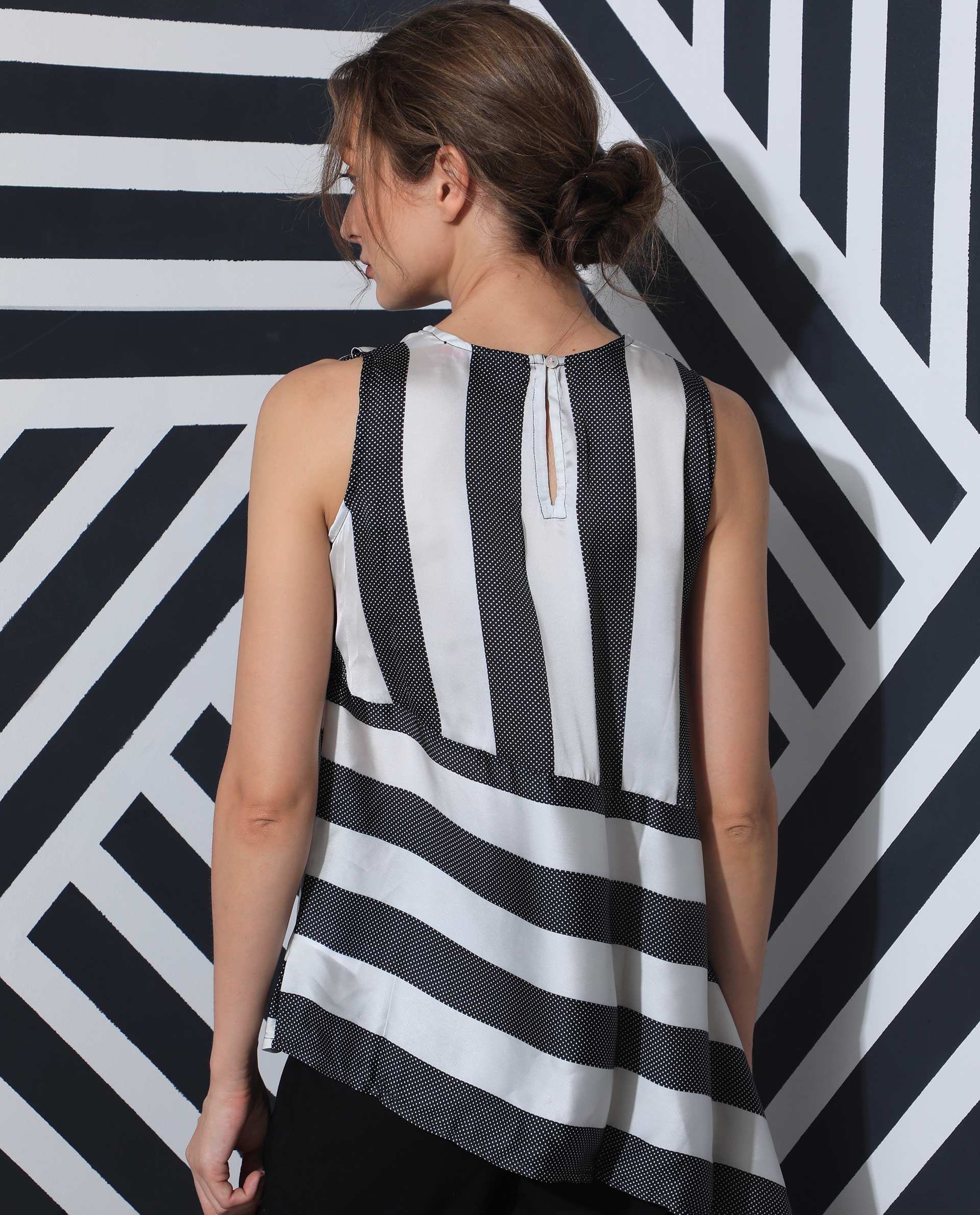 SLEEVELESS STRIPE TOP WITH ASYMMETRIC HEM