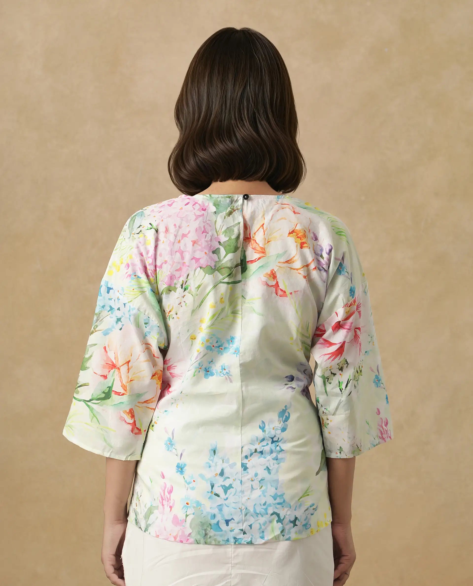 BLOOMING ELEGANCE FLORAL COTTON TOP