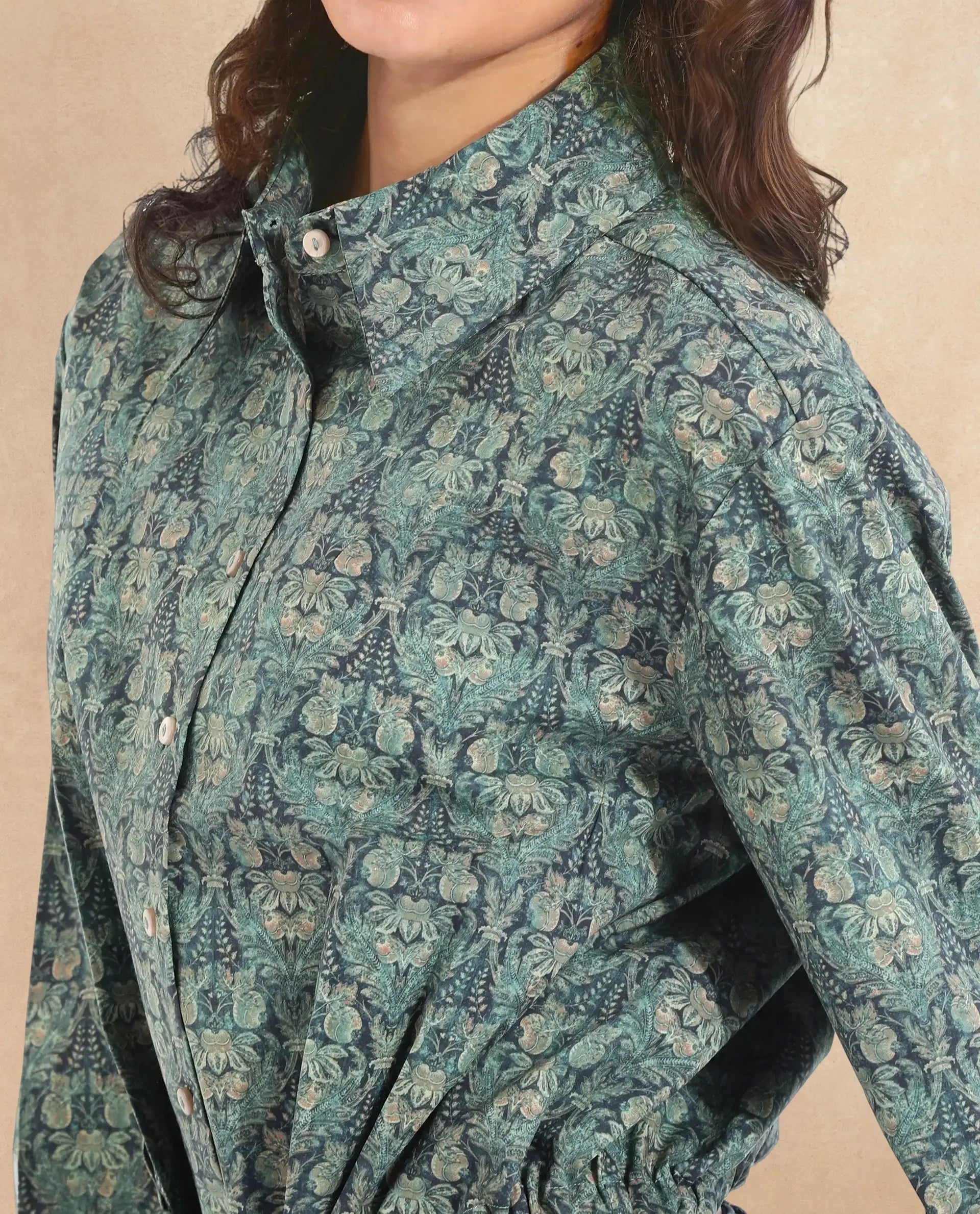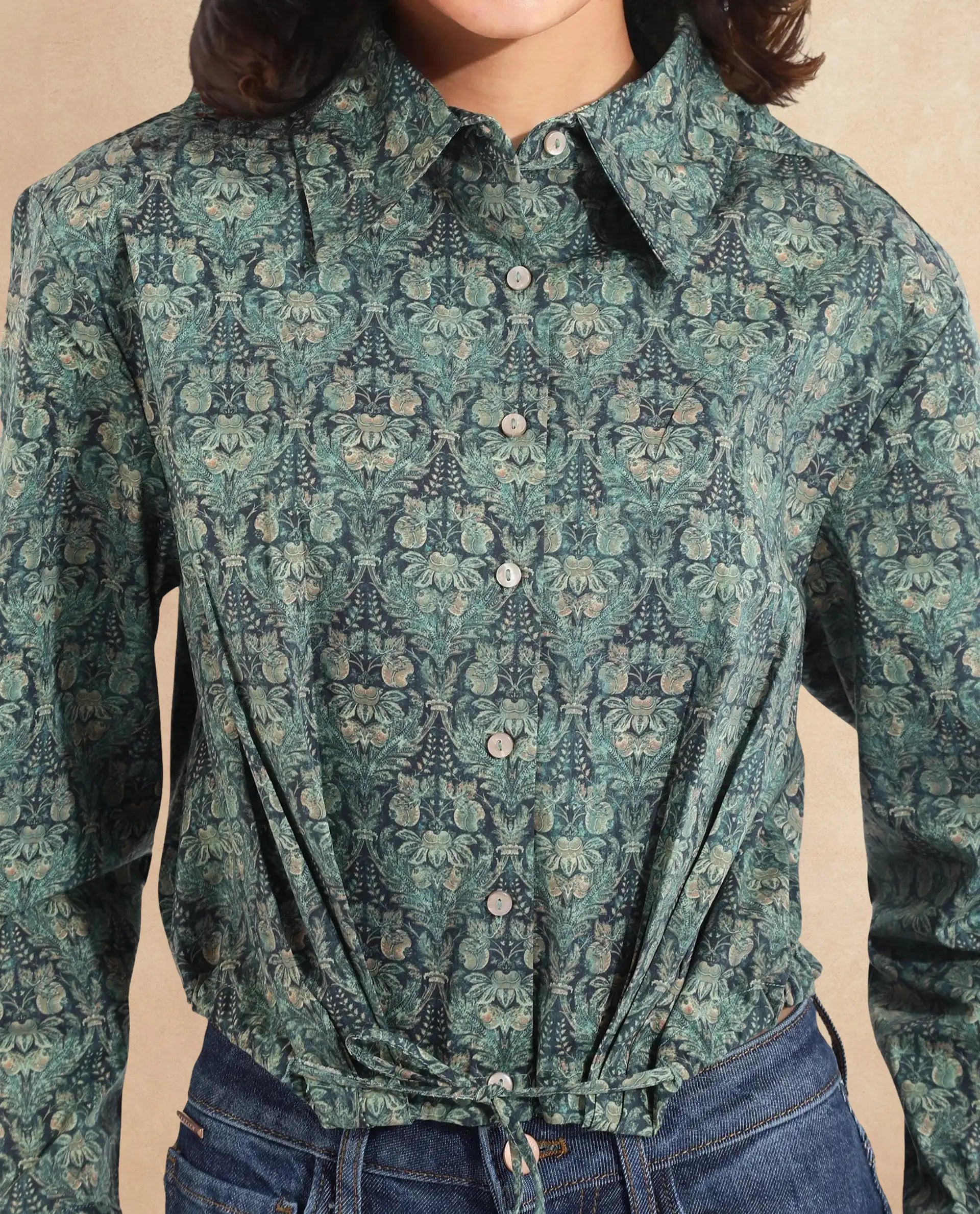 Rareism Women Kaylu Dark Multi Cuffed Sleeve Collared Neck Button Closure Cropped Abstract Print Top