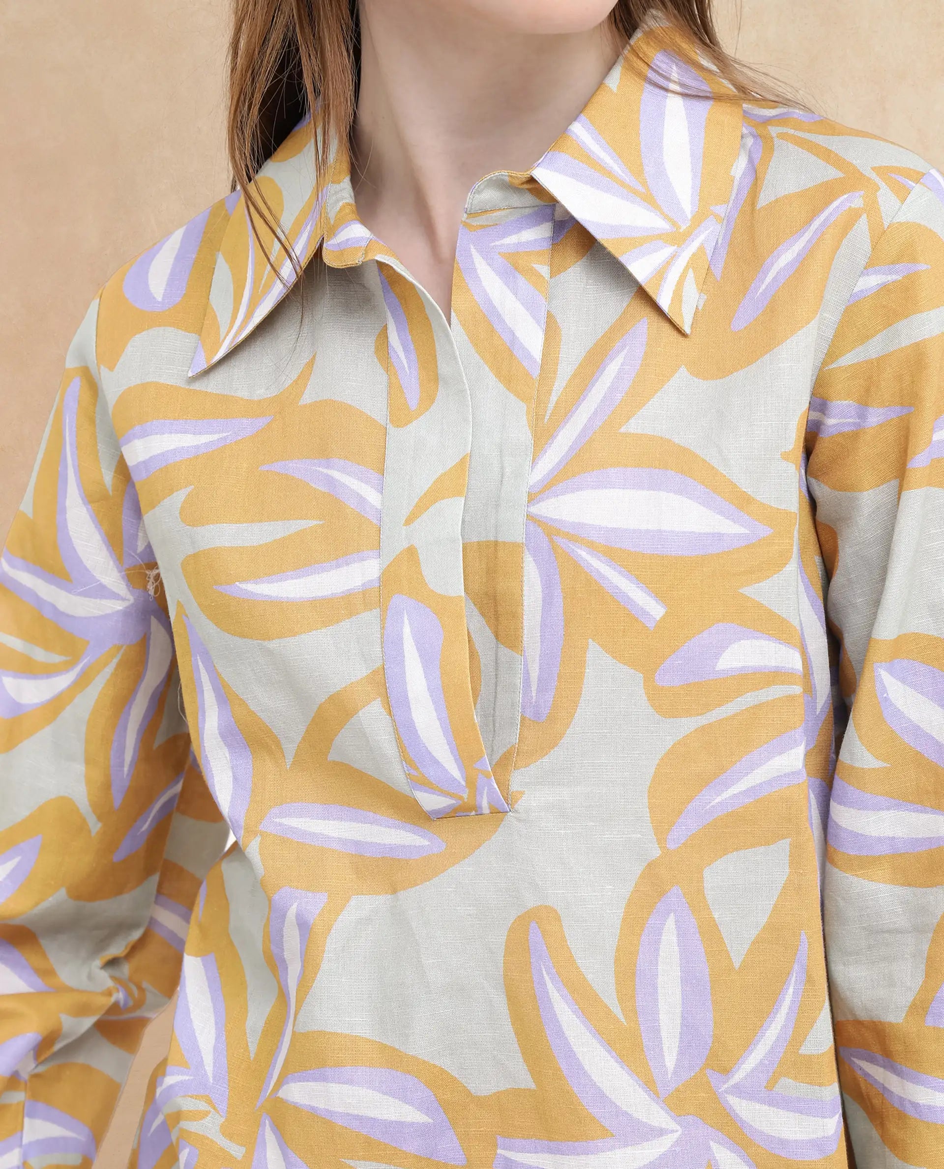 ABSTRACT ELEGANCE BELL SLEEVES COLLARED TOP