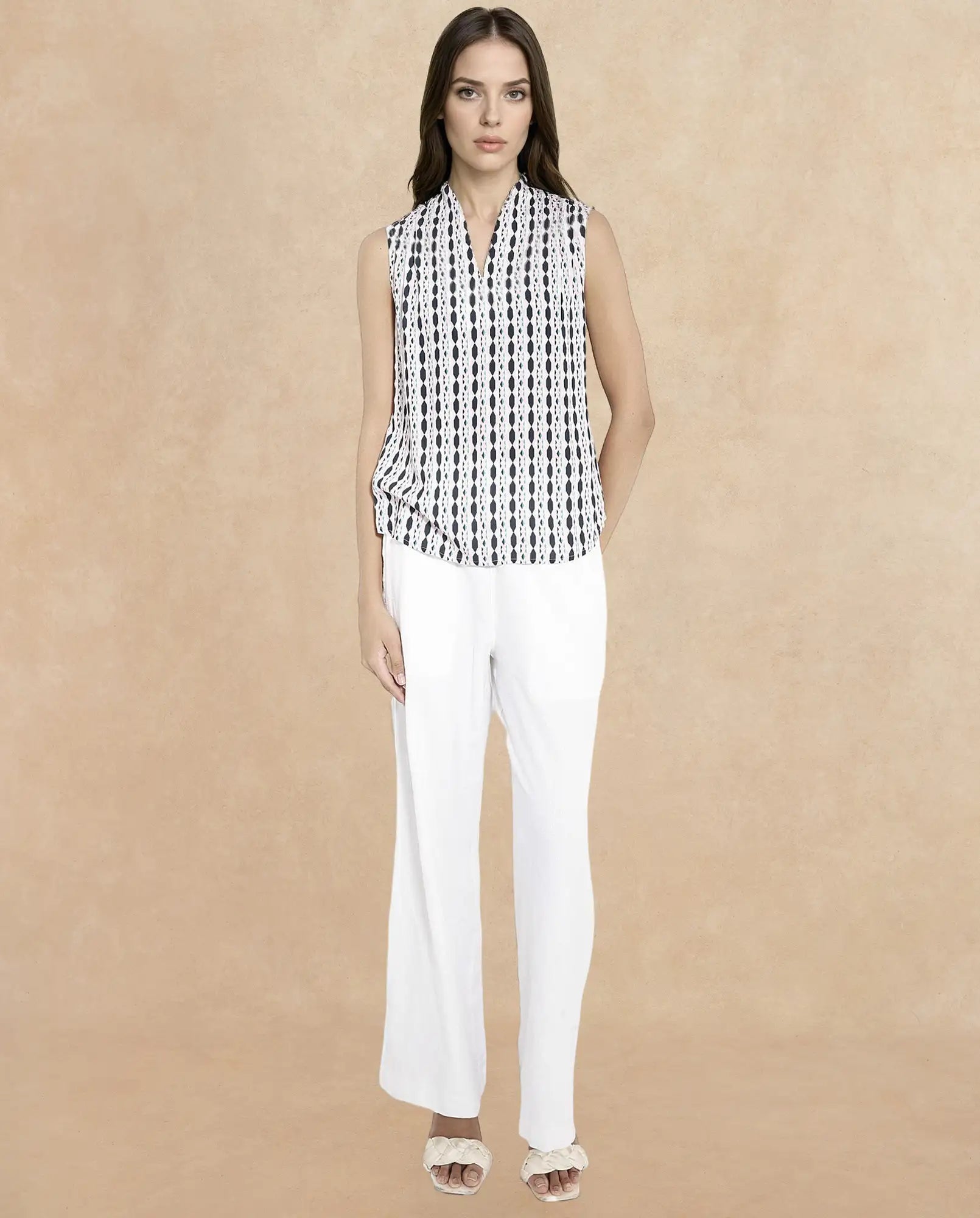 GEOMETRIC PRINTED RAISED V-NECK SLEEVELESS TOP