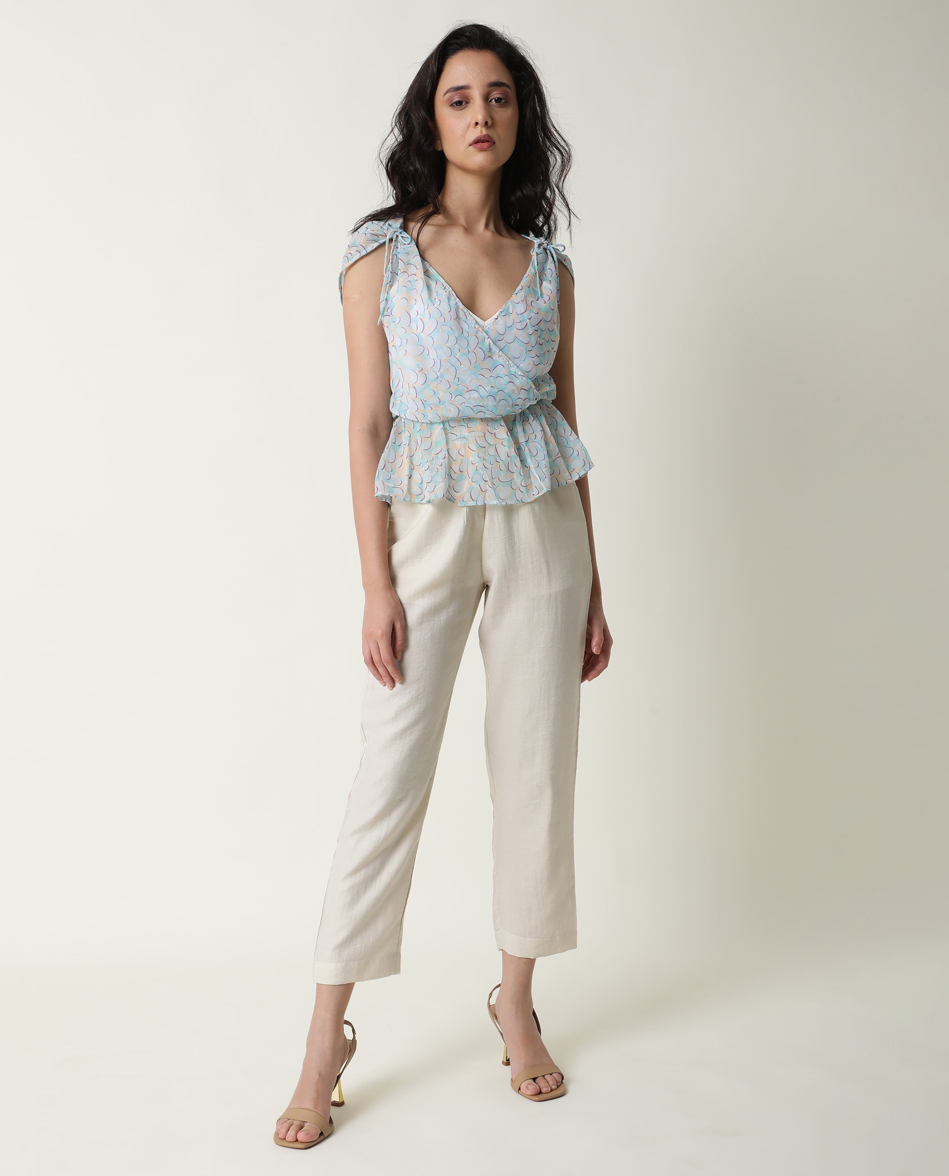 Rareism Women Loves Pastel Purple Viscose Fabric Regular Fit V-Neck Sleeveless Print Top