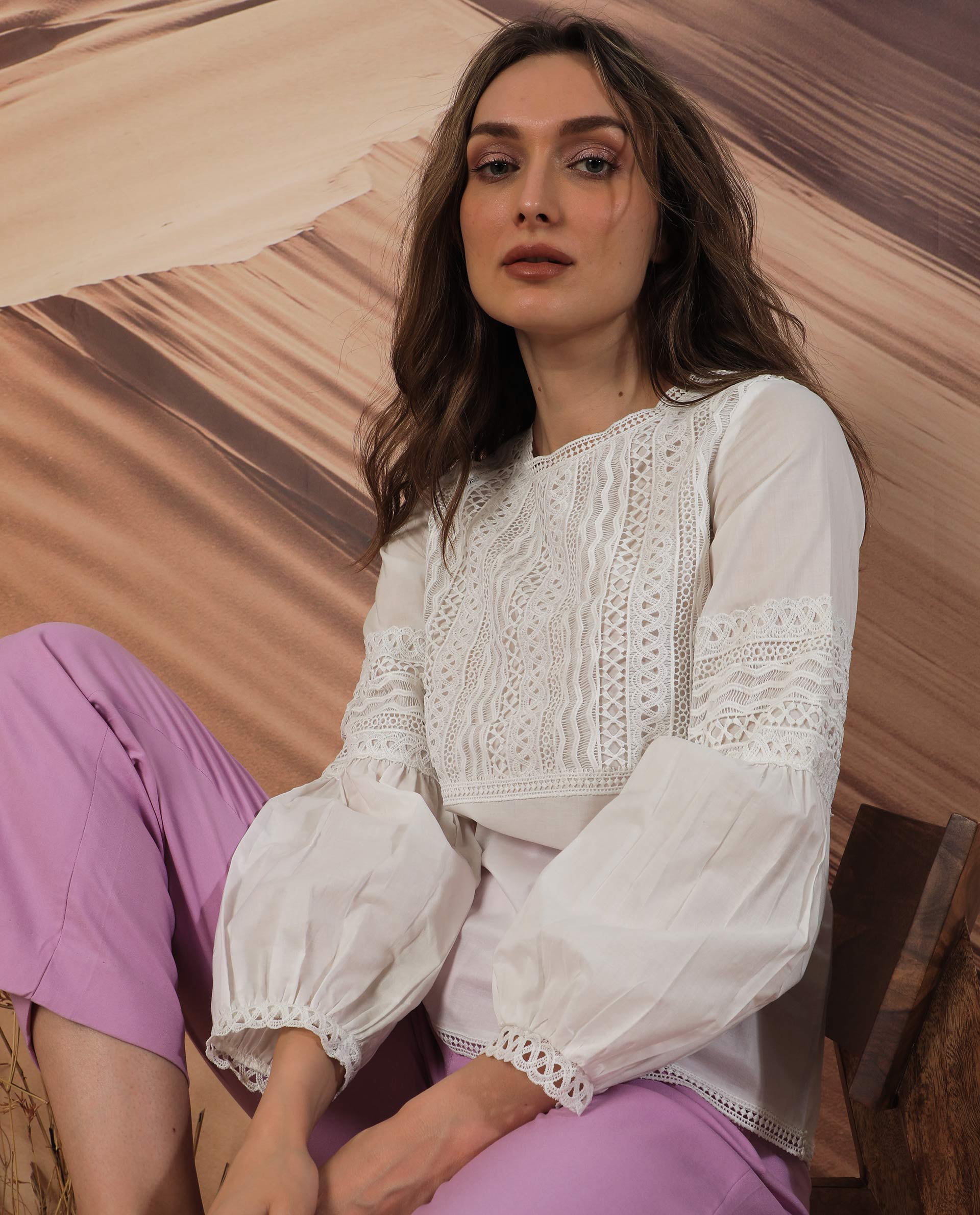 LACE-DETAILED BALLOON SLEEVE BLOUSE