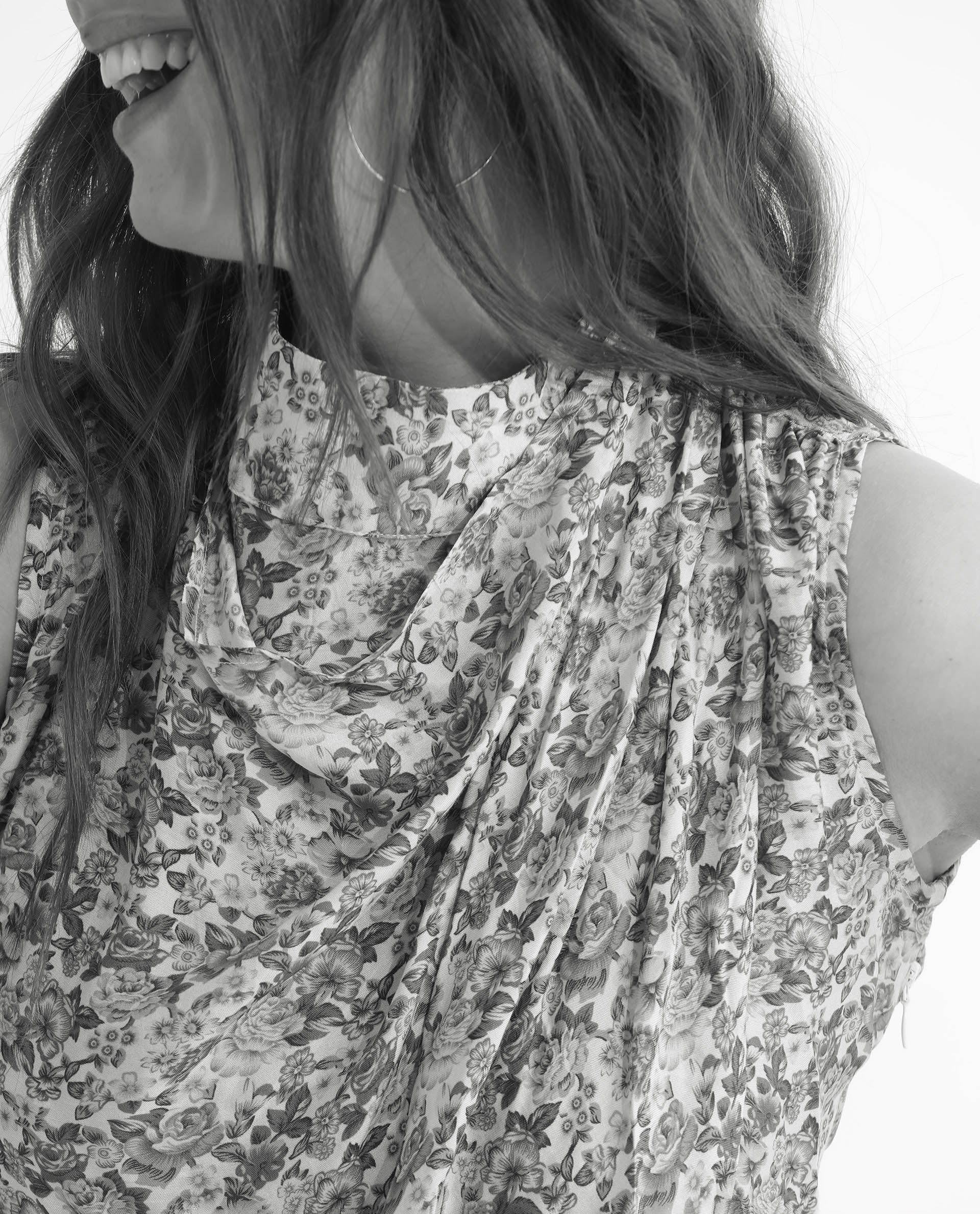 -With ruffled sleeves and neckline, front keyhole with tie up and relaxed fit.