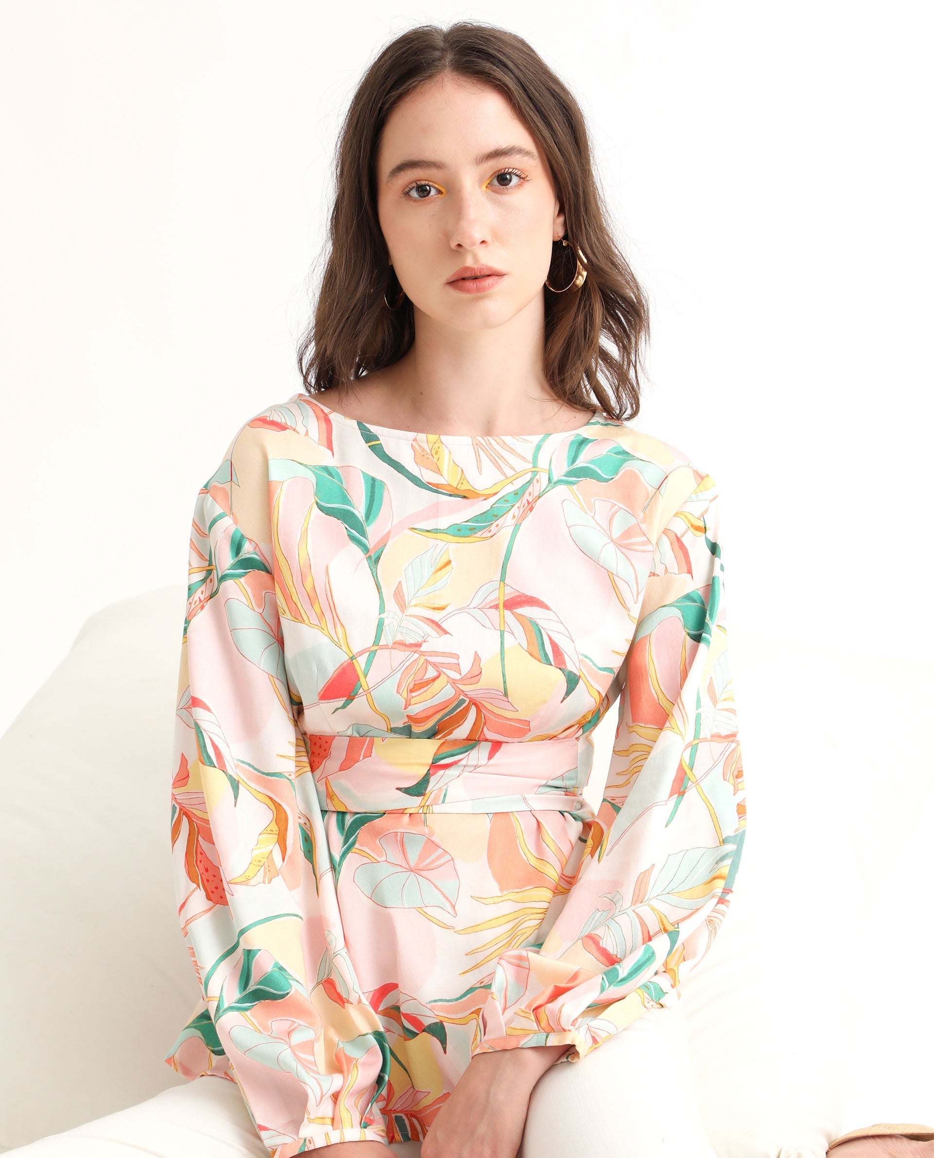 ABSTRACT PRINT BOAT NECK PEPLUM TOP