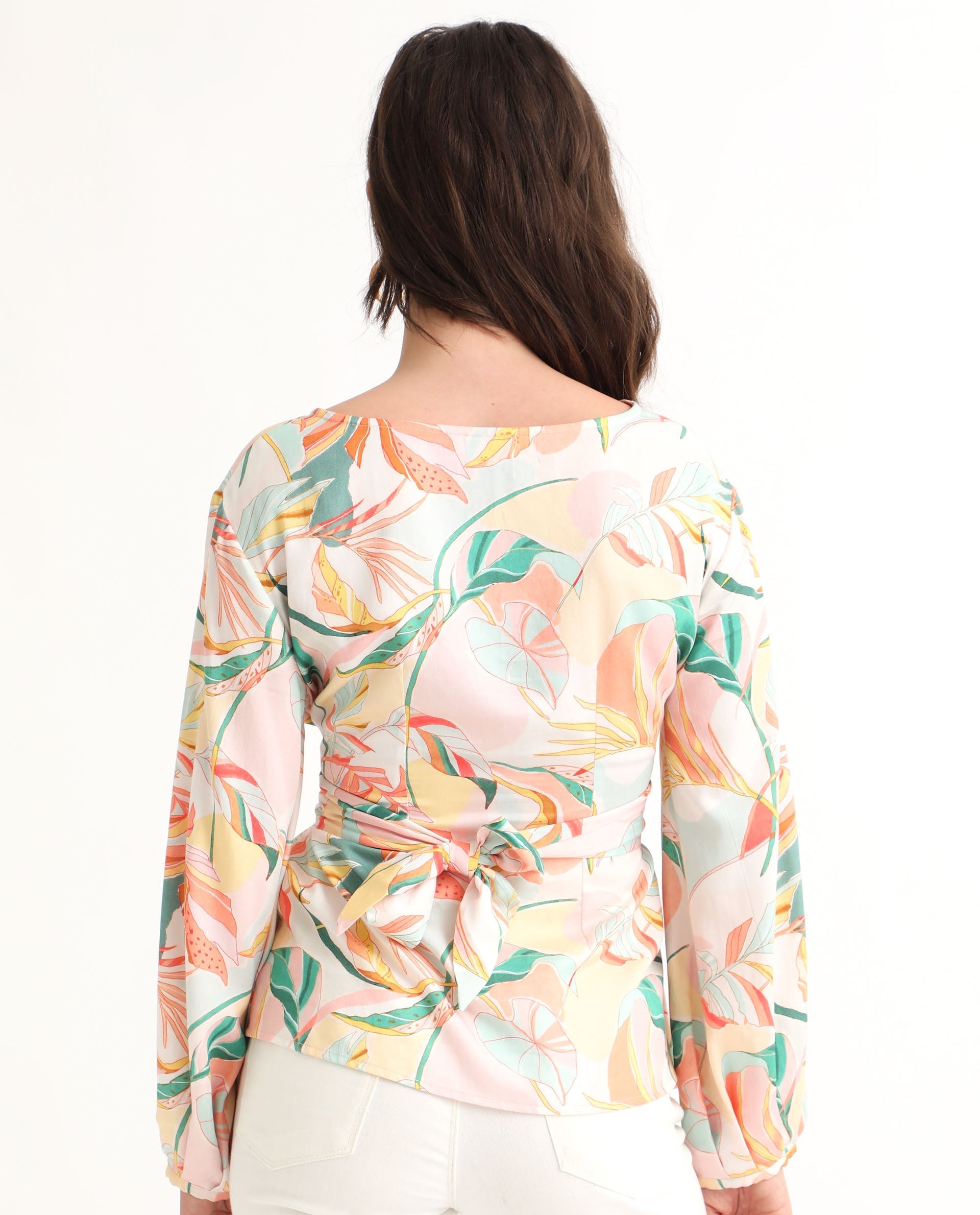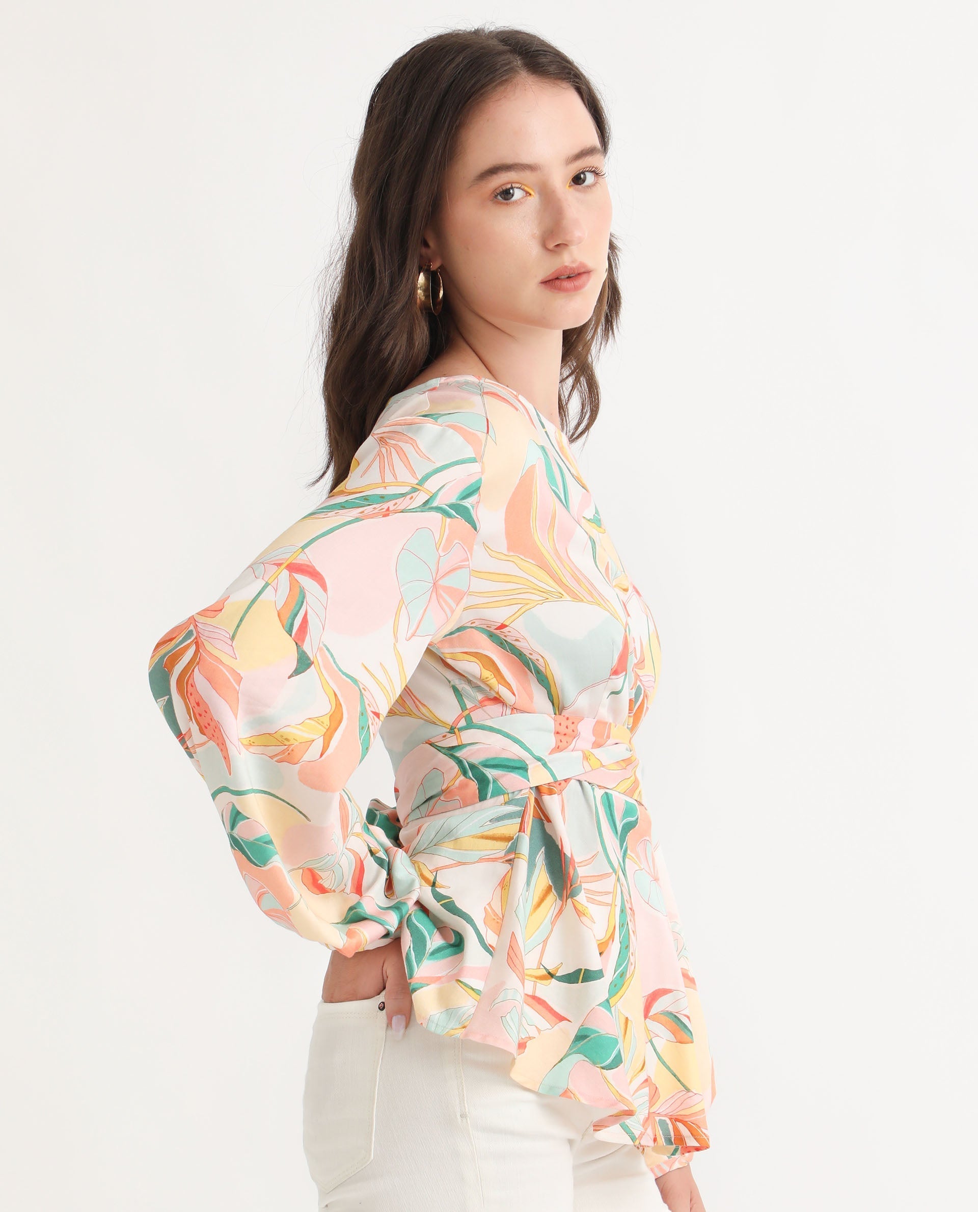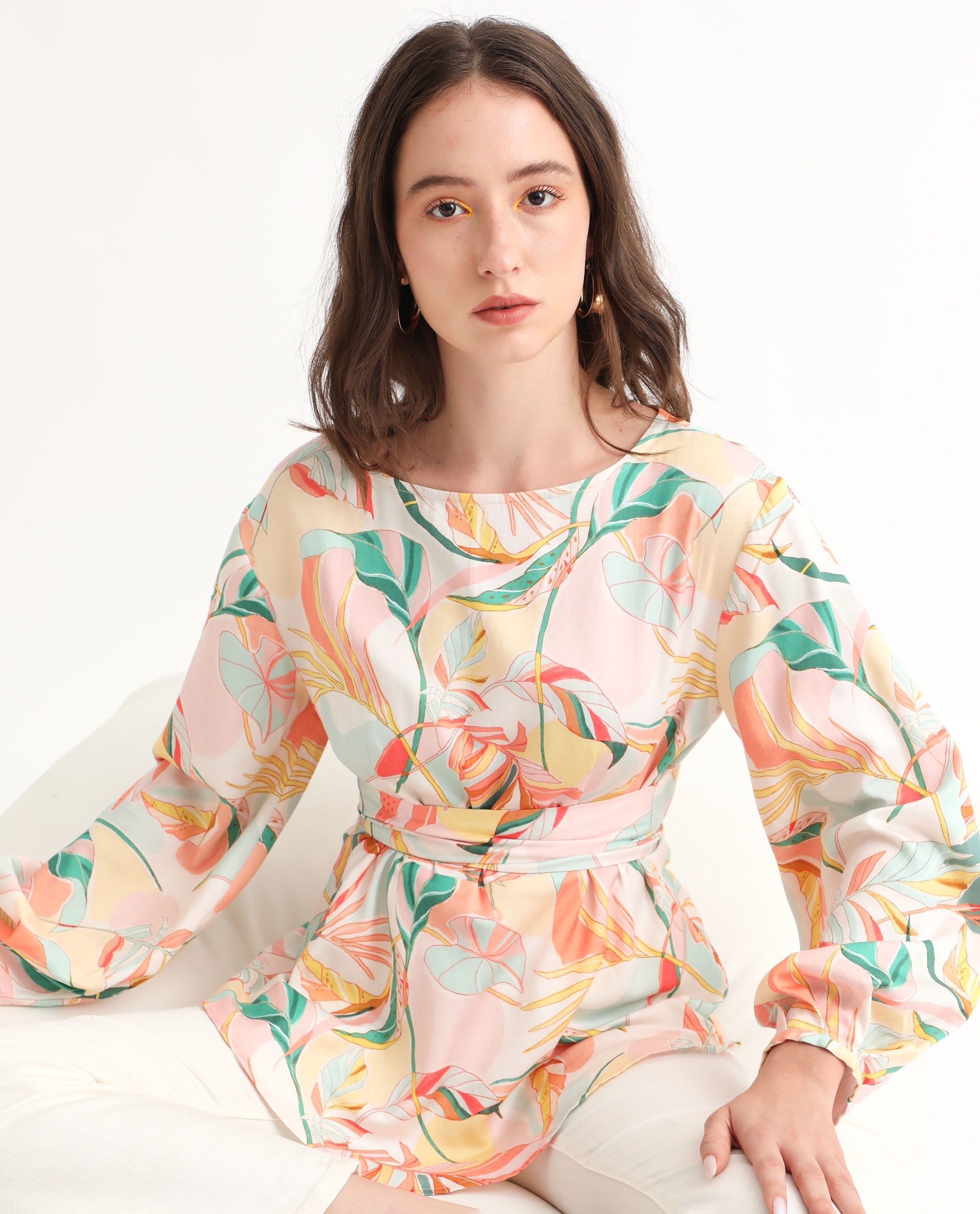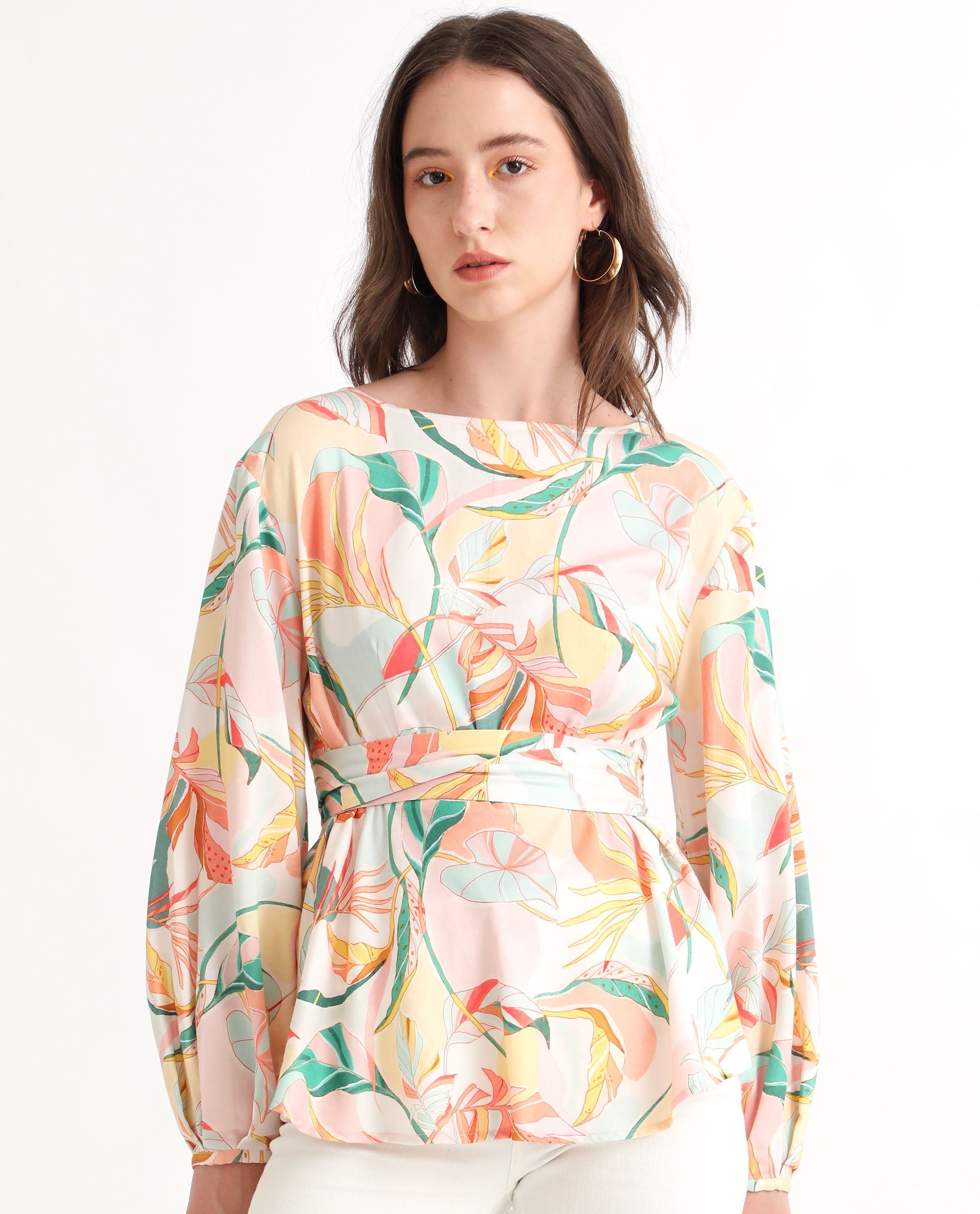 Introducing our Abstract Print Boat Neck Peplum Top, a stylish and versatile piece for your wardrobe. This top features a vibrant abstract print that adds a modern and eye-catching flair to the design. The boat neck neckline offers a stylish and flattering look, while the peplum silhouette creates a feminine and chic silhouette, accentuating your curves in all the right places. Full sleeves provide coverage and elegance, making this top suitable for both casual and dressy occasions. The tie-up detail at the waist adds definition and versatility, allowing you to adjust the fit to your preference. Designed in a regular fit, this top ensures comfort and ease of movement, making it perfect for all-day wear. Whether paired with jeans for a casual outing or dressed up with trousers for a night out, this abstract print peplum top is sure to become a staple in your wardrobe.