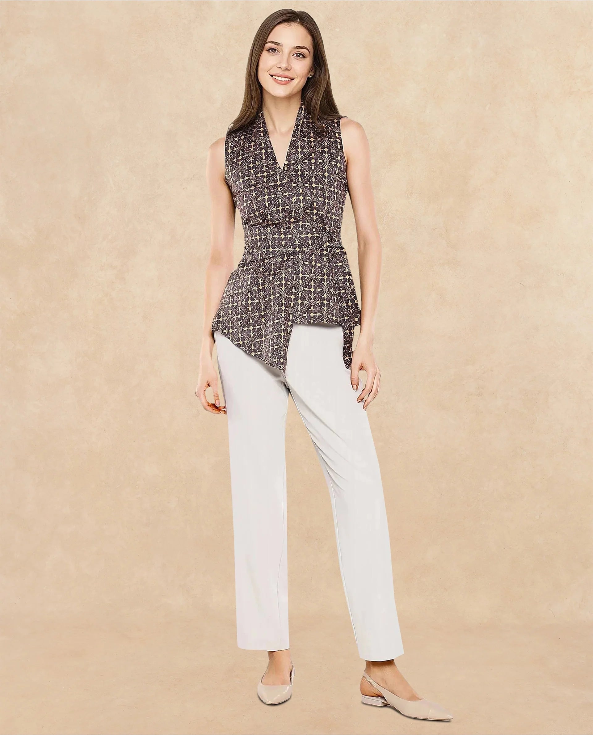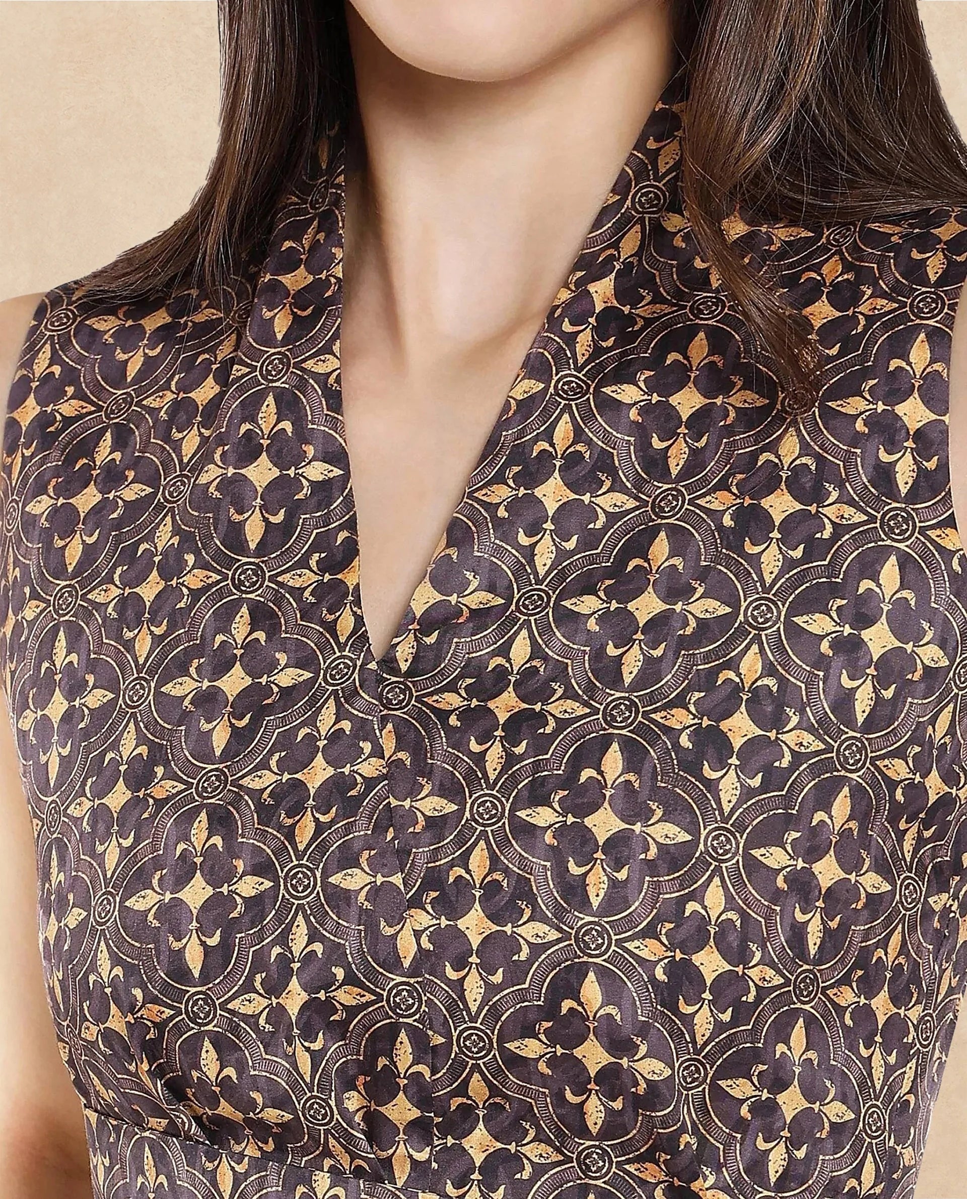 Rareism Women Smudger Multi Cotton Satin Fabric Sleeveless Surplice Neck Zipper Closure Geometric Print Top