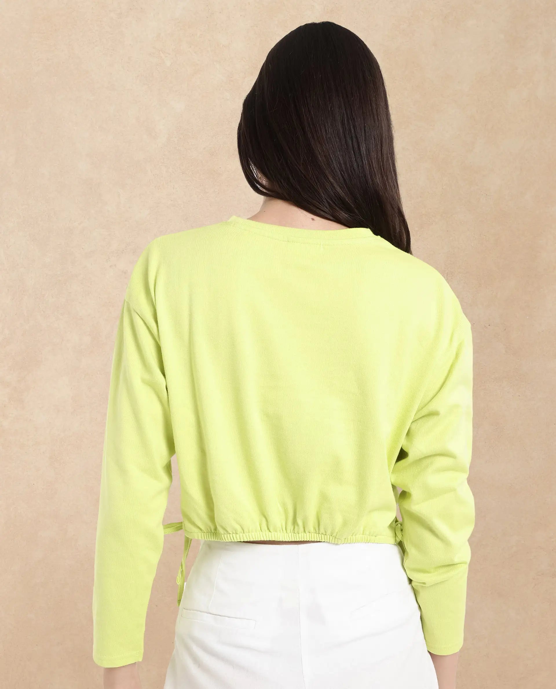 Rareism Women Thistle Flouroscent Green Cotton Fabric Full Sleeve Crew Neck Solid Regular Fit Top