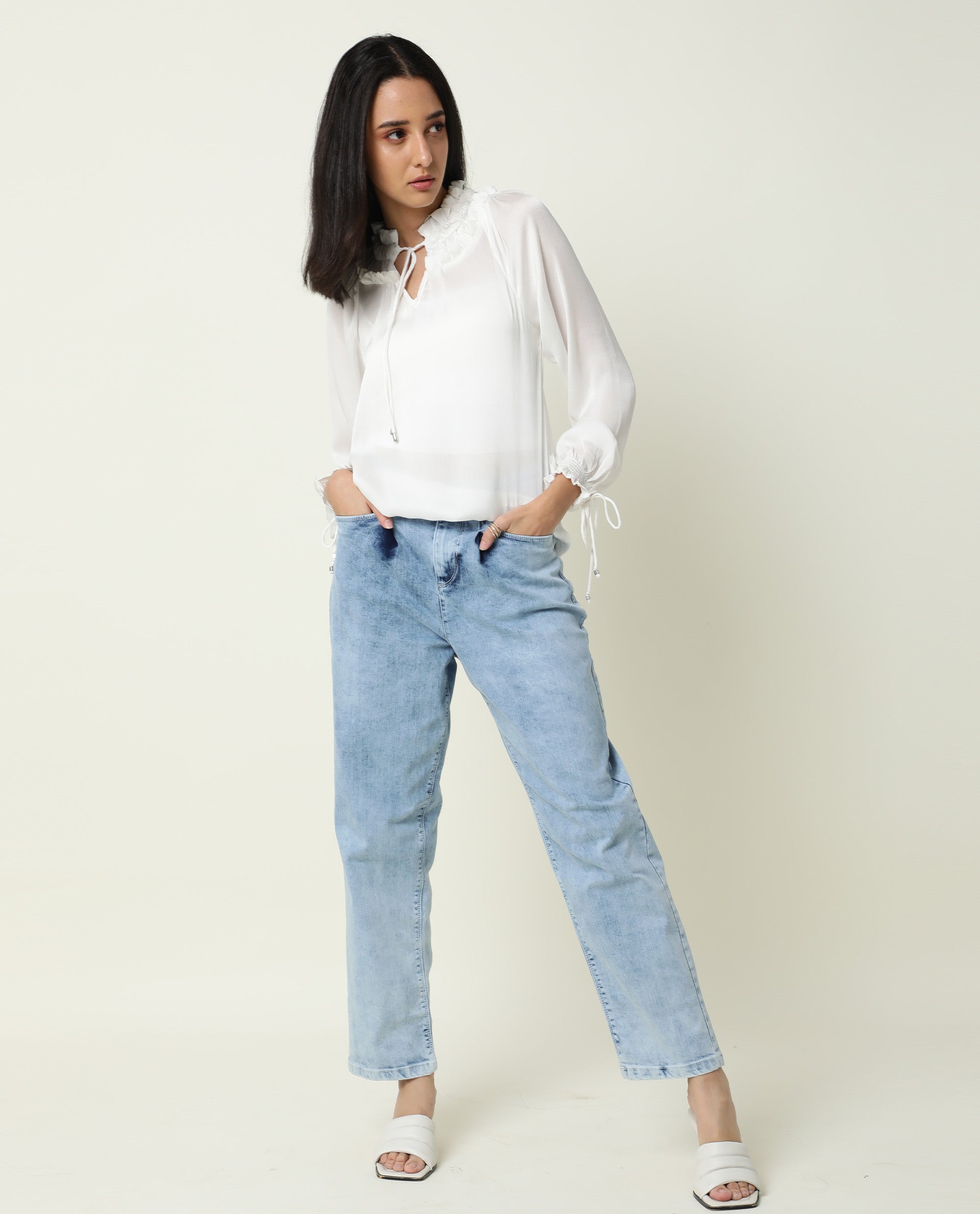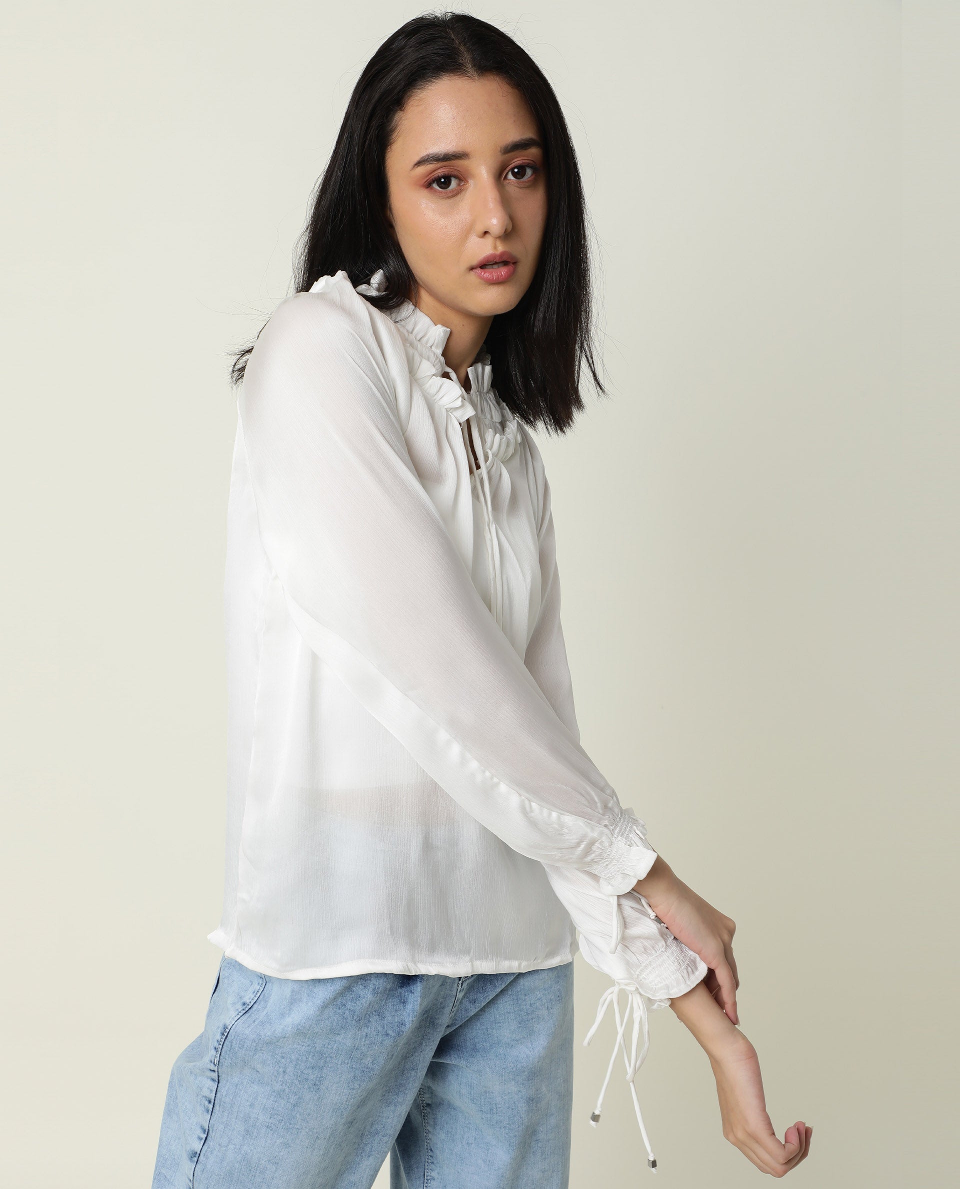 Rareism Womens Tremoe White Dress Polyester Fabric Normal Fit Full Sleeve V Neck
