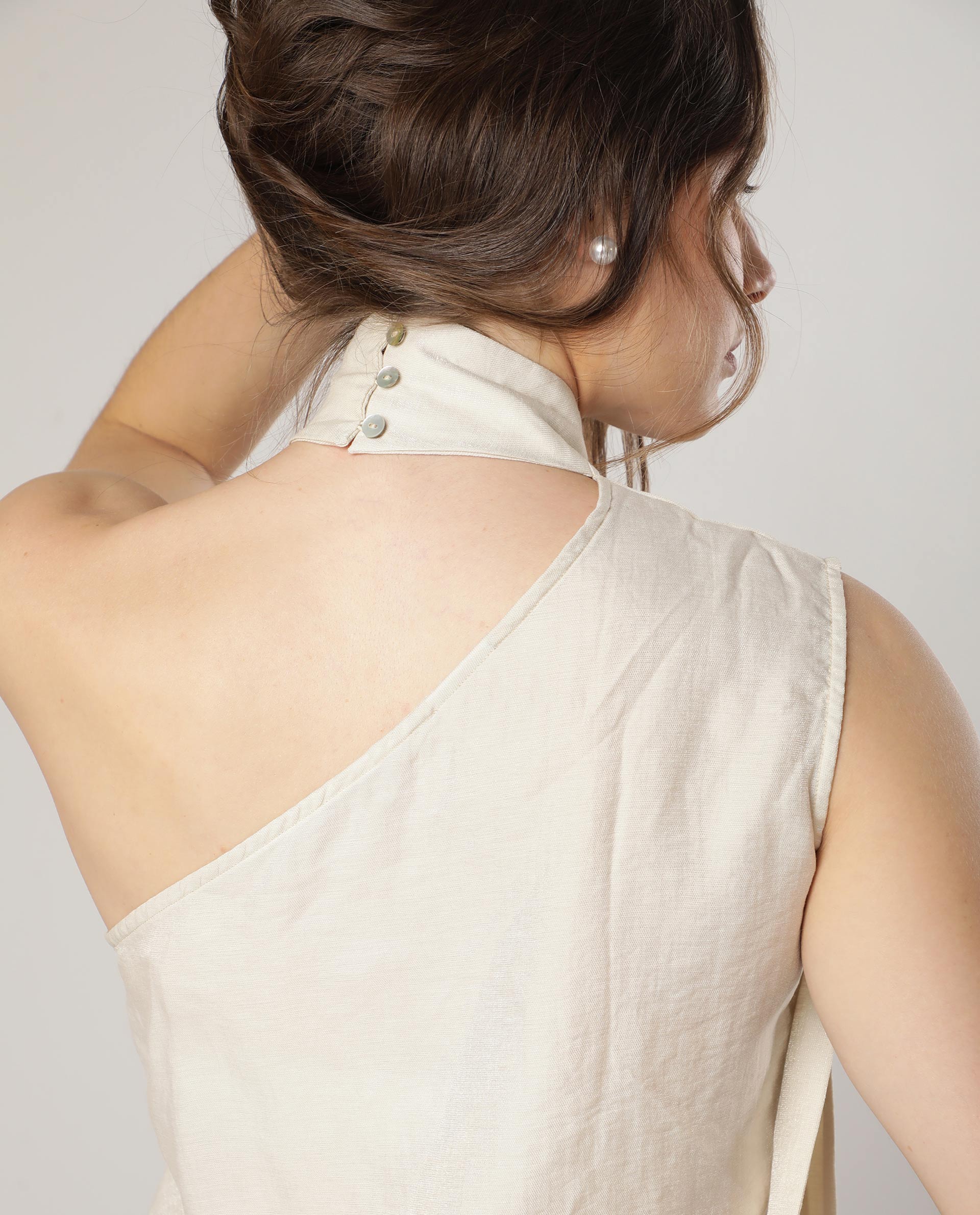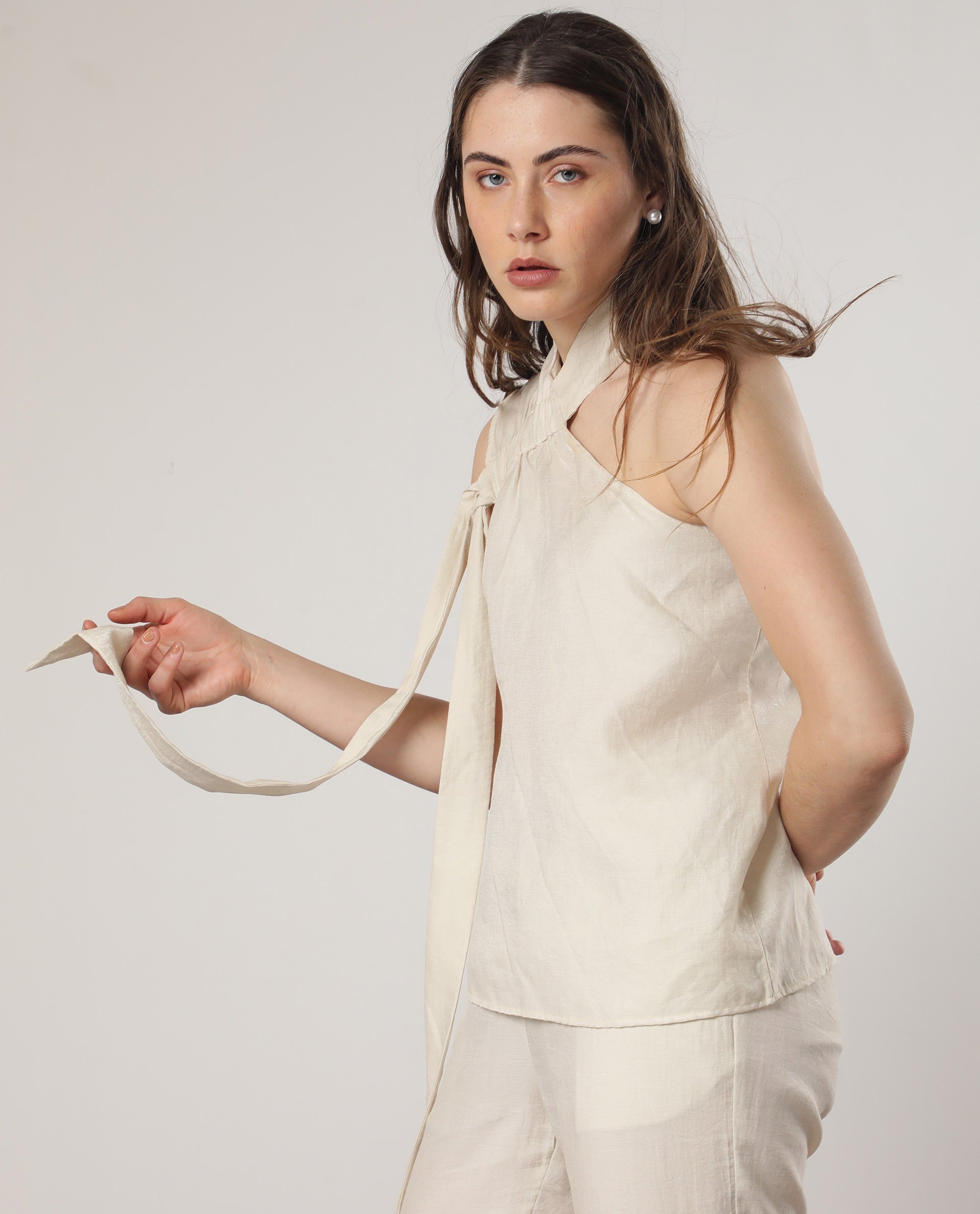 Rareism Women Urale Beige Rayon Nylon Fabric Slim Fit  Halter Neck Off Shoulder Solid Top