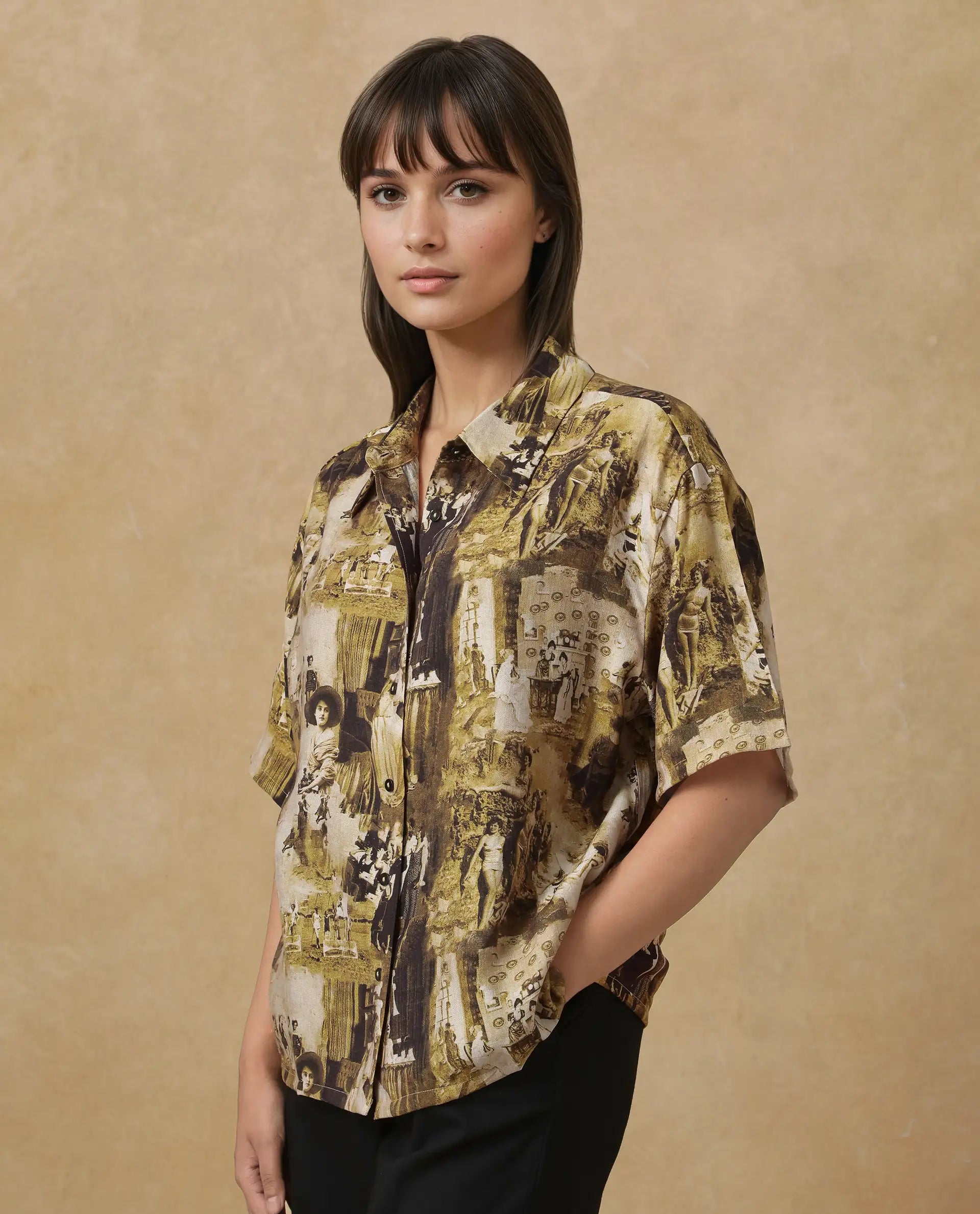 VINTAGE PRINTED HALF SLEEVE BOXY SHIRT