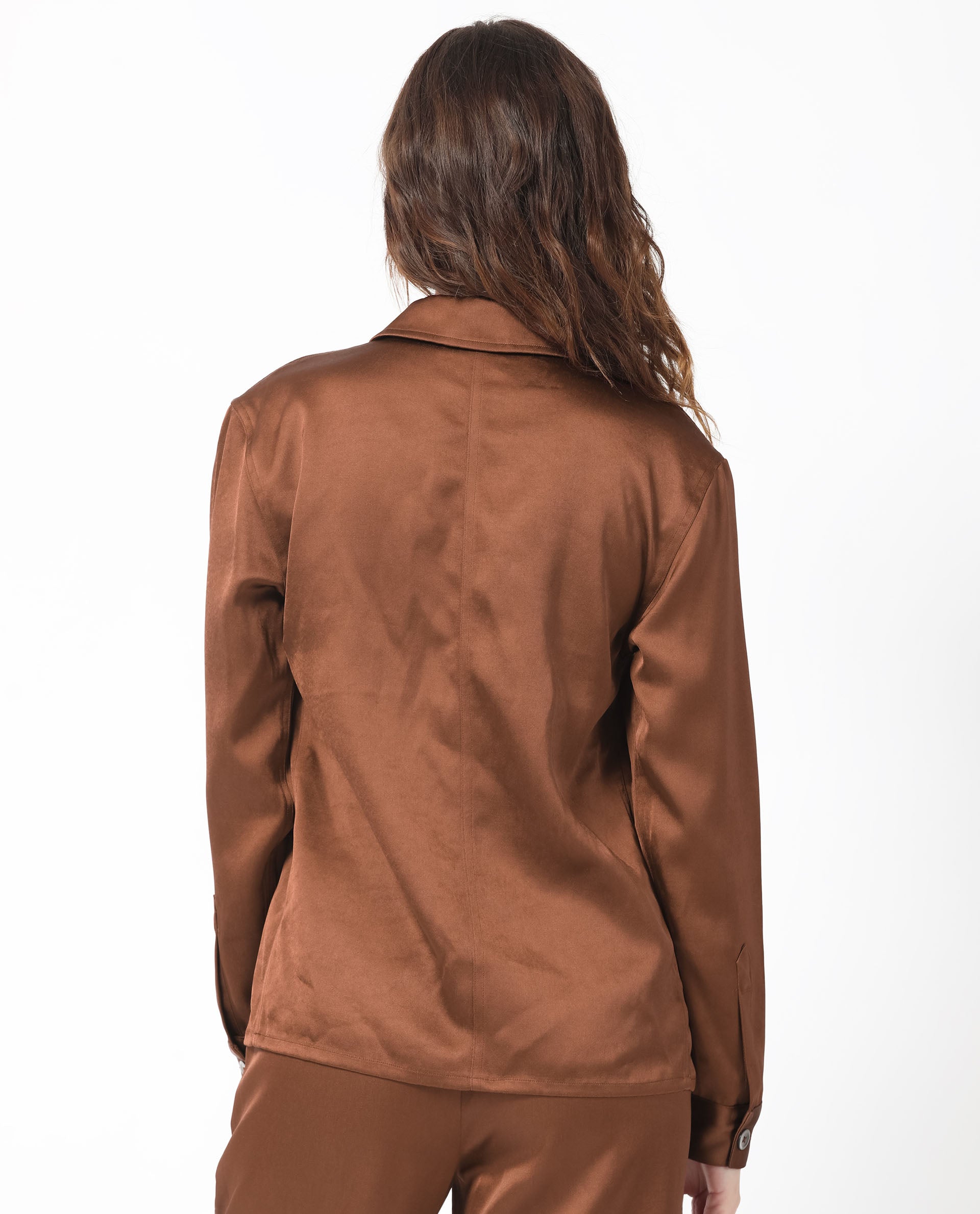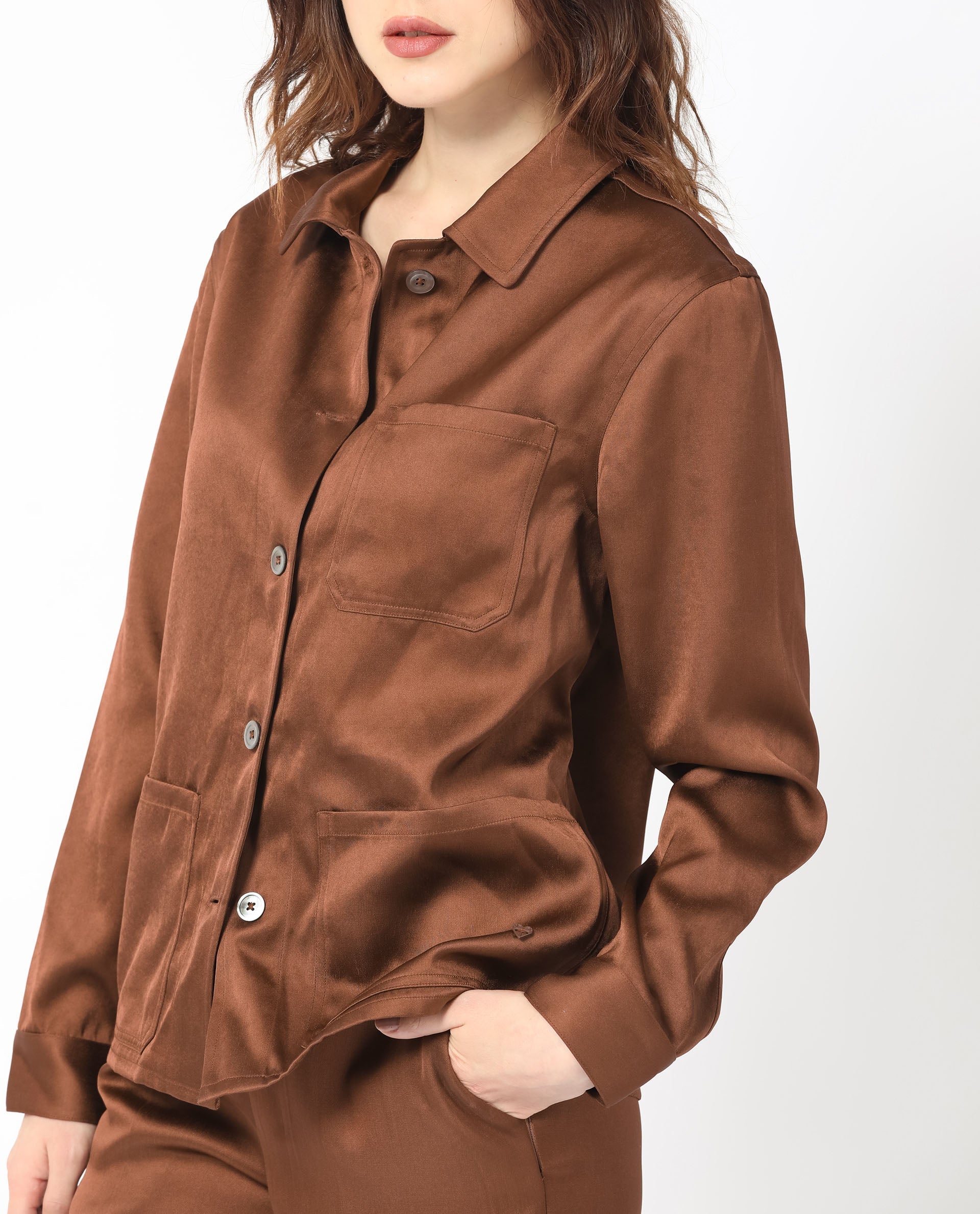 Rareism Women Elika Brown Polyester Fabric Full Sleeves Button Closure Shirt Collar Regular Fit Plain Jacket