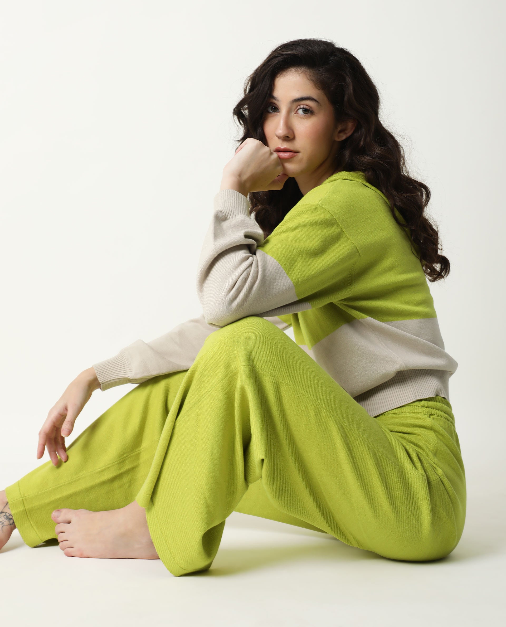 Rareism Women Finnet Track Flouroscent Green Cotton Fabric Relaxed Fit Color Blocked Mid Rise Regular Track Pant