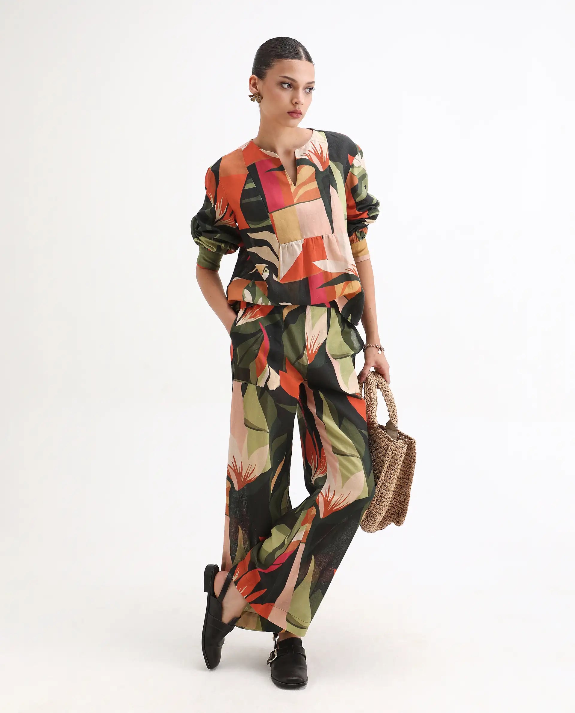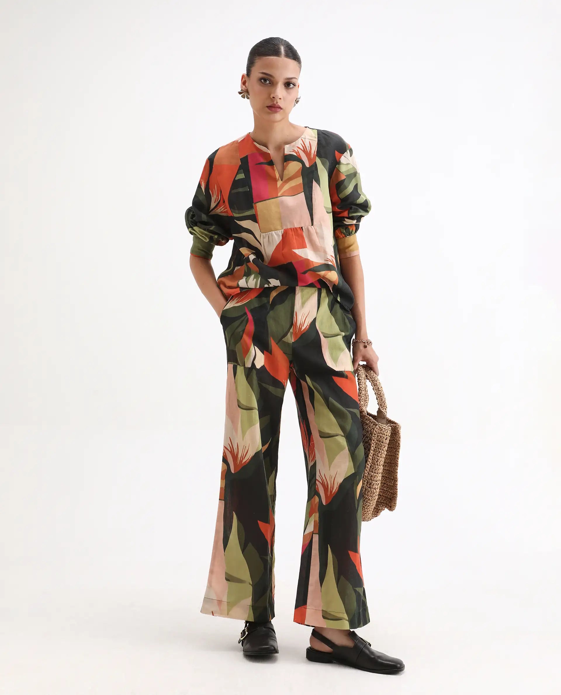 MULTI-COLOR ABSTRACT PRINT TROUSER