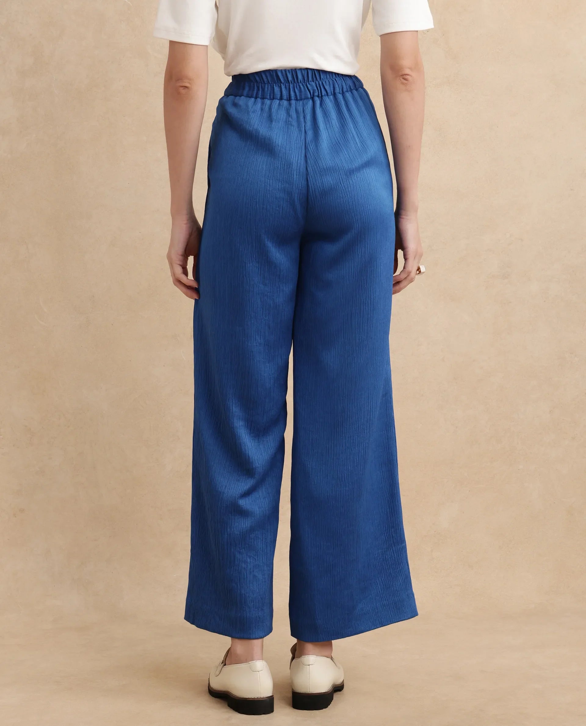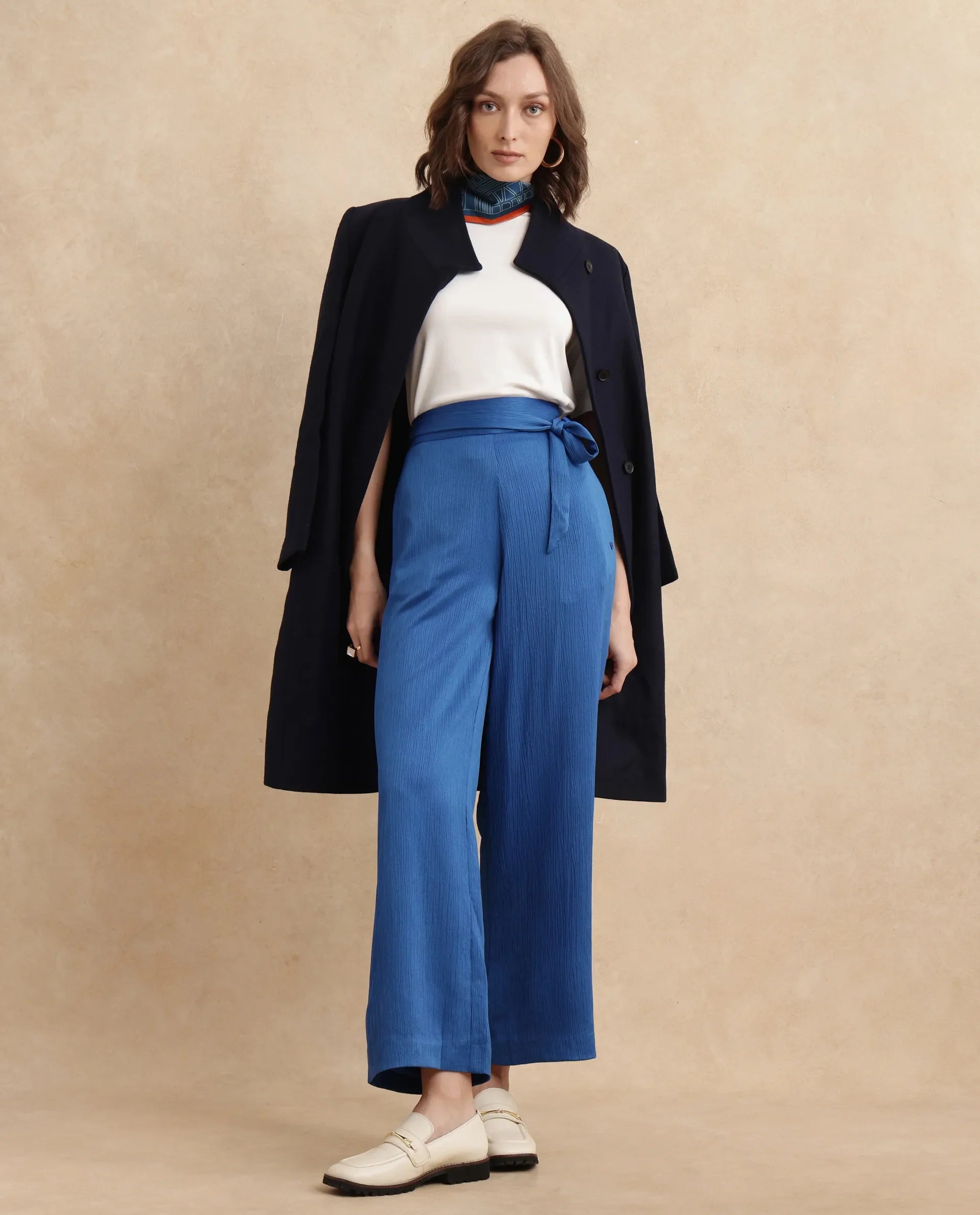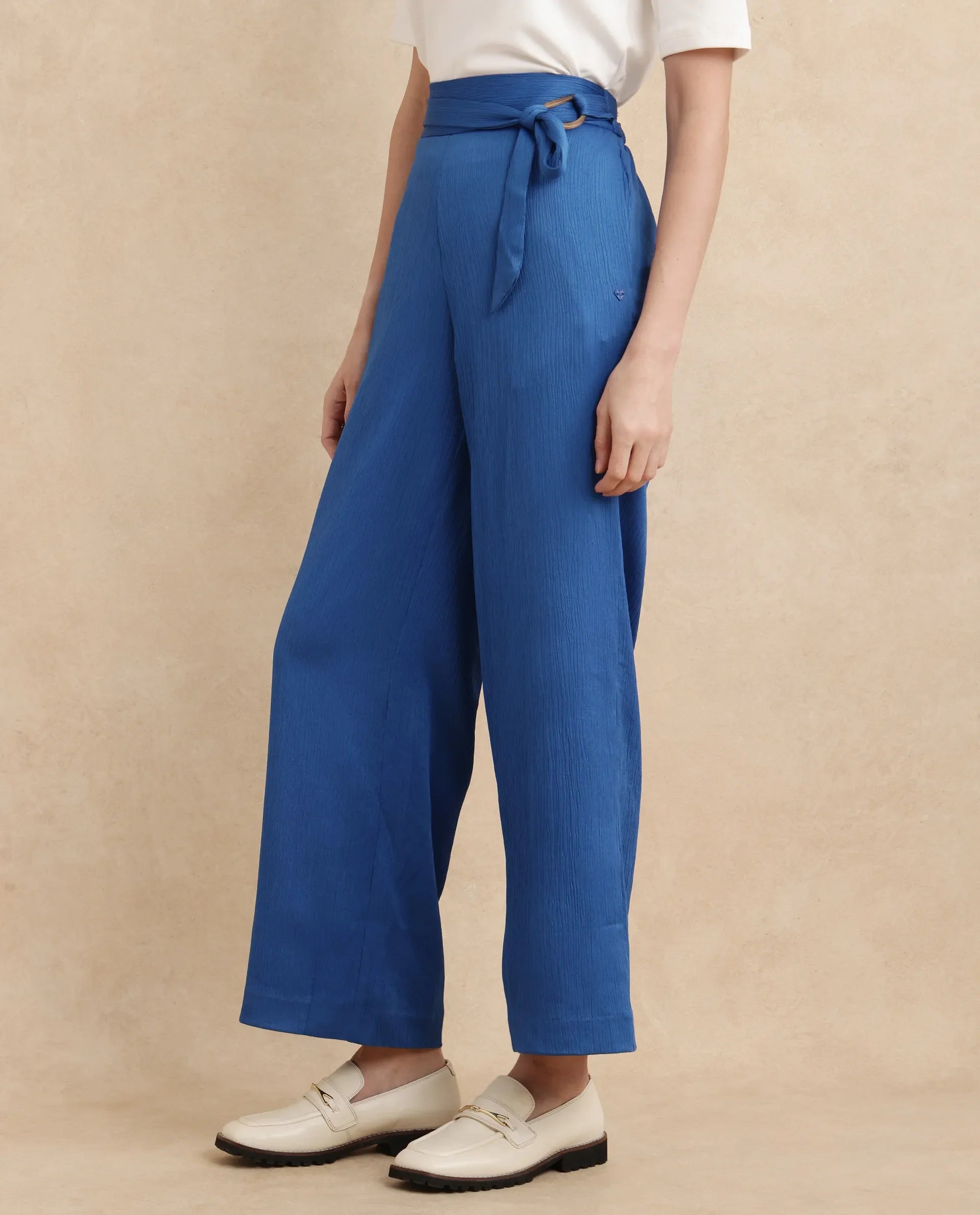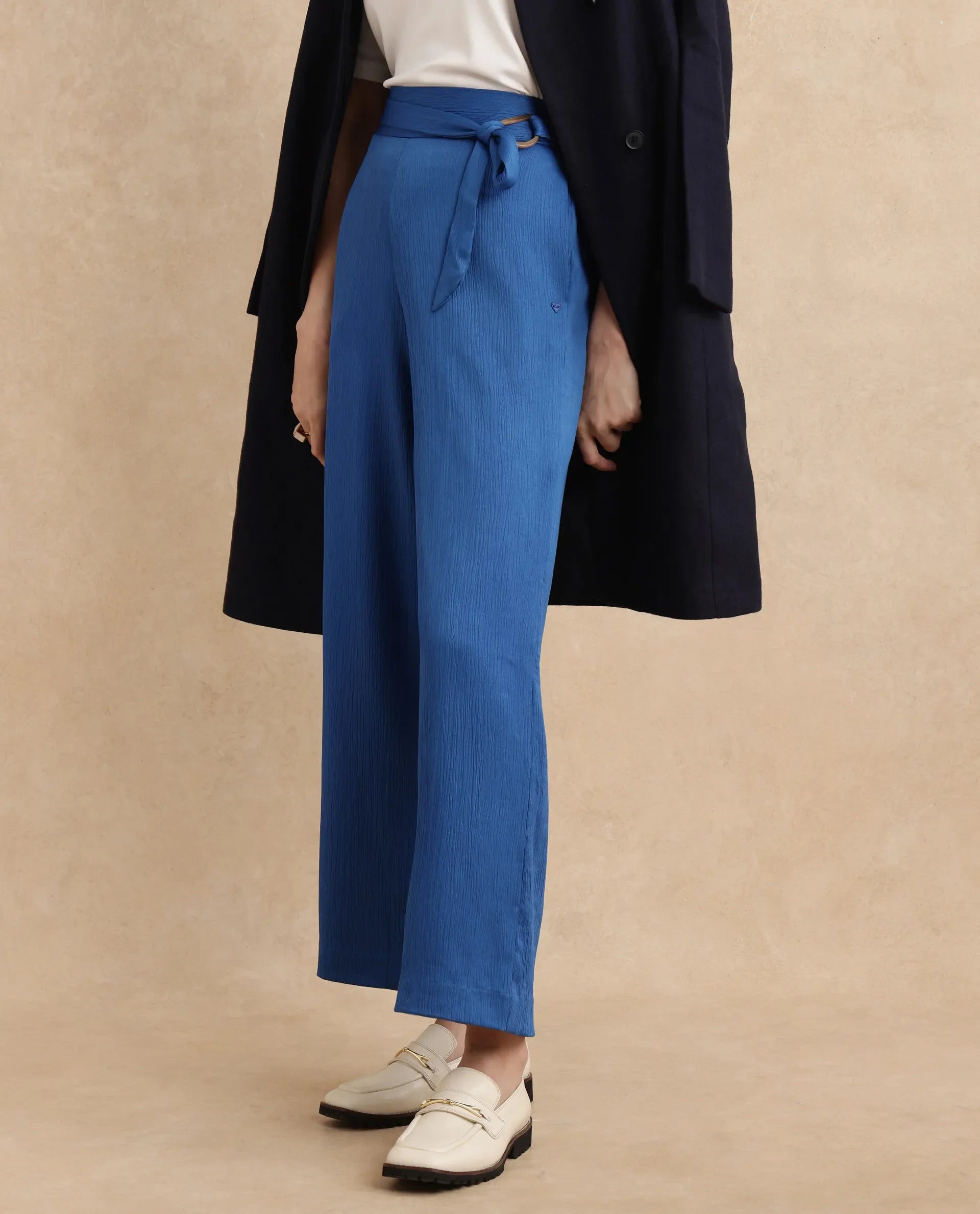 Rareism Women Antela Blue Wide Fit Ankle Length Plain Trouser
