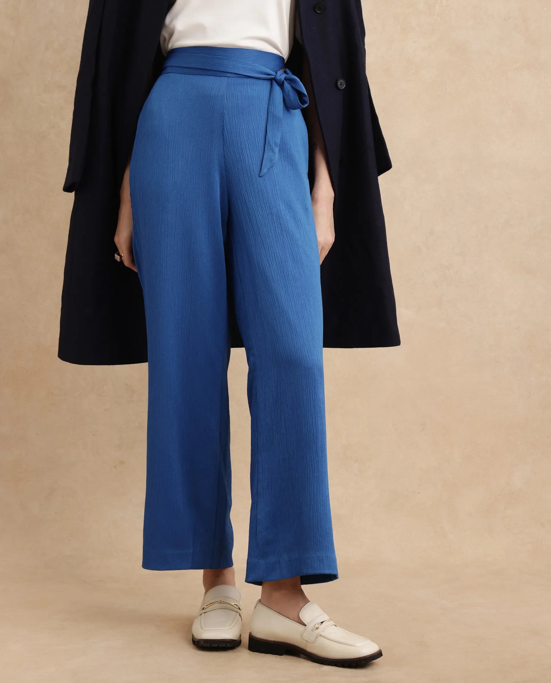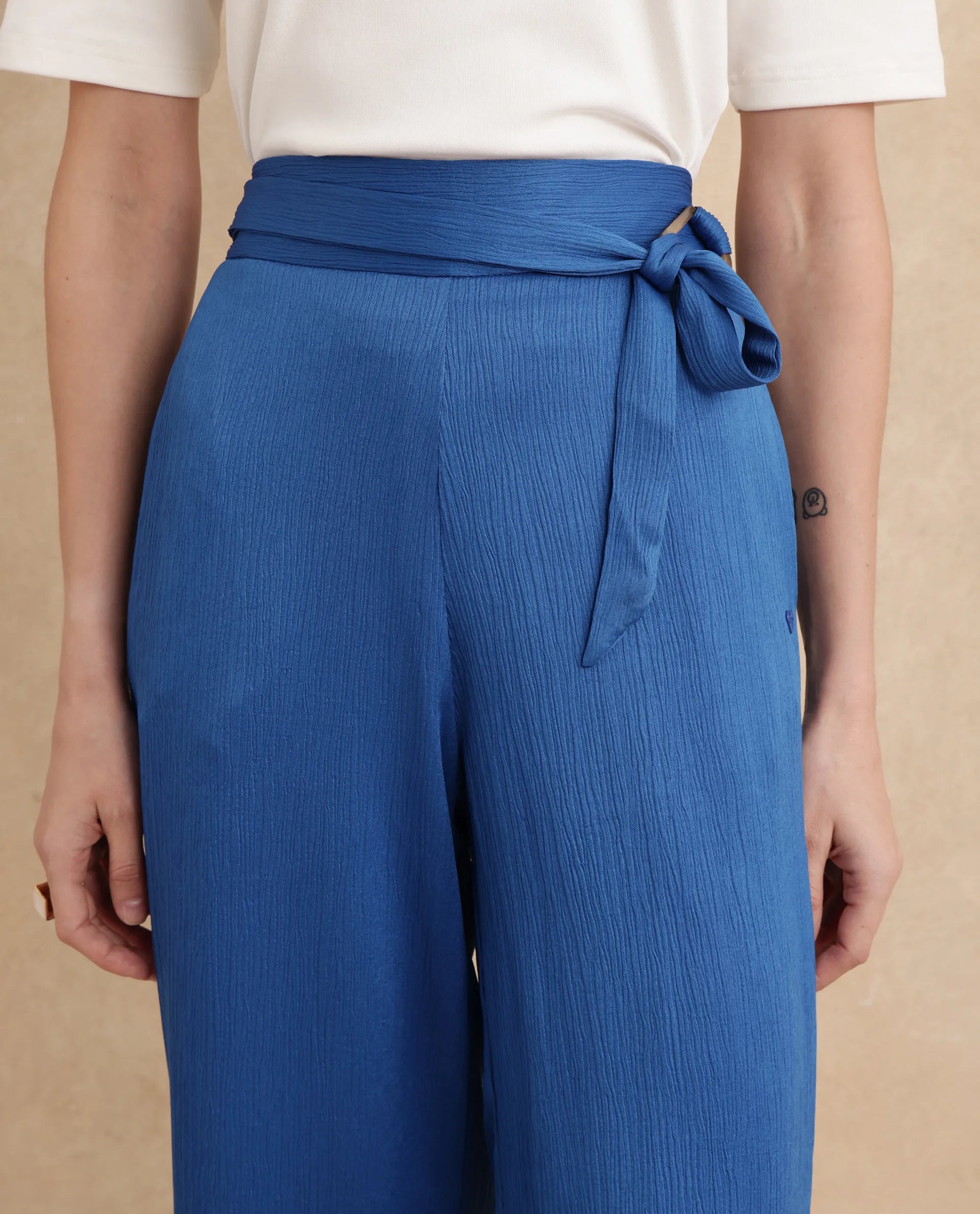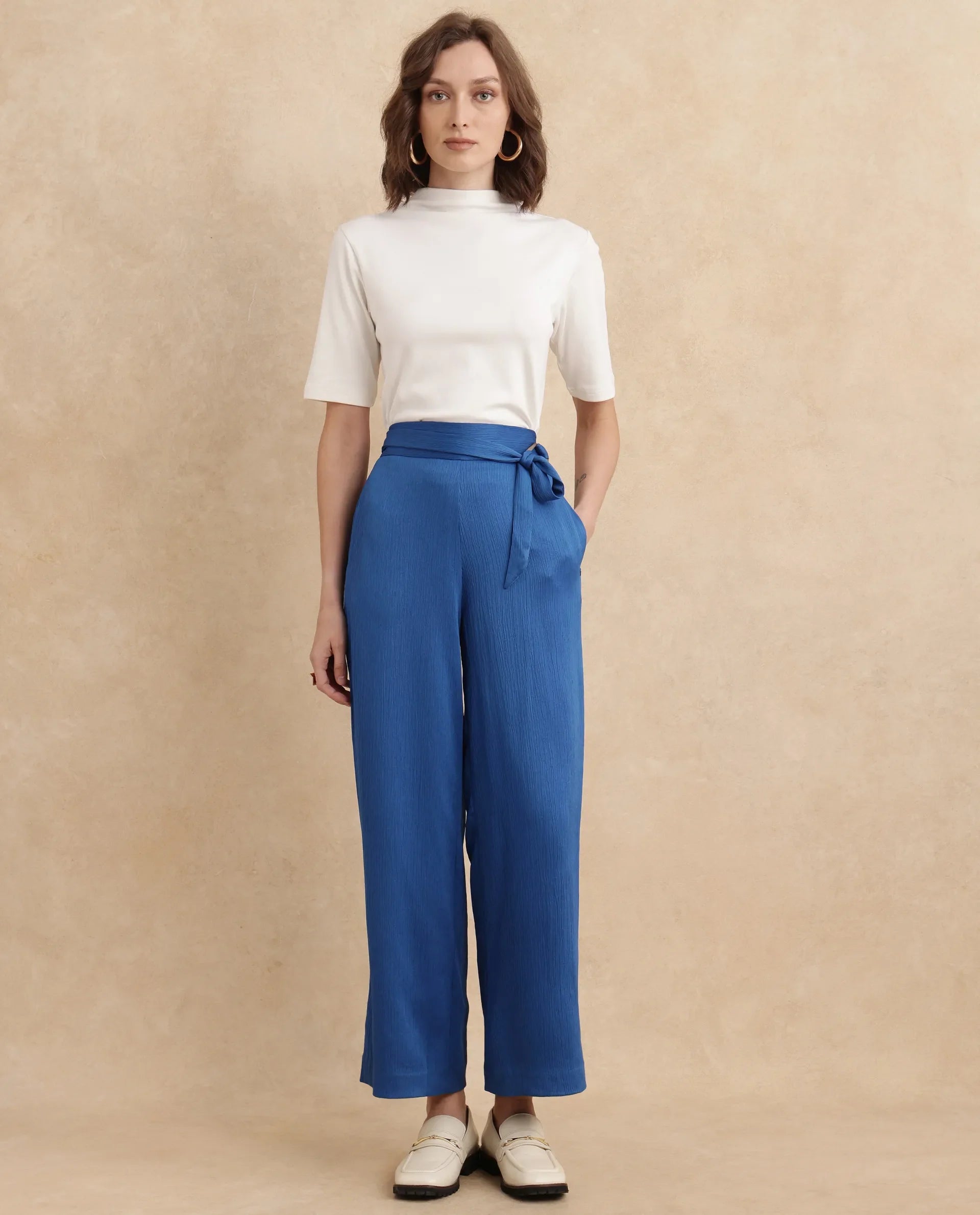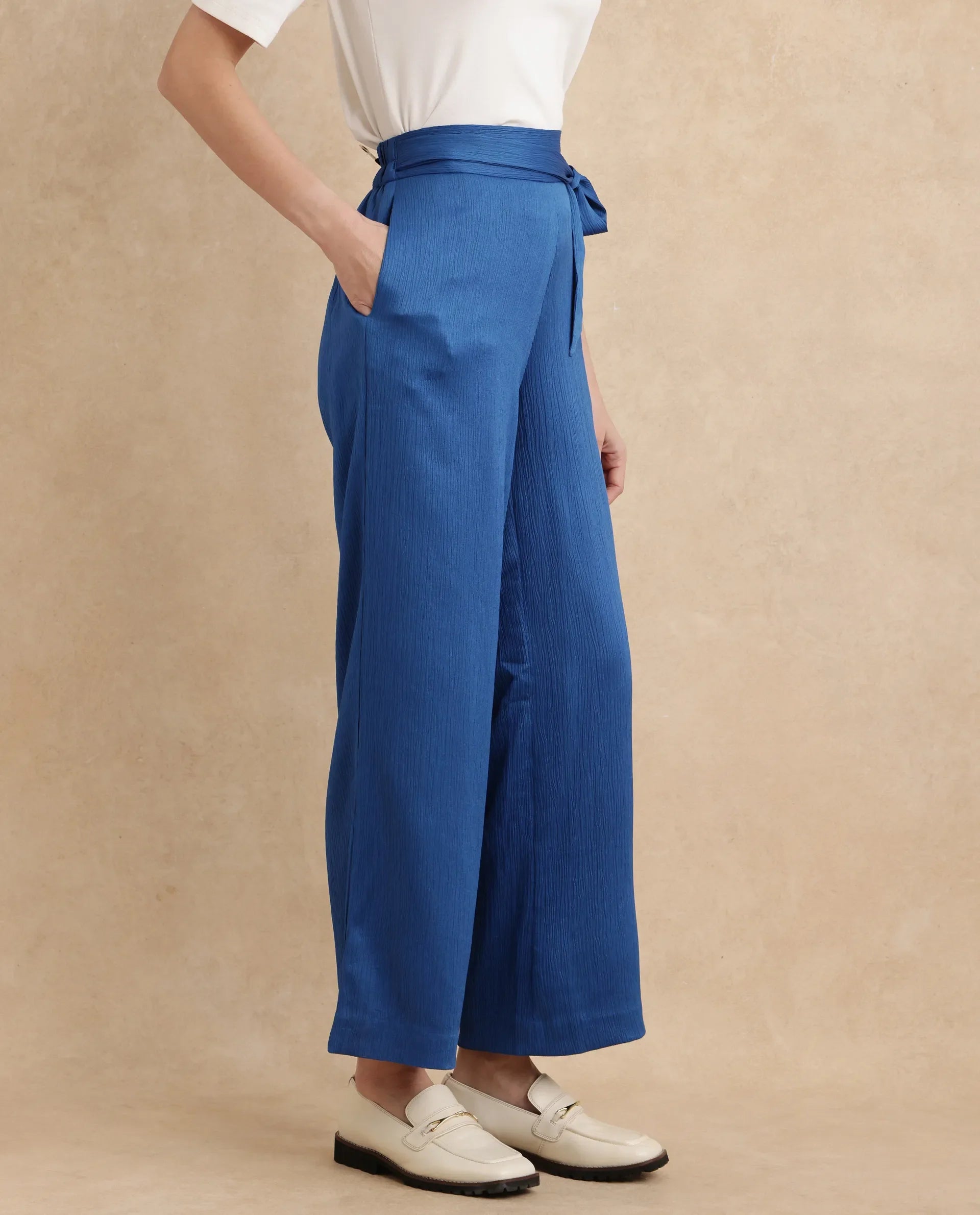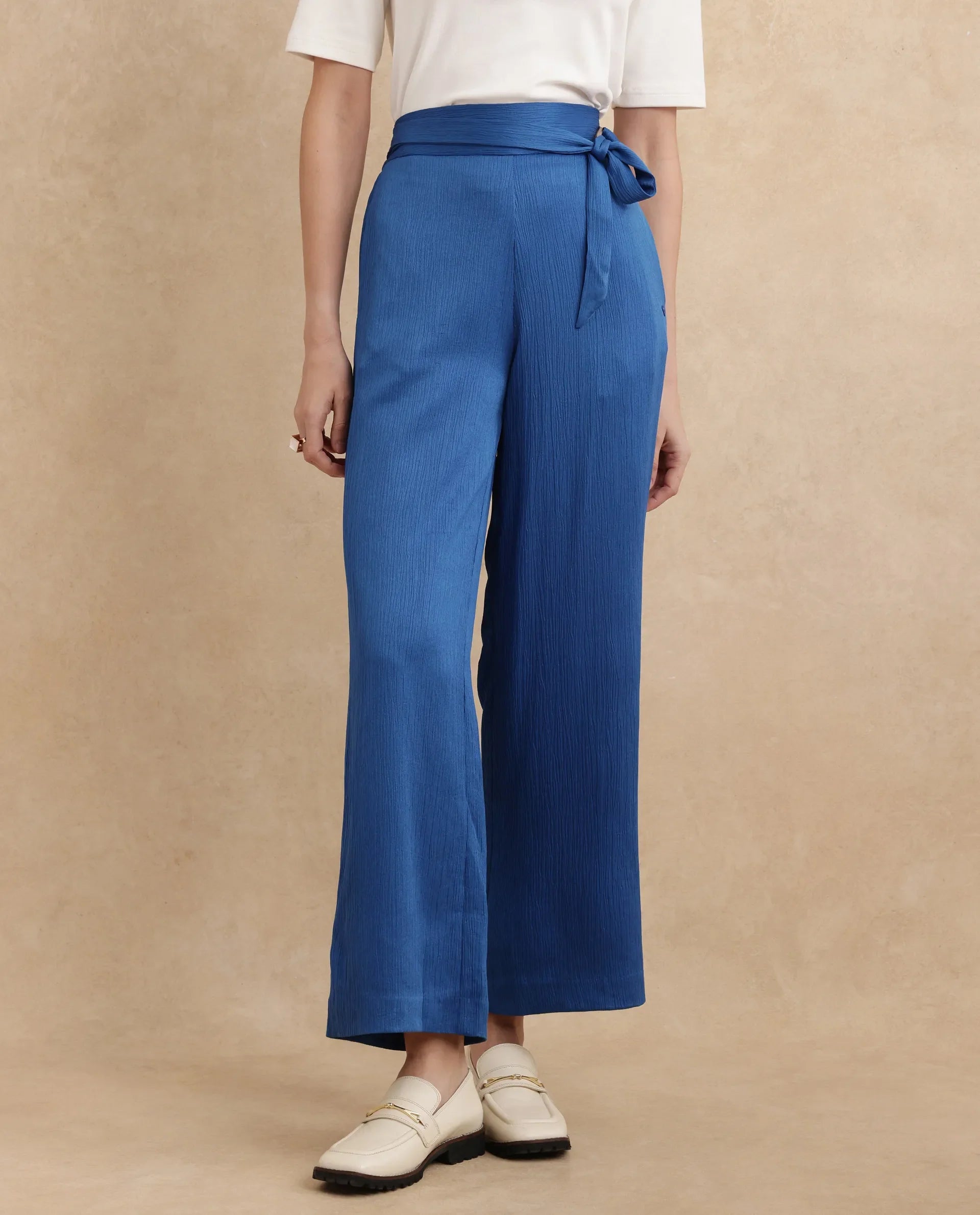Rareism Women Antela Blue Wide Fit Ankle Length Plain Trouser