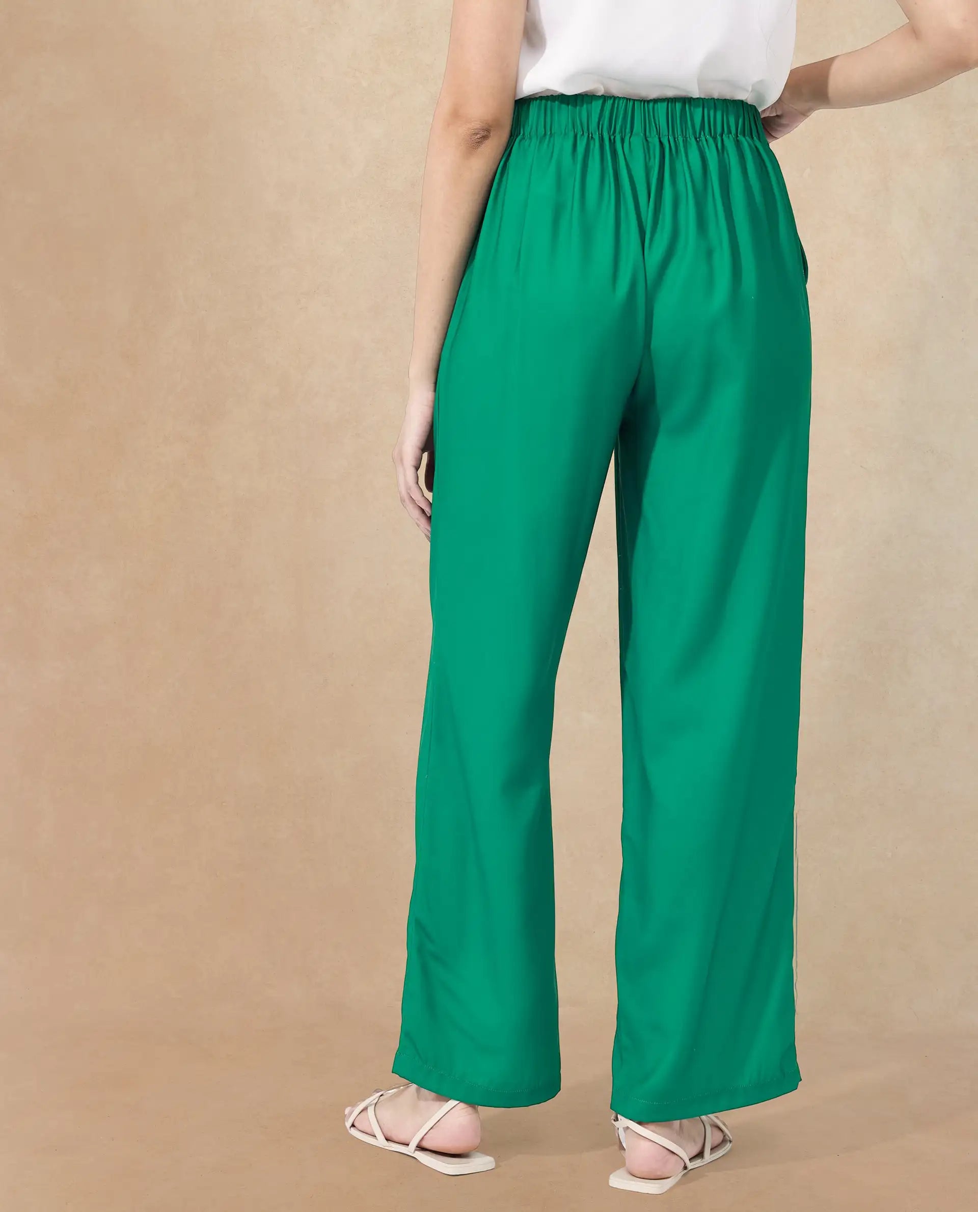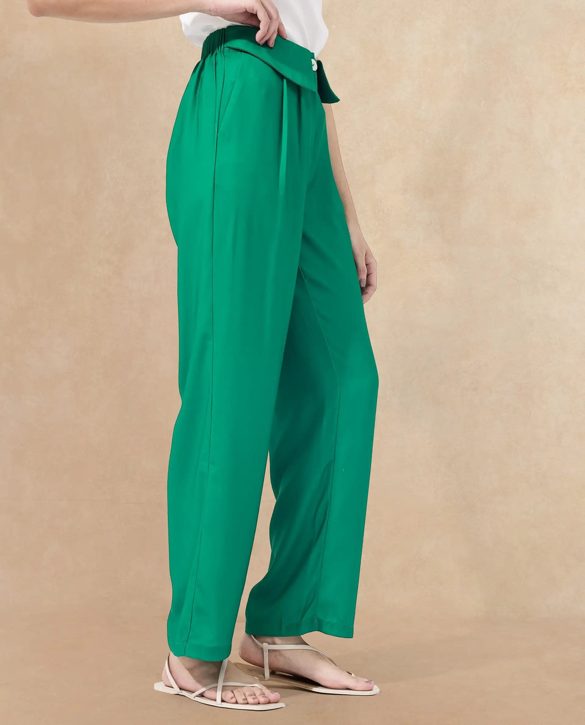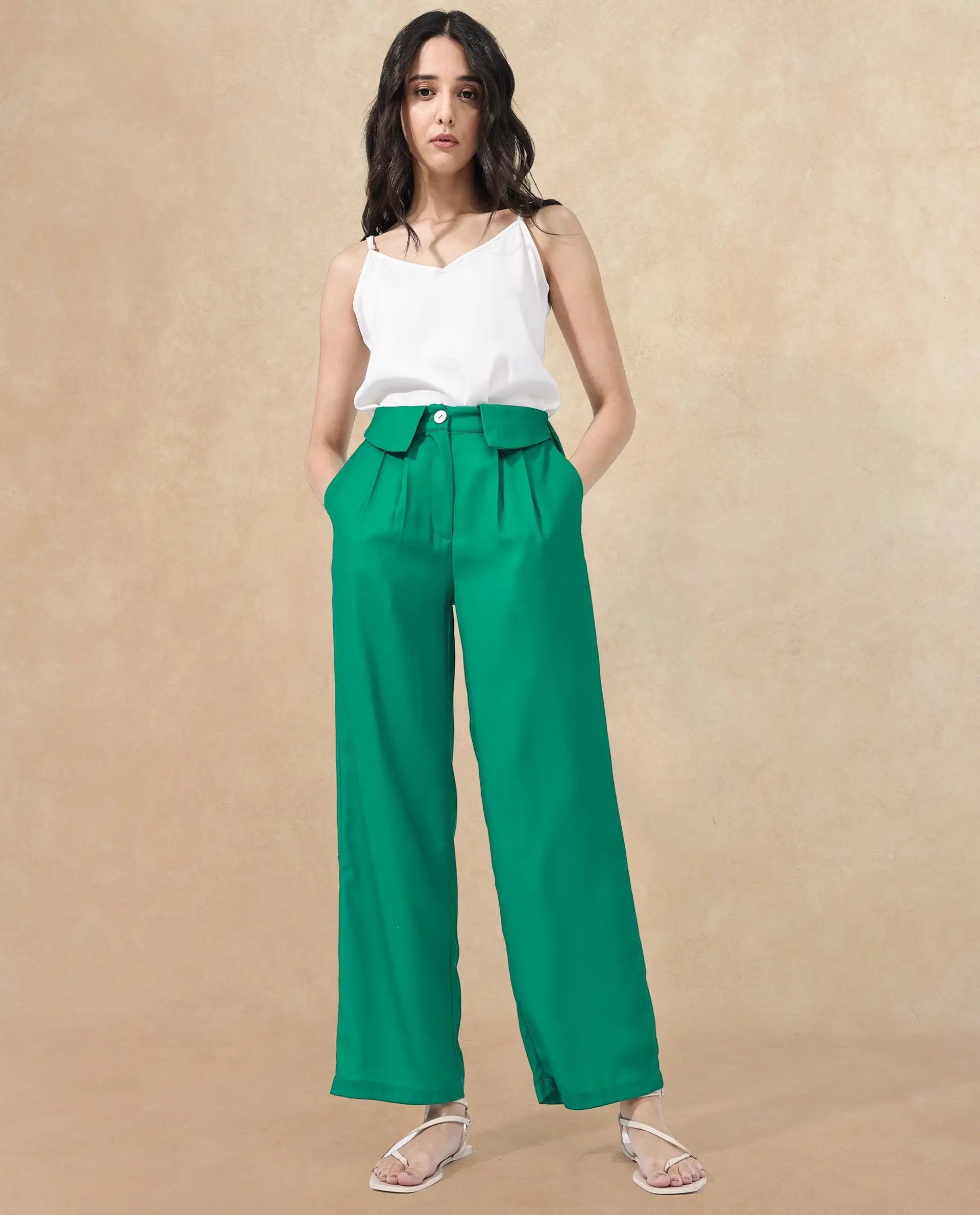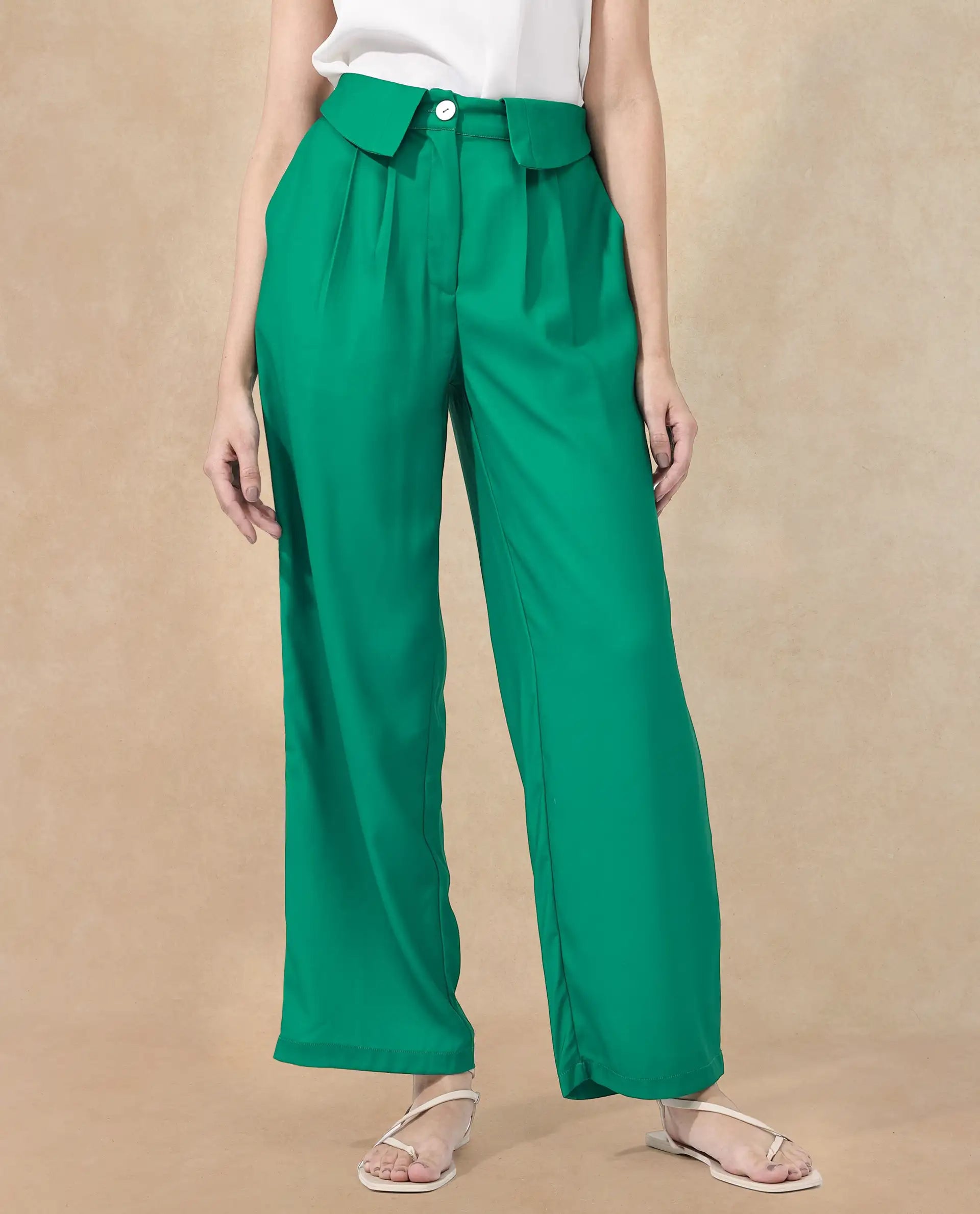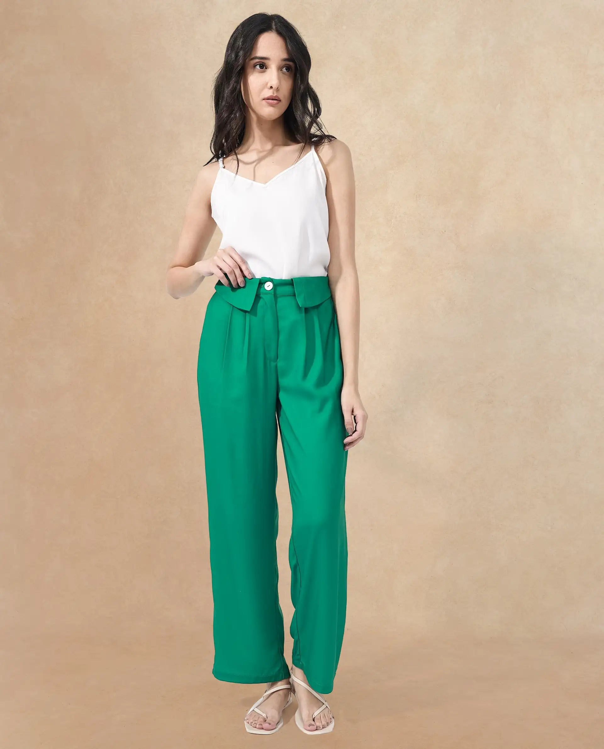 Rareism Women Buell Green Polyester Fabric Regular Length Trouser