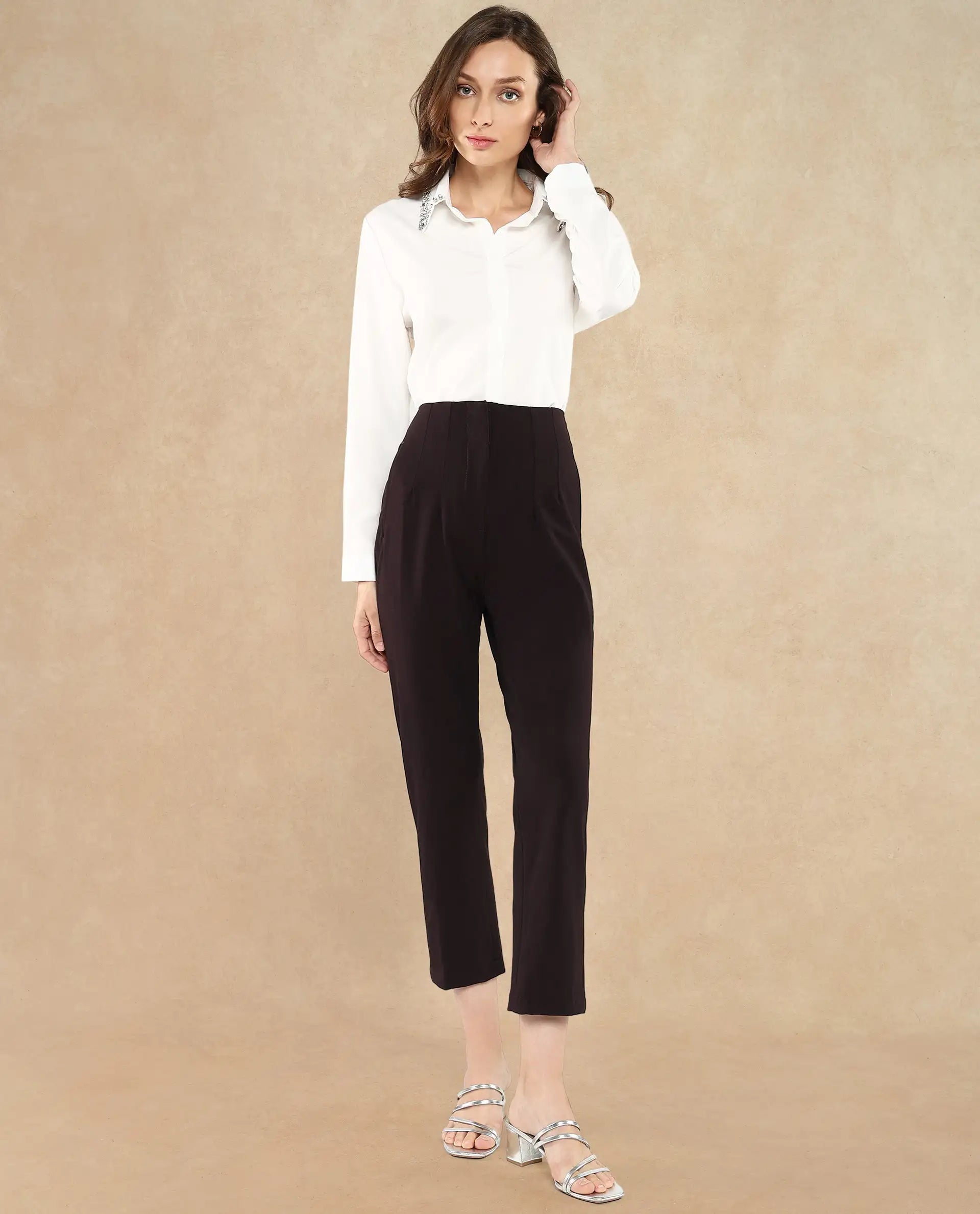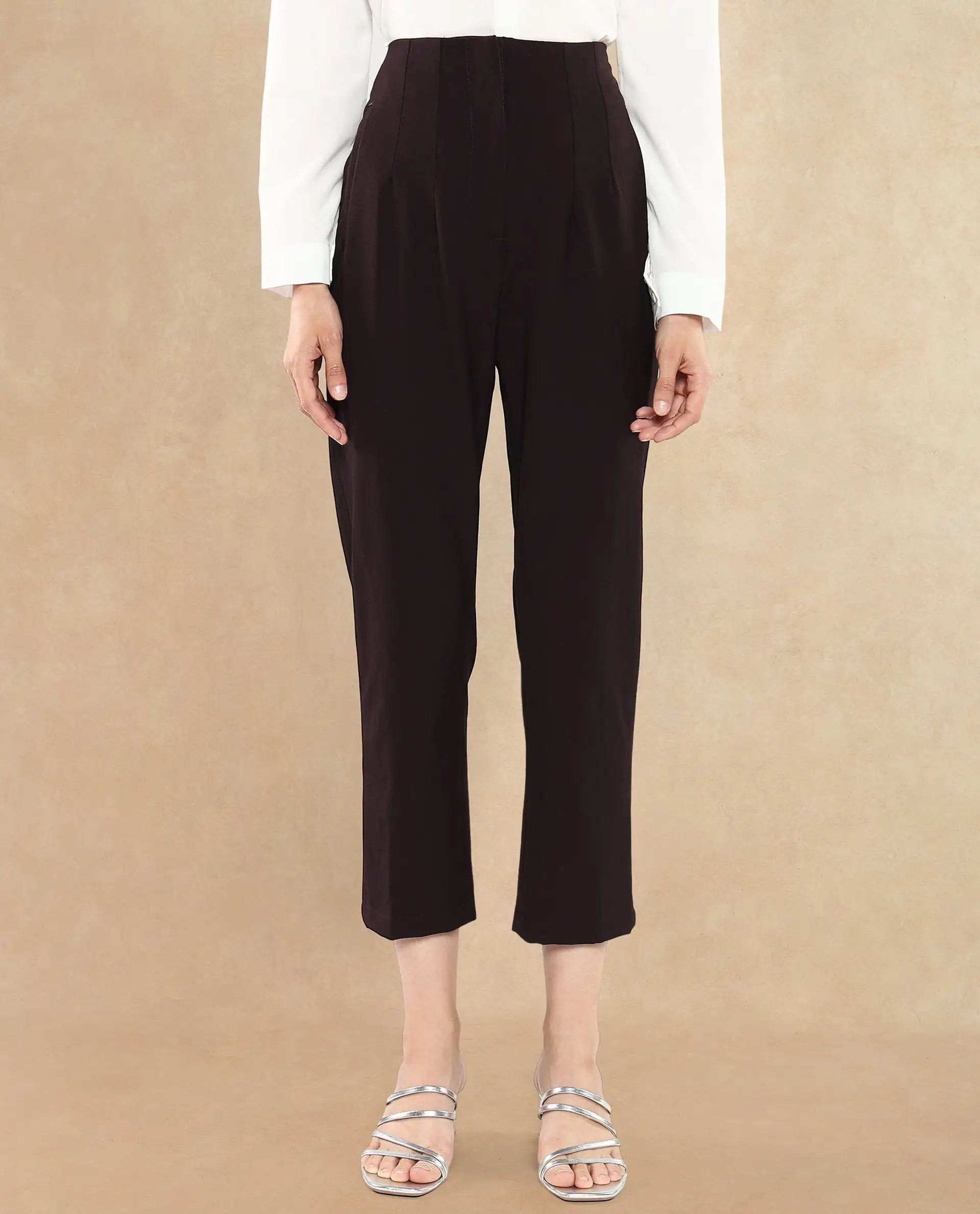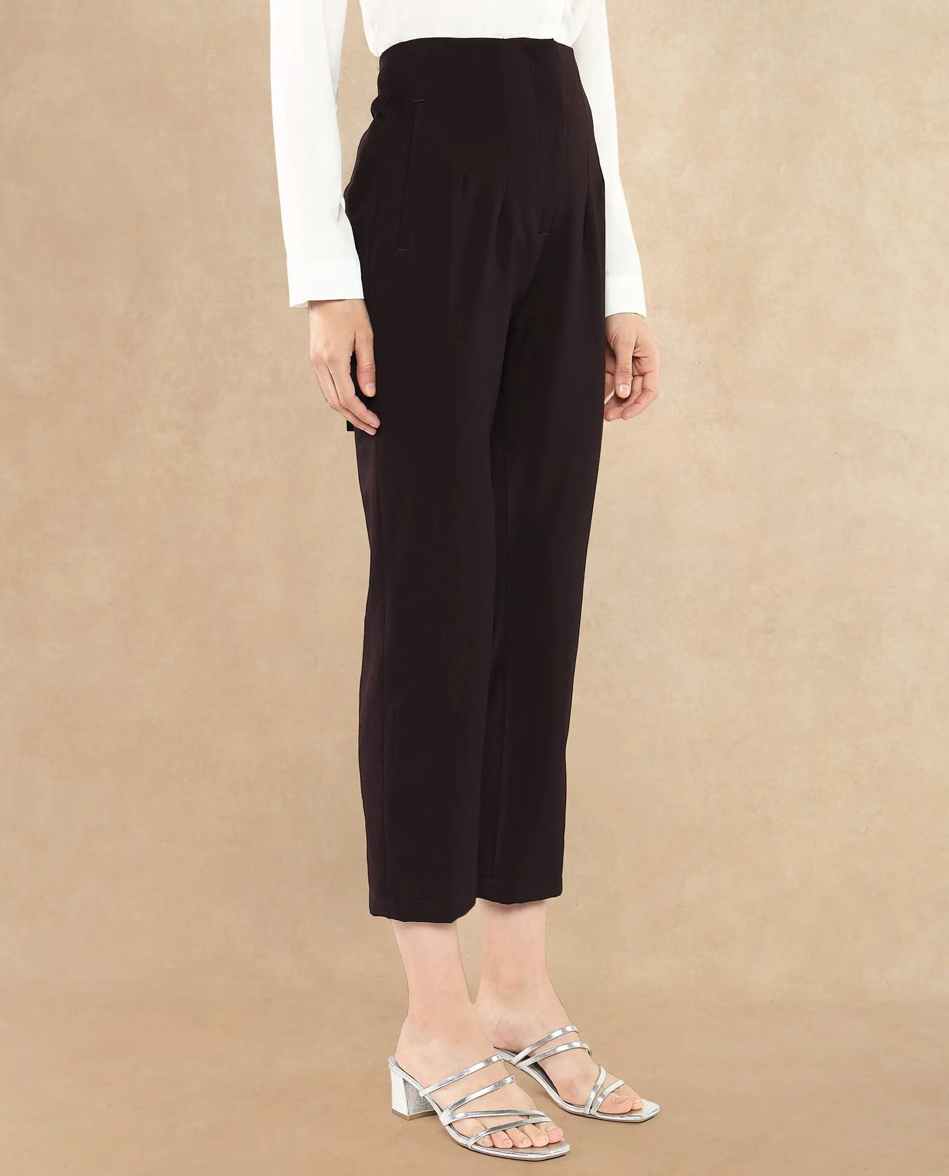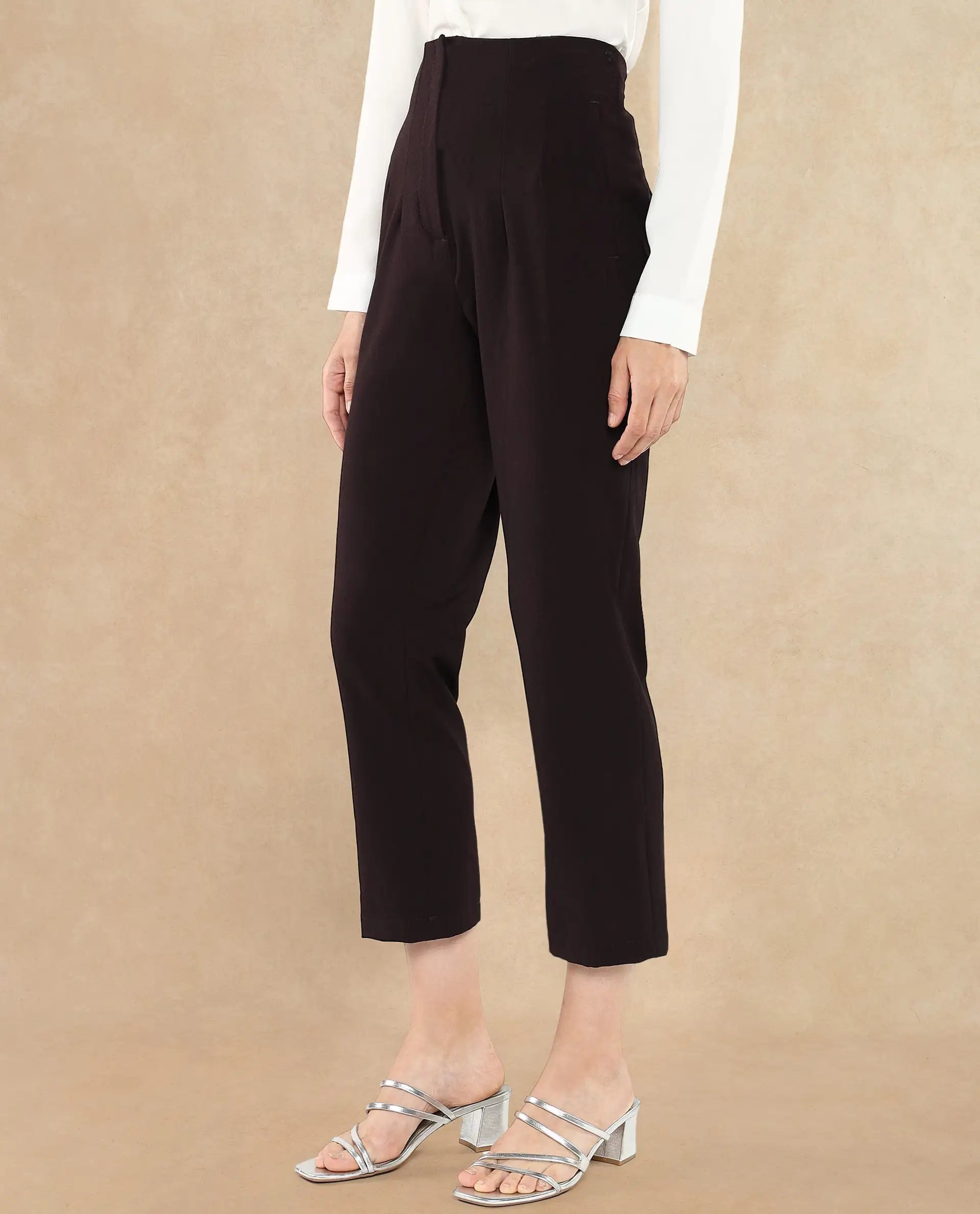 Discover the perfect blend of style and comfort with our maroon tapered fit ankle-length trousers for women. These formal woven trousers feature a sleek zipper closure, offering a sophisticated look for any occasion. Crafted for a flattering silhouette, the plain design ensures versatility, making it a staple in your wardrobe. Ideal for office wear or formal events, these trousers provide a polished appearance while maintaining comfort. Elevate your fashion game with these must-have trousers, designed to complement any outfit effortlessly. Shop now to experience the elegance and functionality of our premium women's trousers collection.