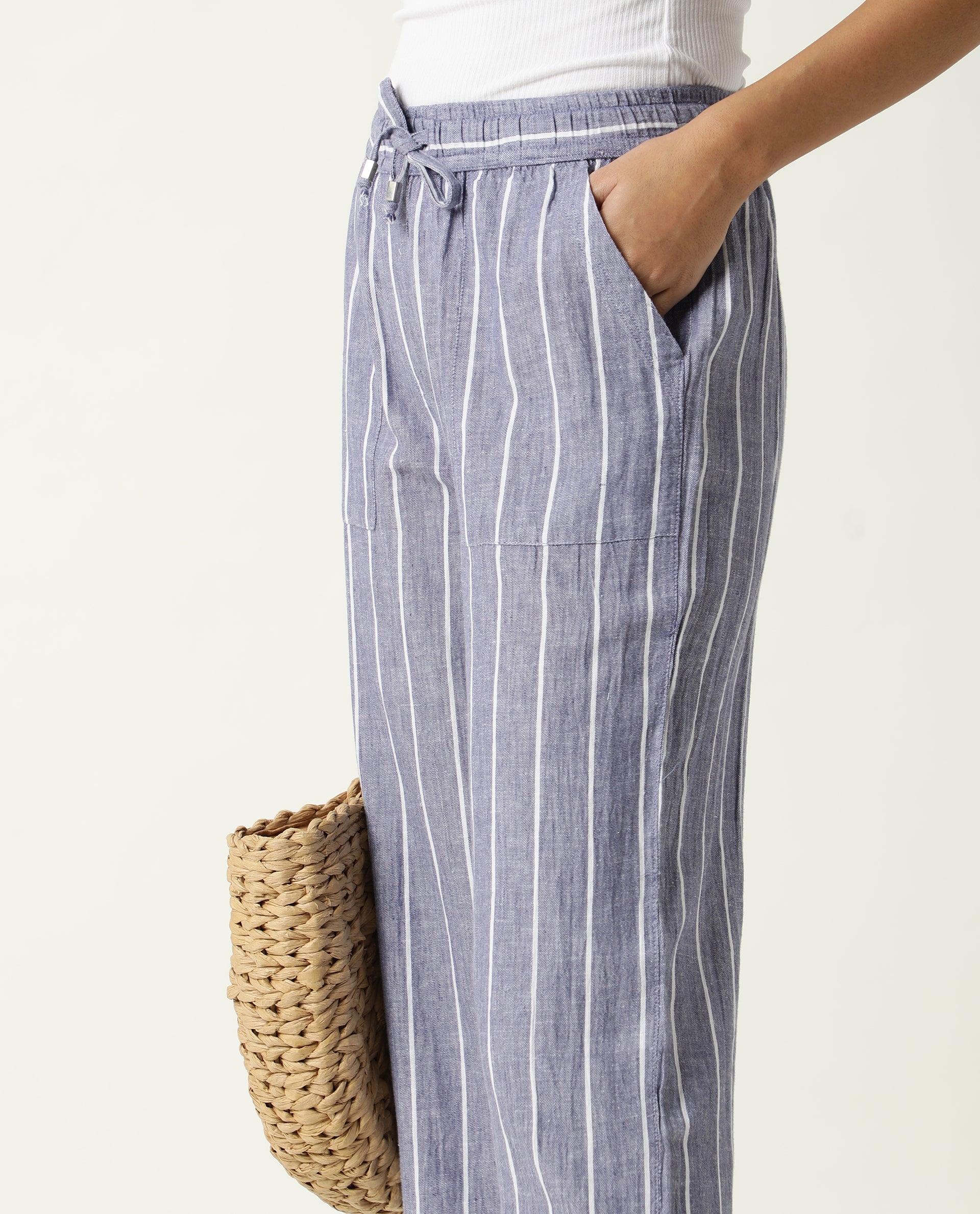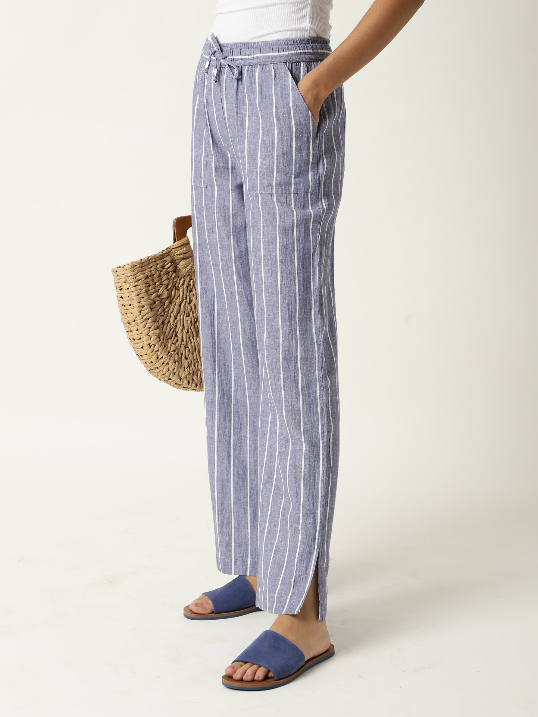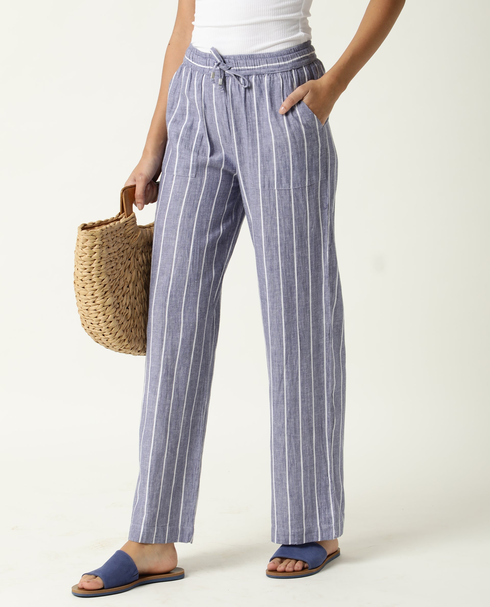 -A urban style relaxed fit linen trouser in vertical stripes.