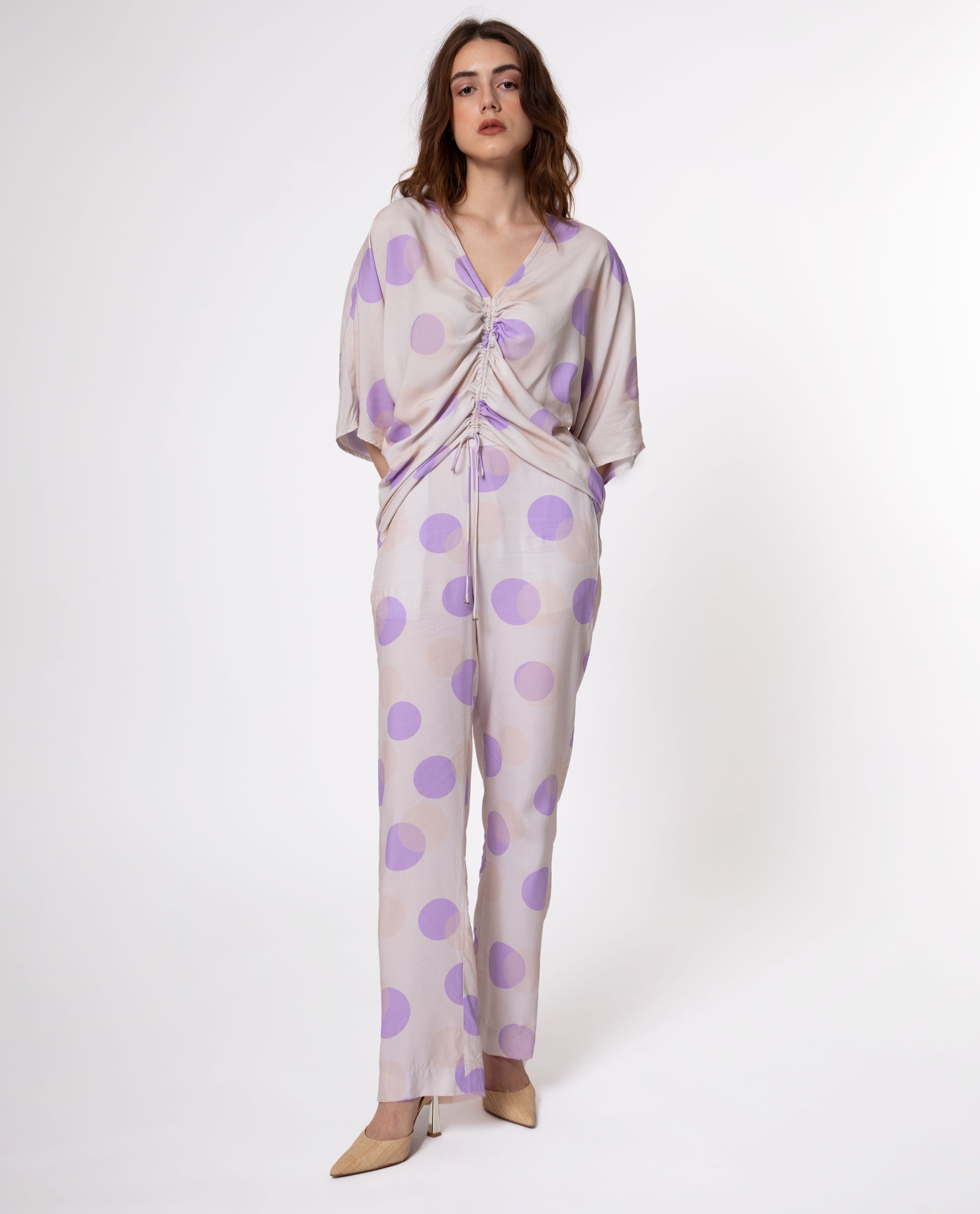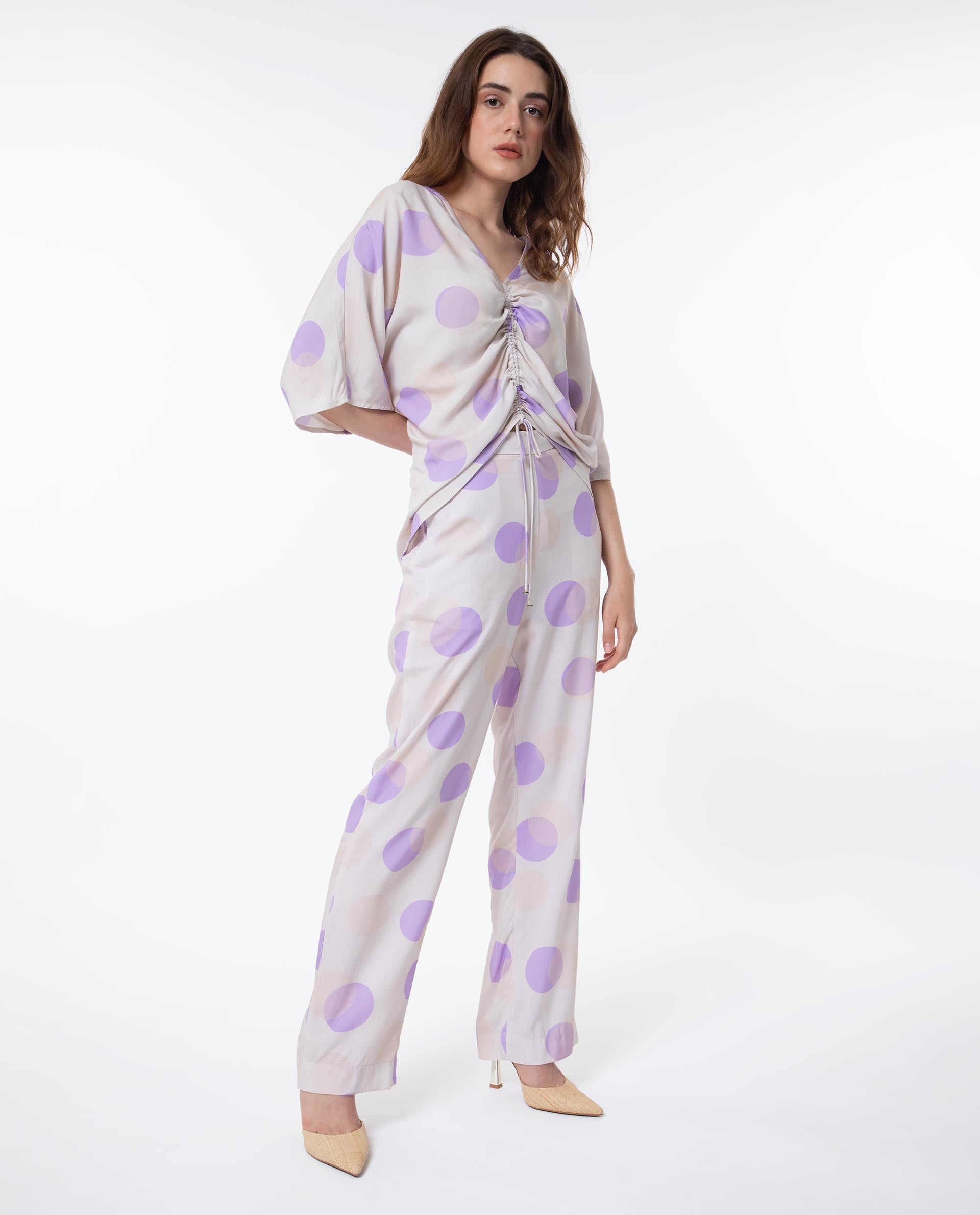 1. Elevate your wardrobe with our Structured Polka Printed Trousers, perfect for adding a touch of sophistication to your ensemble.