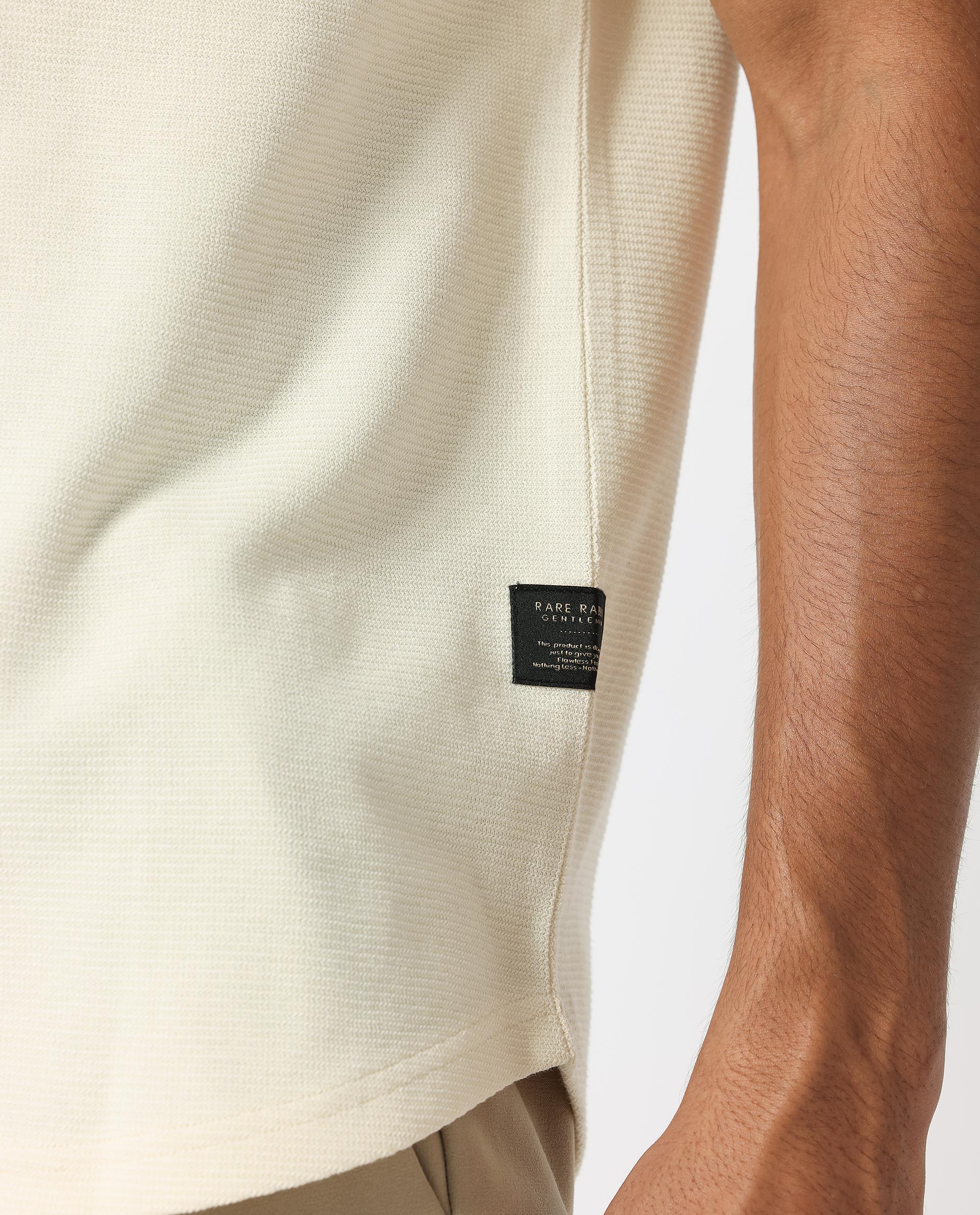 Rare Rabbit Men's Buenos Beige Solid Crew Neck Drop Shoulder Half Sleeves T-Shirt