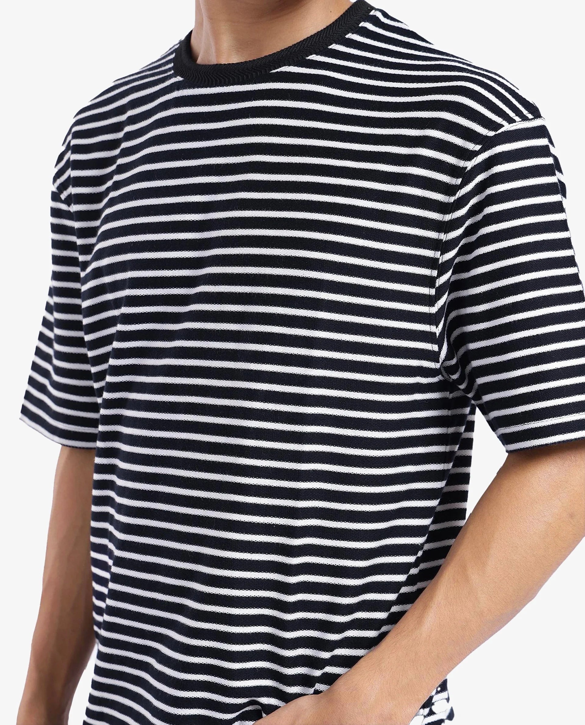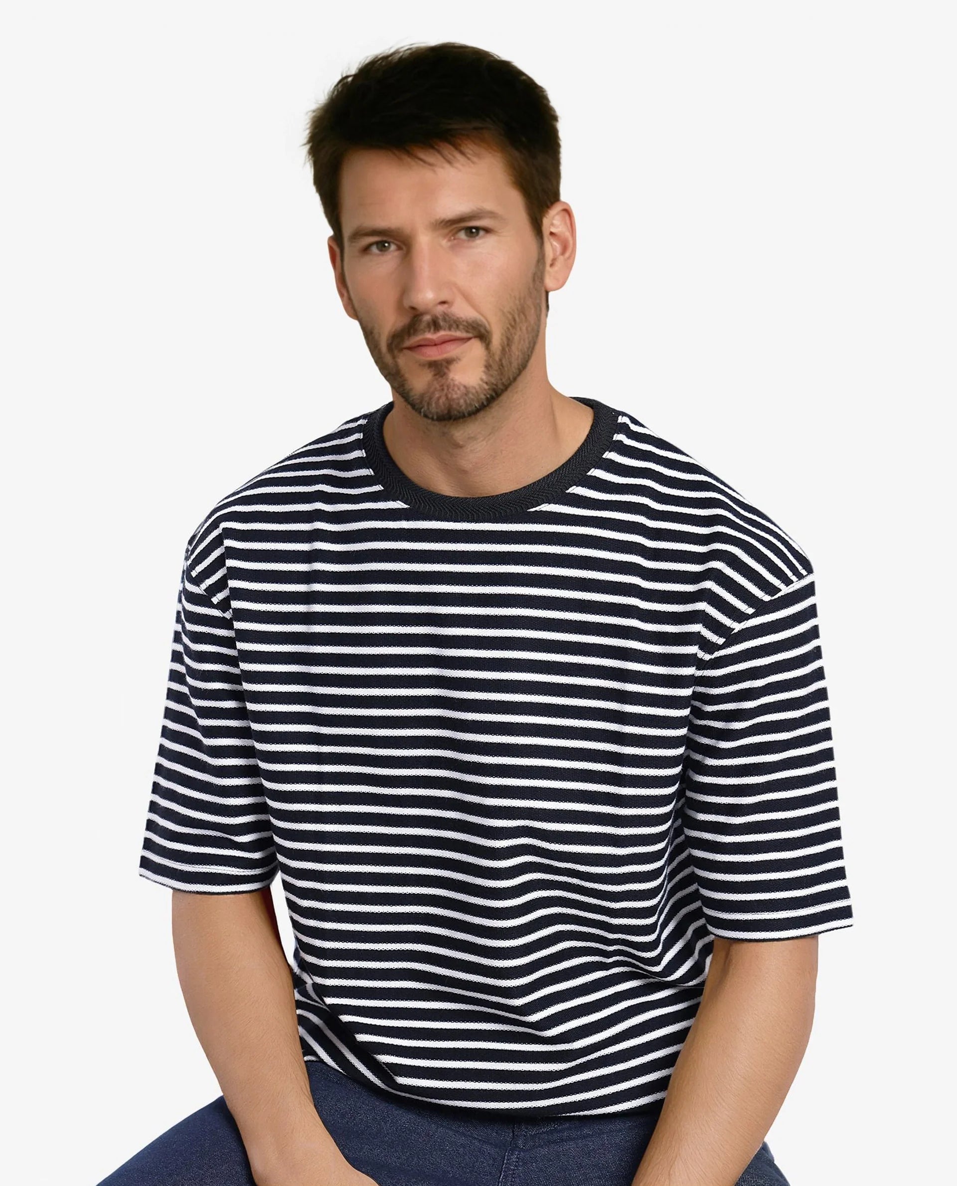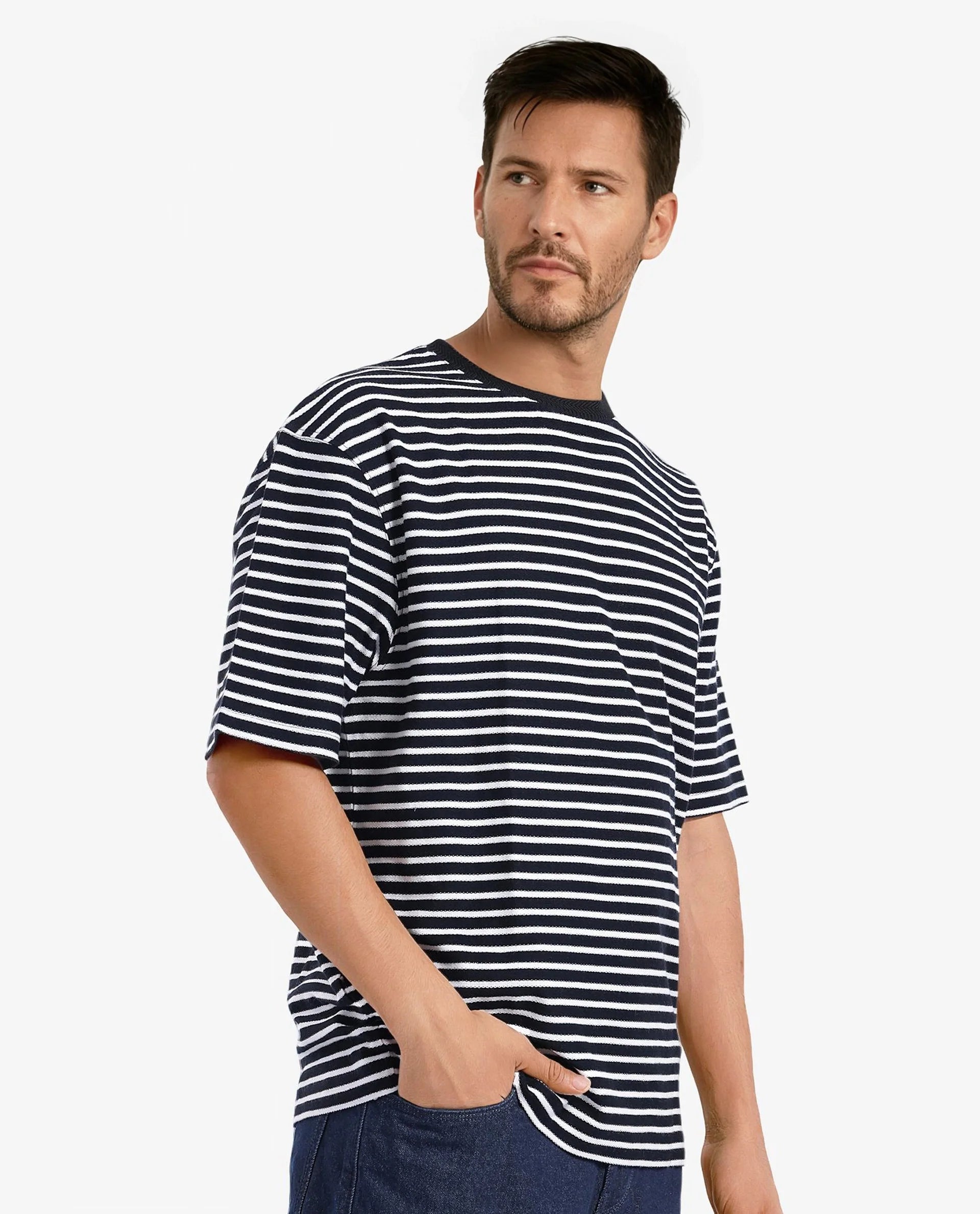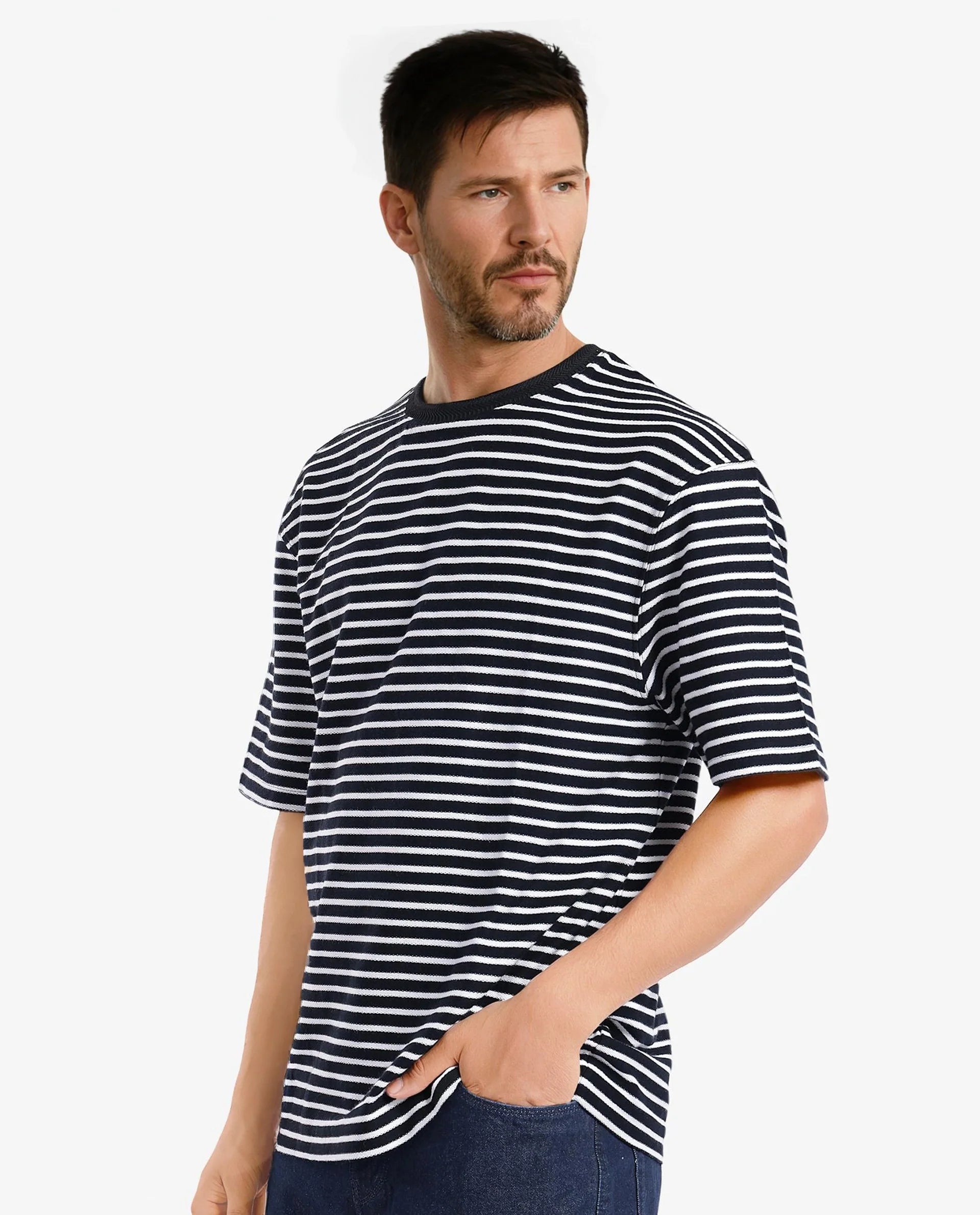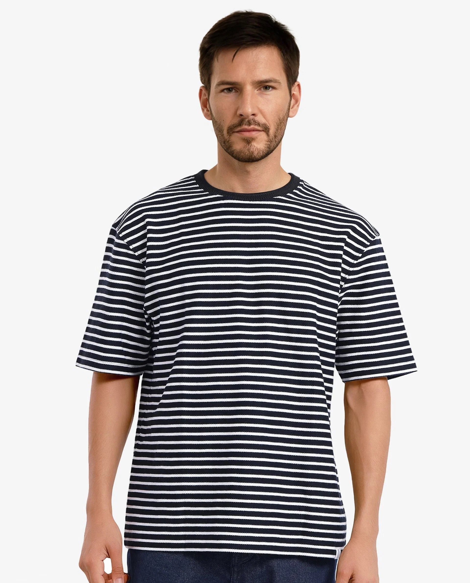 Discover the ultimate in casual comfort with our oversized narrow stripe t-shirt, perfect for any laid-back occasion. Crafted from premium cotton fabric, this half-sleeve tee offers a soft, breathable feel that keeps you comfortable all day long. The classic crew neck design and slip-on closure make it easy to wear, while the stylish striped pattern adds a touch of modern flair to your wardrobe. Ideal for pairing with jeans or shorts, this versatile t-shirt is a must-have for those who appreciate both style and comfort. Elevate your casual wear collection with this essential piece, designed to offer a relaxed fit without compromising on fashion. Perfect for everyday wear, this striped t-shirt is your go-to choice for effortless style.
