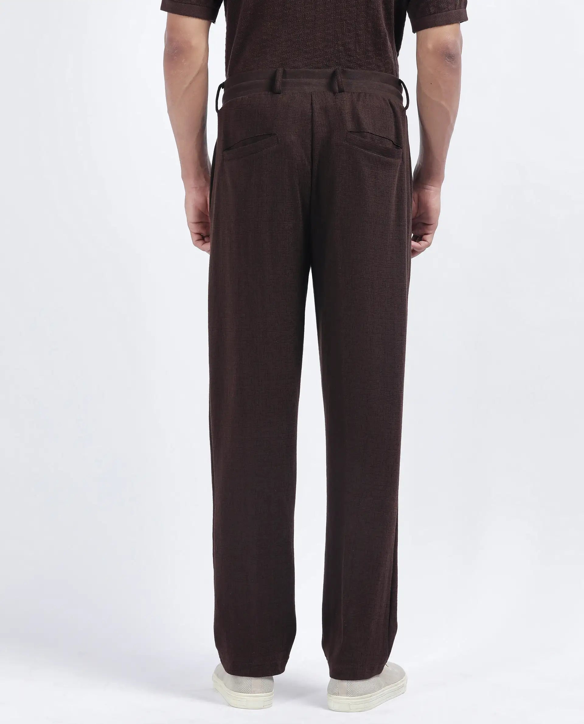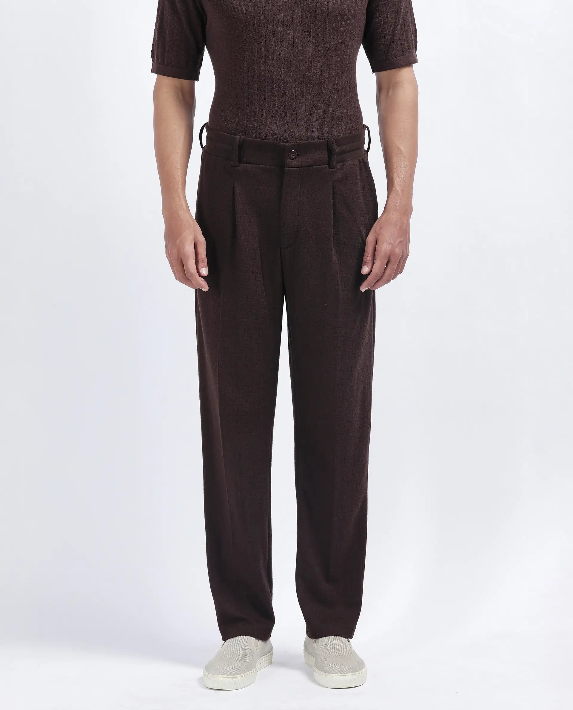 Rare Rabbit Men's Keloe Dark Brown Cotton Polyester Fabric Drawstring Closure Baggy Fit Plain Trouser