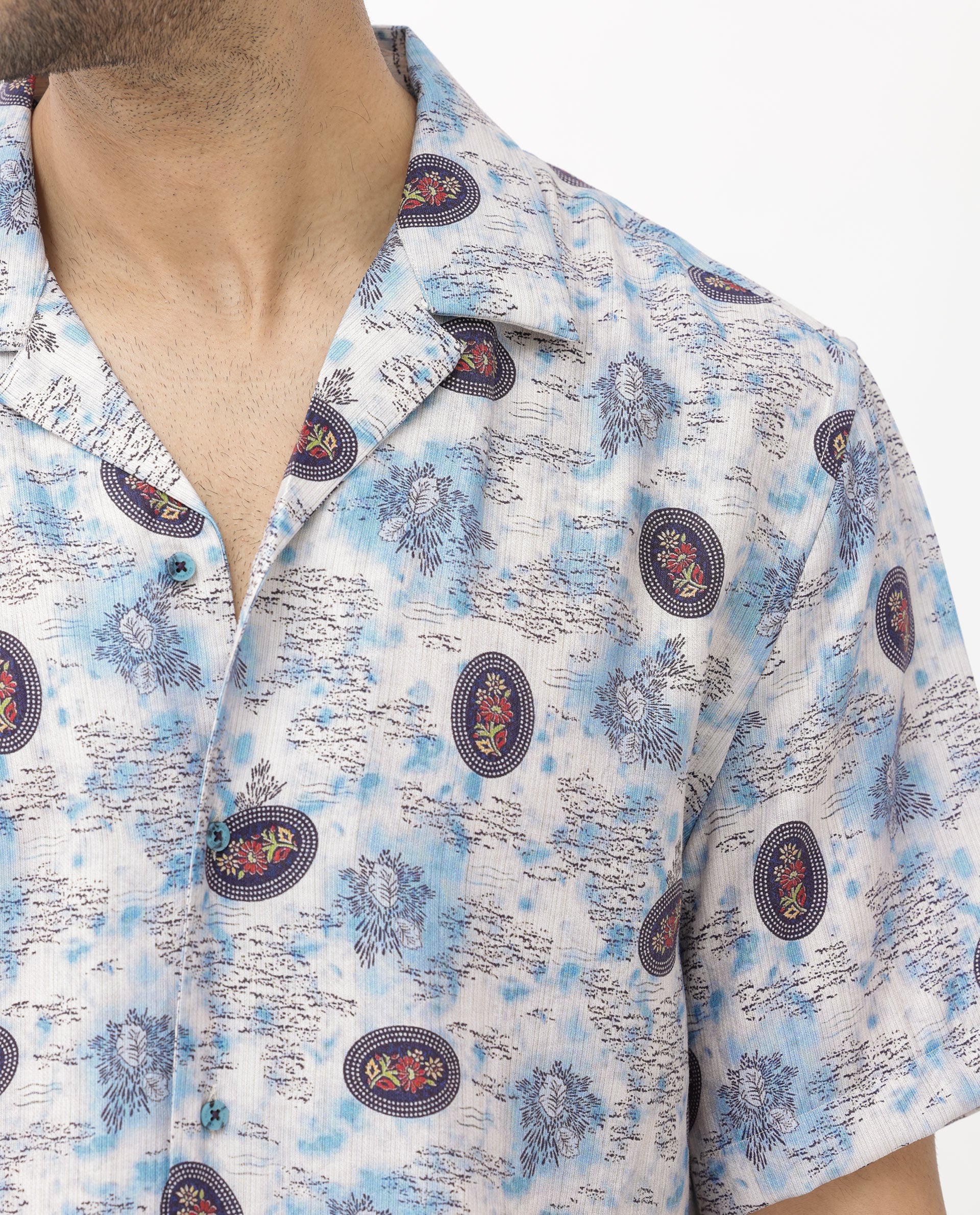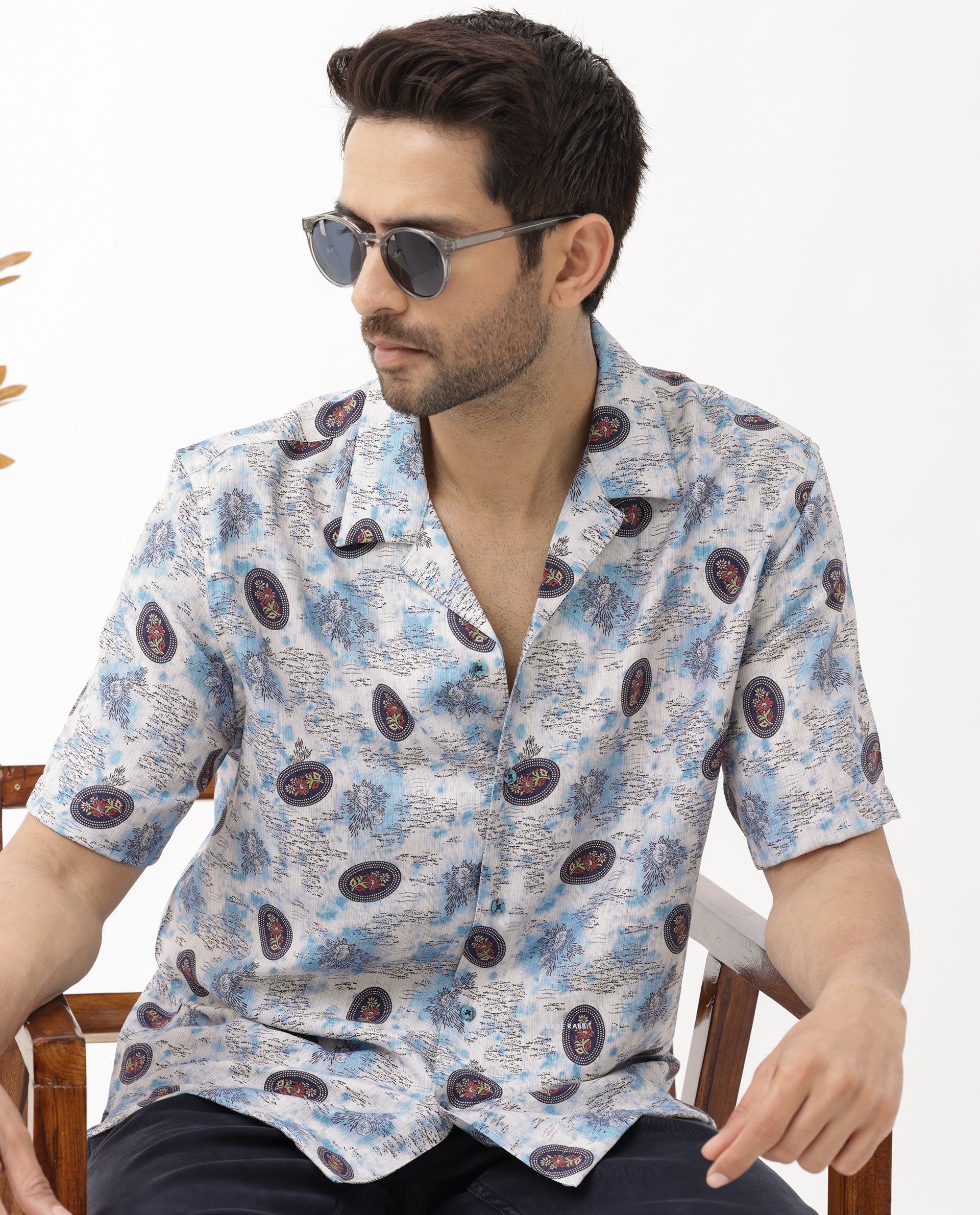 Rare Rabbit Mens Duskon Blue Short Sleeve Boxy Fit Abstract Print Shirt