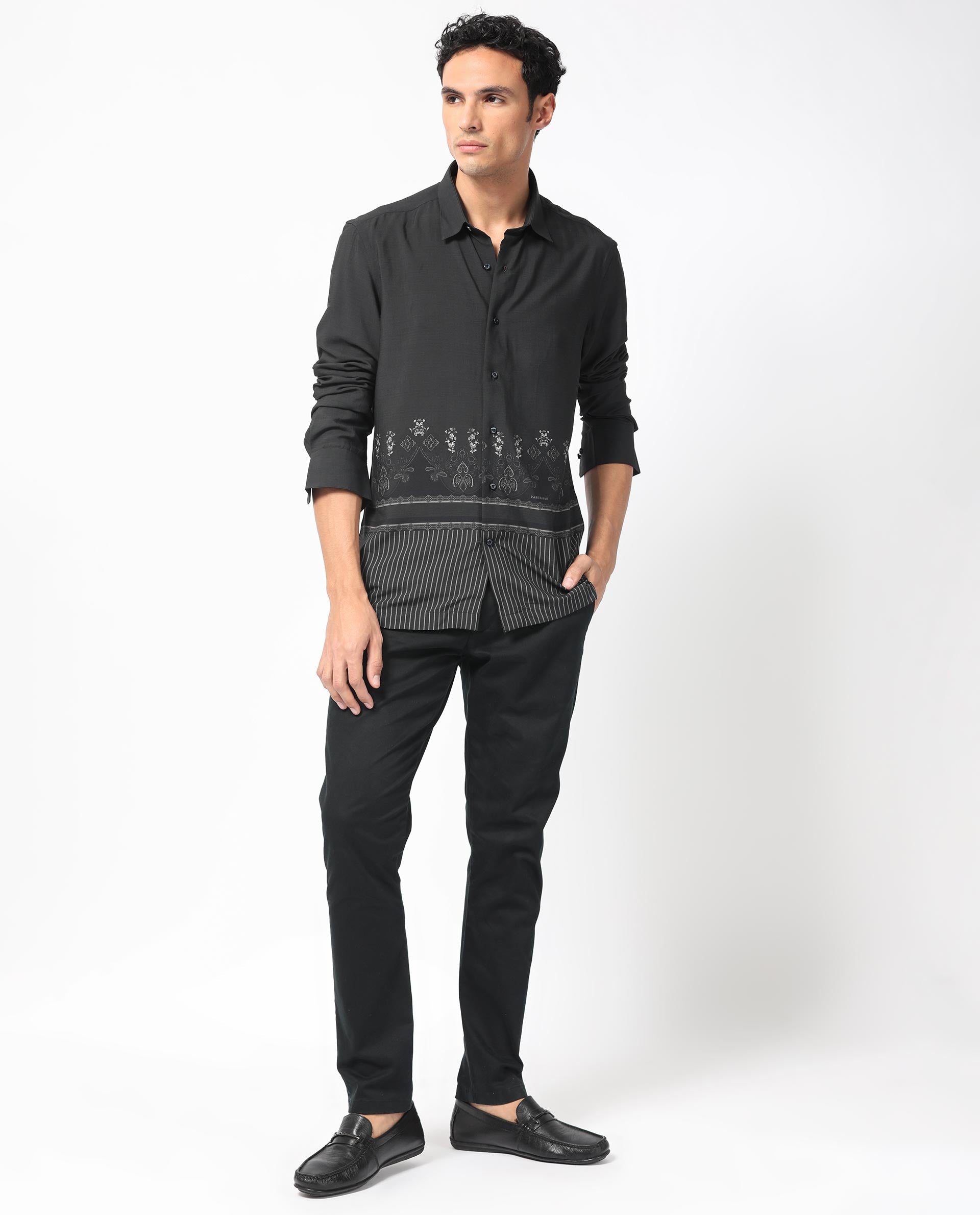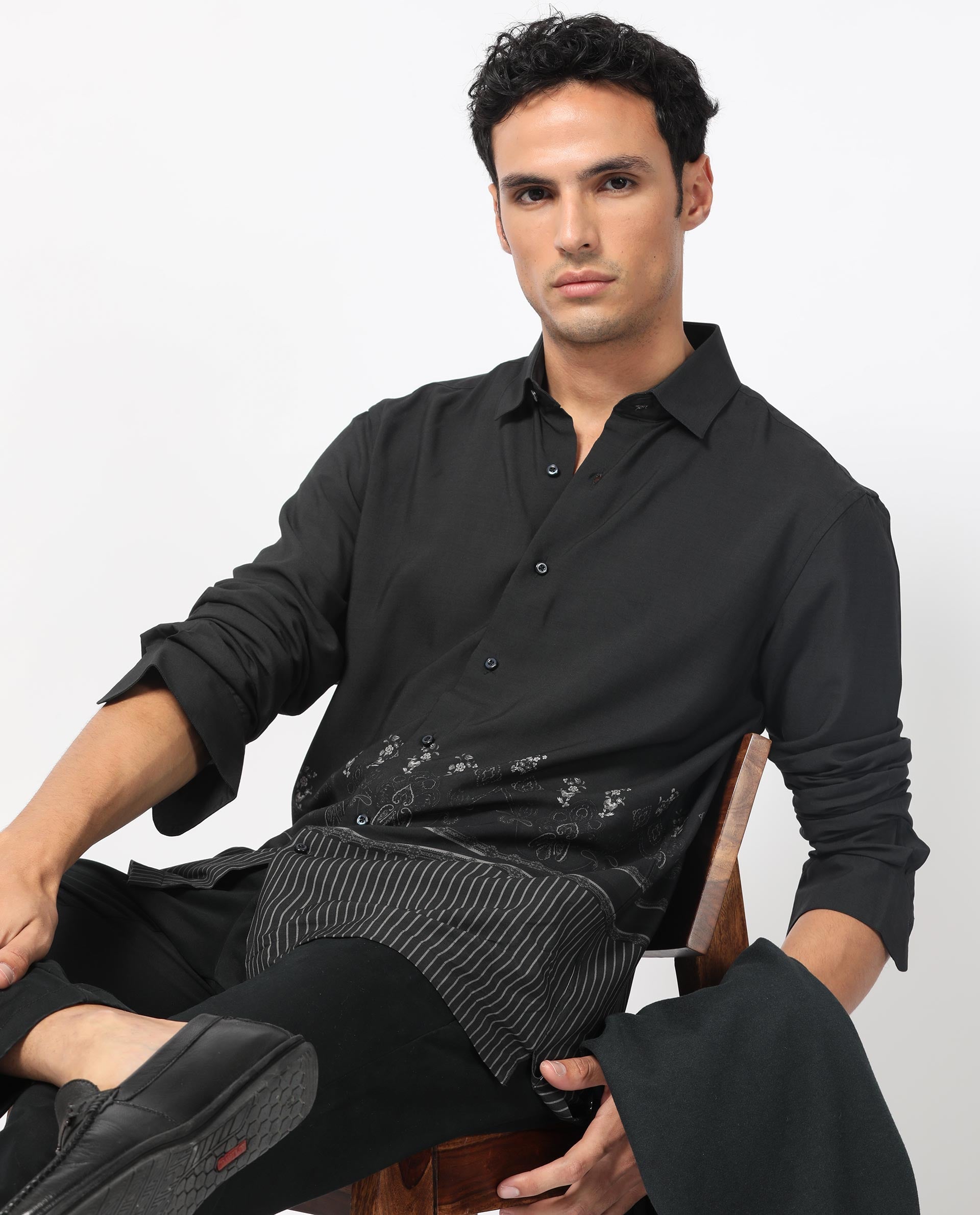 Rare Rabbit Men's Esco Black Viscose Fabric Full Sleeves Floral Print Shirt