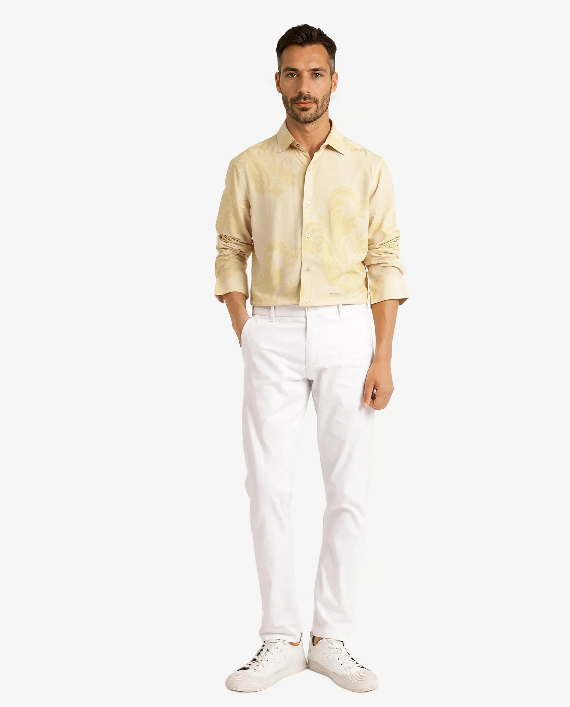 Add a refined touch to your wardrobe with this full-sleeve paisley printed shirt, crafted from smooth viscose fabric that drapes beautifully for an elegant fit. The classic paisley pattern offers timeless appeal, making this regular-fit shirt a versatile choice that transitions effortlessly from day to evening. Perfect for those who appreciate style with a sophisticated twist.
