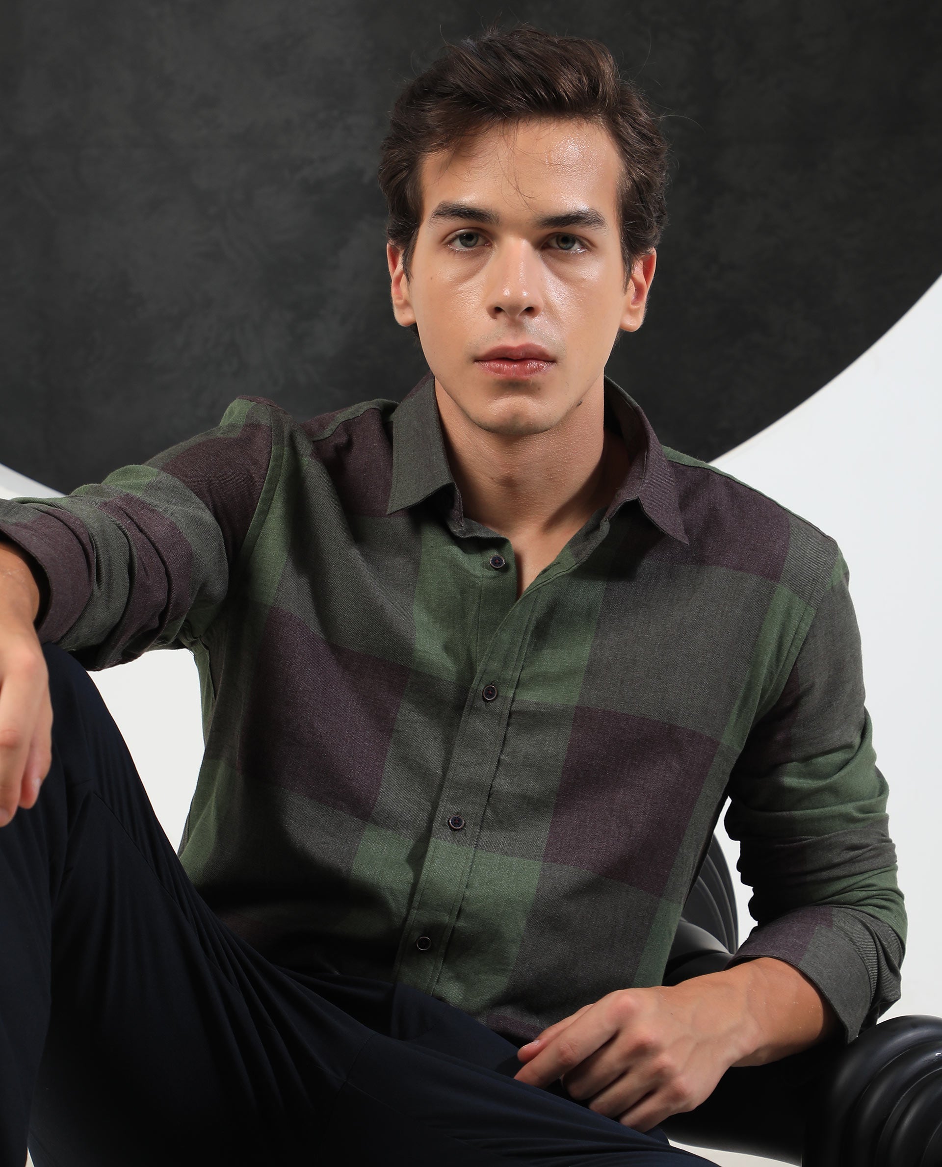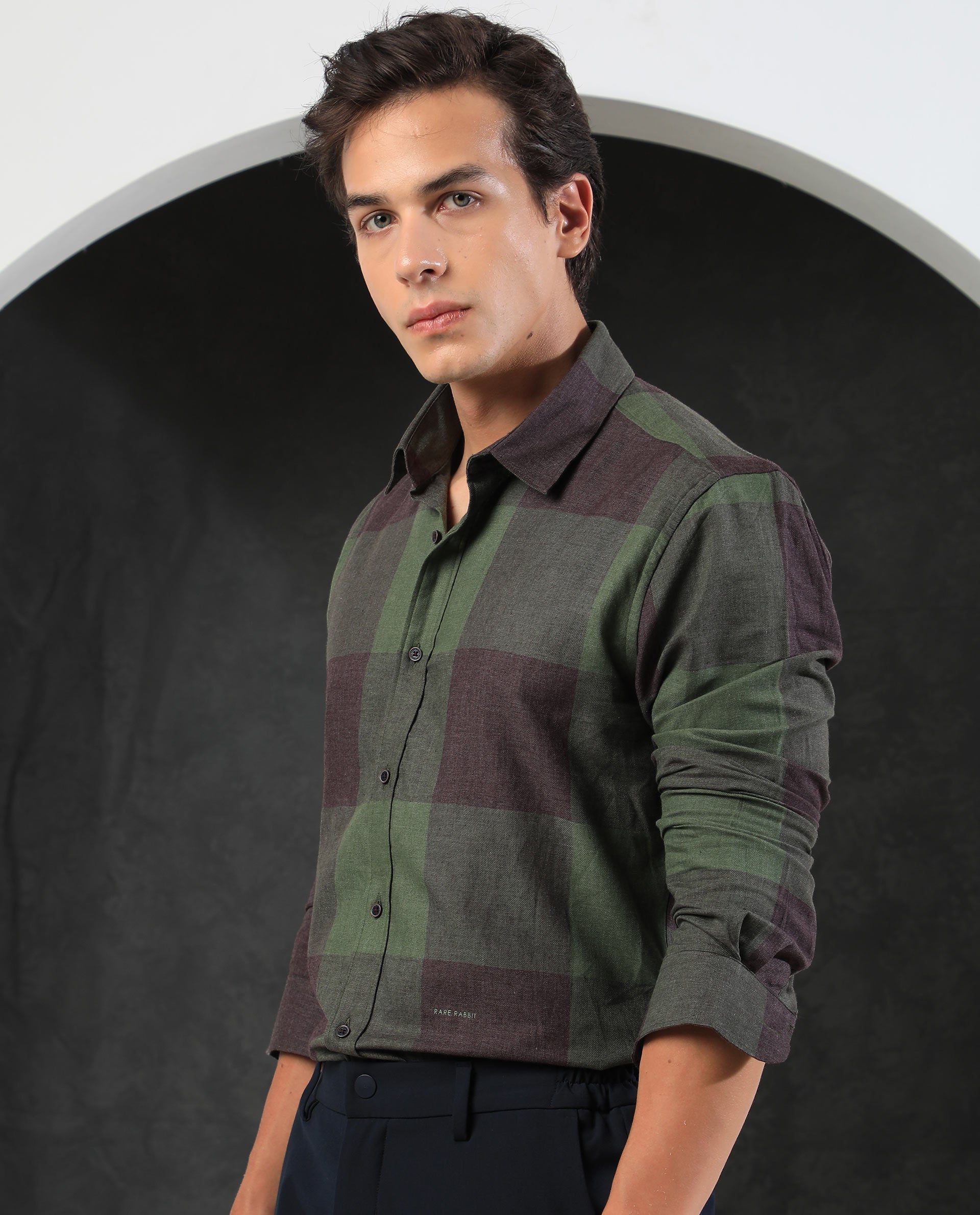 Rare Rabbit Men's Beavers Olive Cotton Polyester Fabric Full Sleeves Twill Checks Shirt