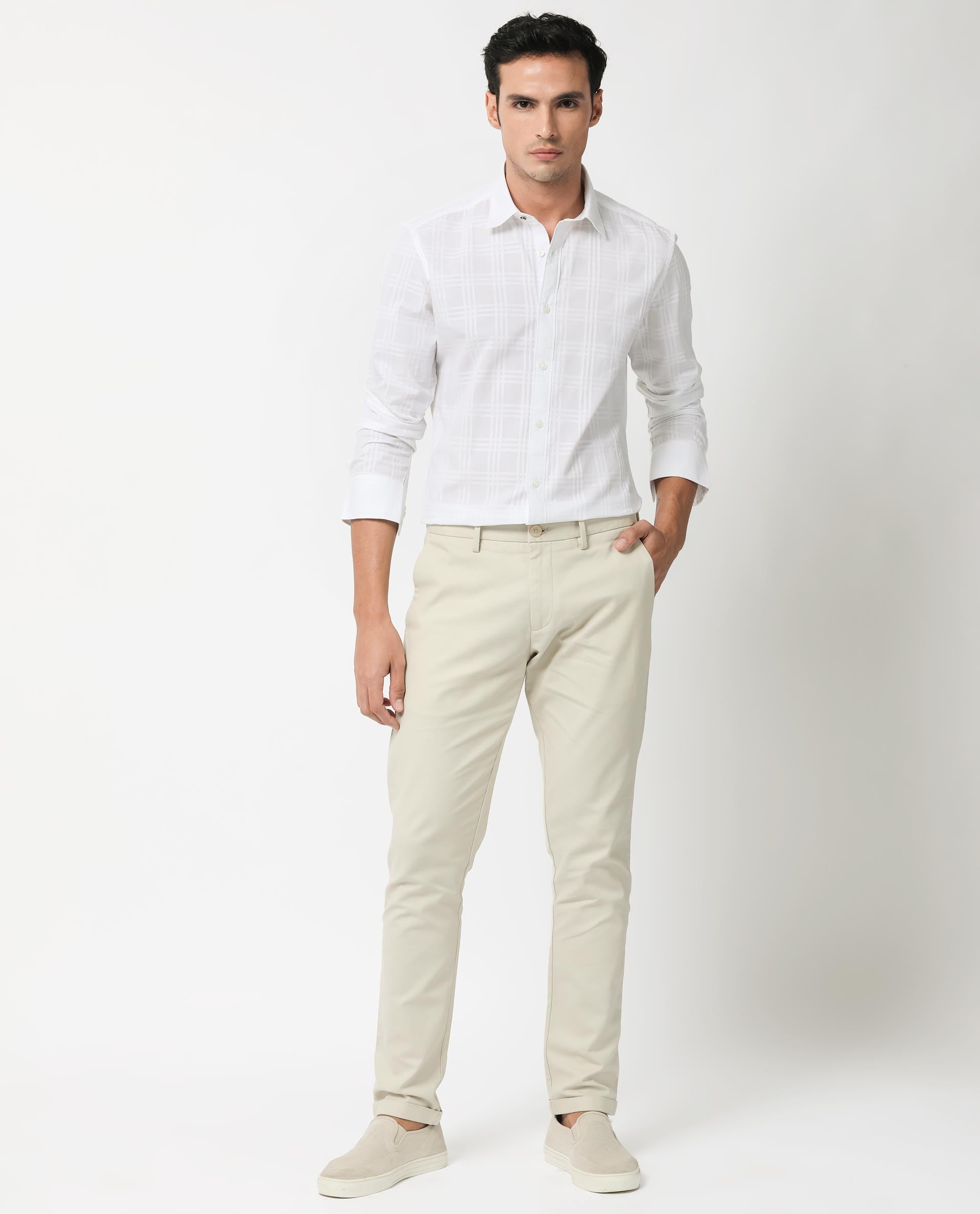 Rare Rabbit Men's Roar White Cotton Fabric Full Sleeves Checks Shirt